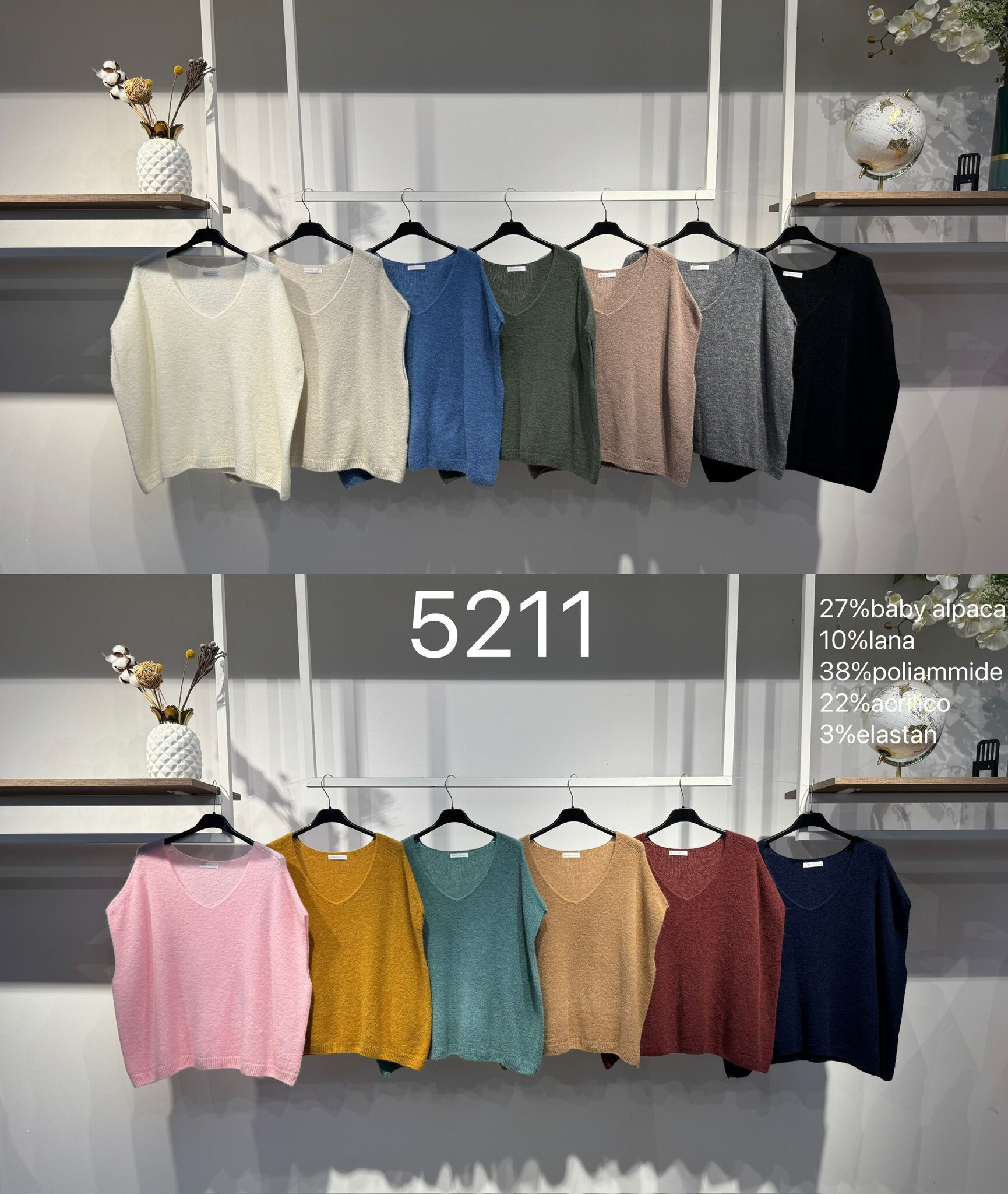 Složení materiálu: 38% polyamid, 27% baby alpaka, 22% akryl, 10% vlna, 3% elastan