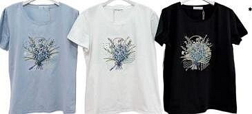 Módní bavlněné triko s výšivkou květů. Triko má krátký rukáv a kulatý výstřih.