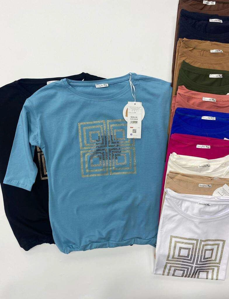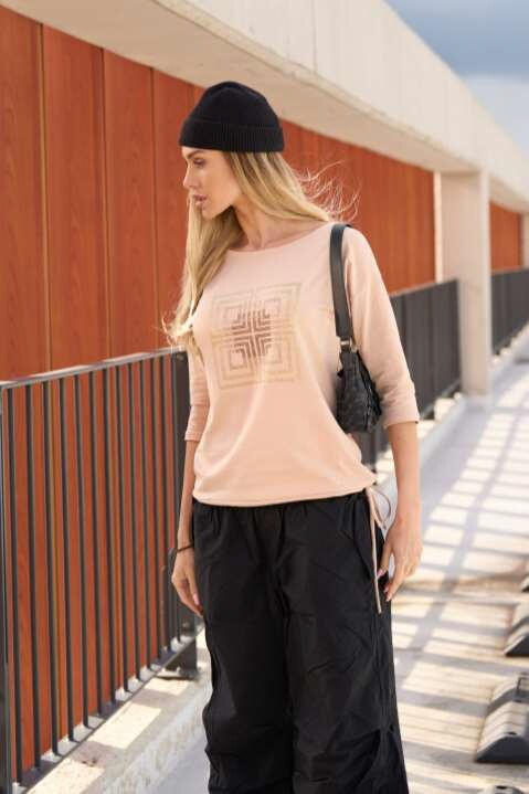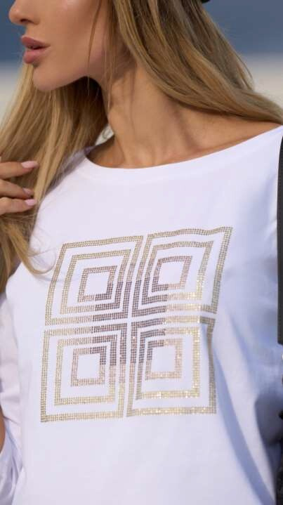 Módní triko s elegantními štrássovým vzorem a elastickým pasem, 3/4 rukáv
