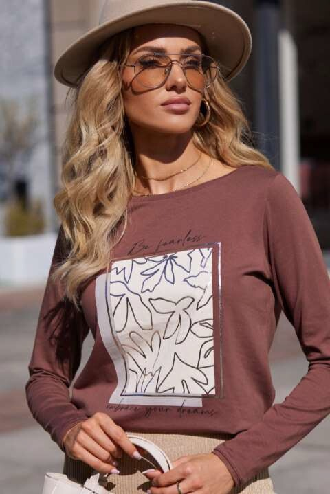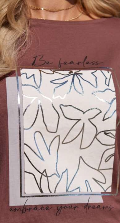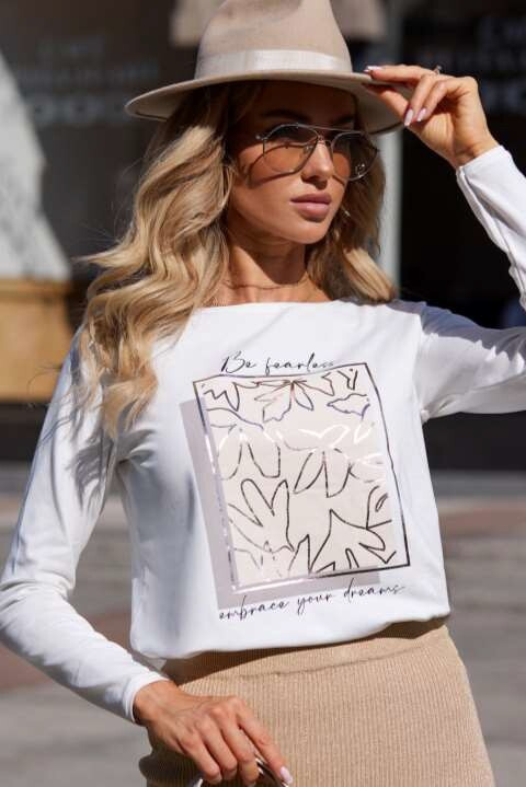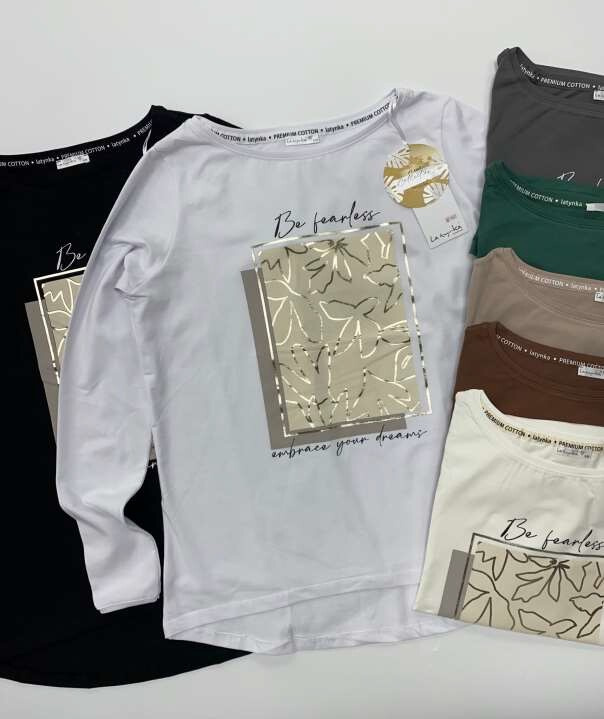 Módní triko s zlatým potiskem, dlouhý rukáv