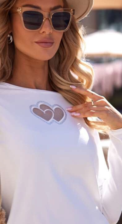 Módní triko s výšivkou ve výstřihu, dlouhý rukáv