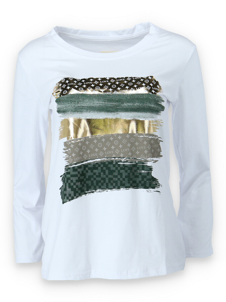 Triko s dlouhým rukávem, stylovým potiskem. Vyrobeno v Itálii.