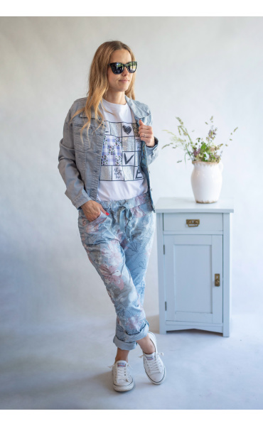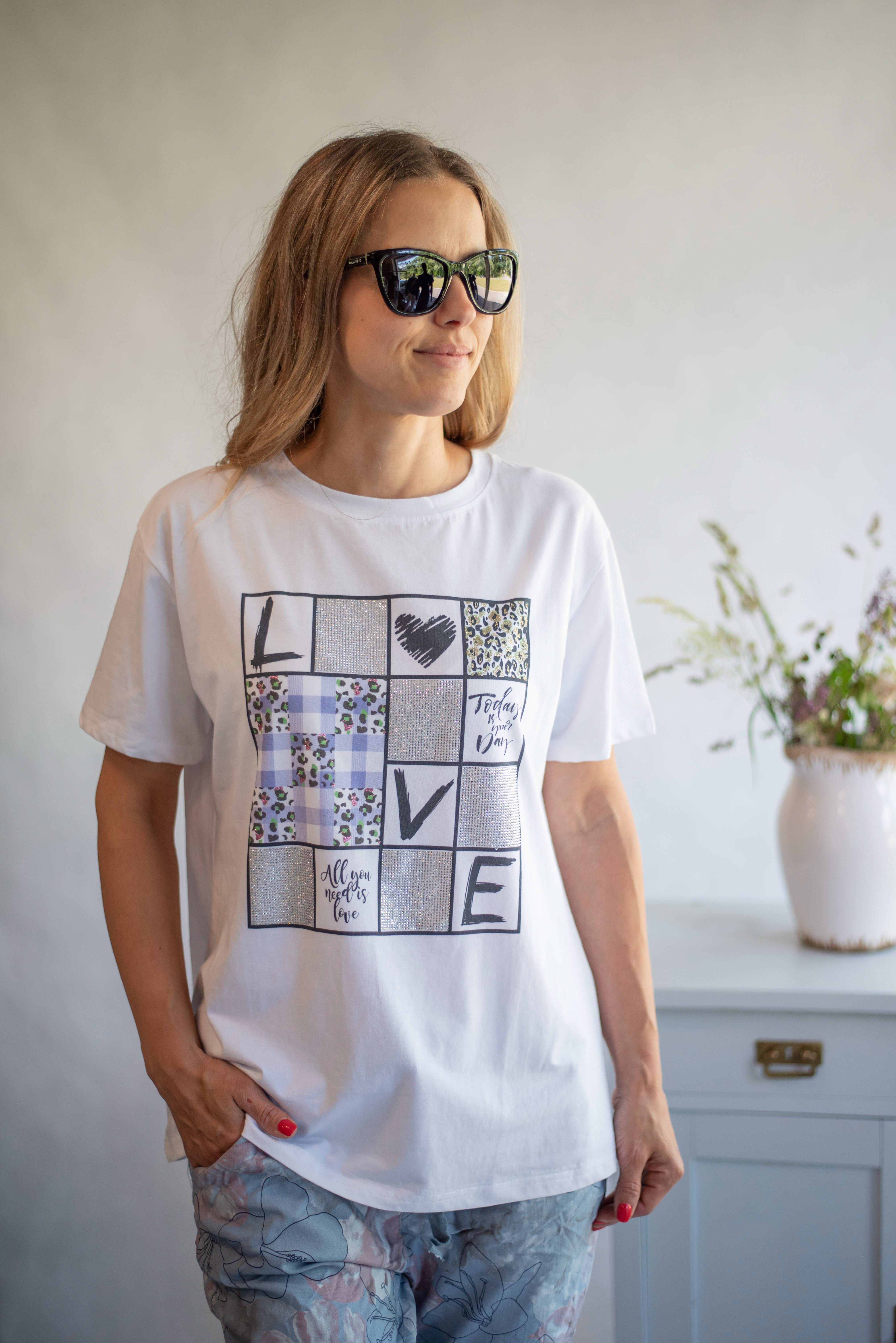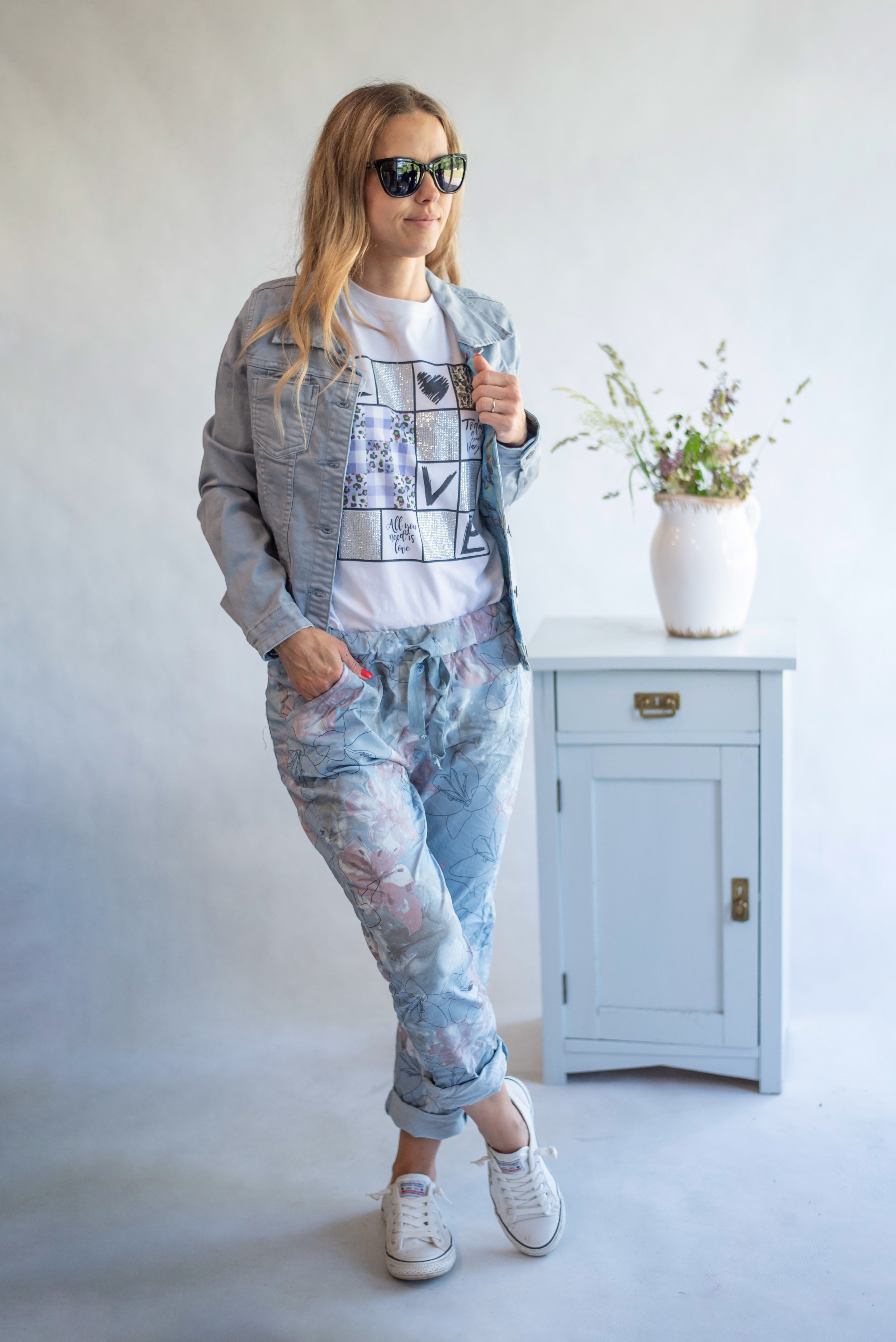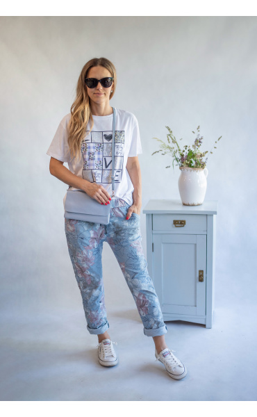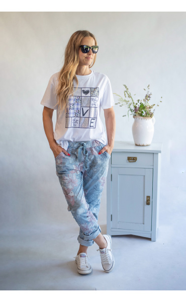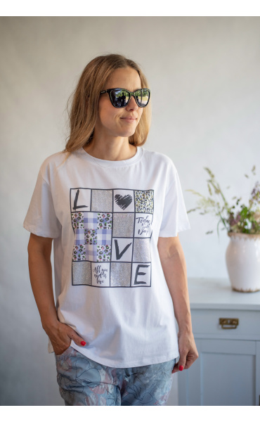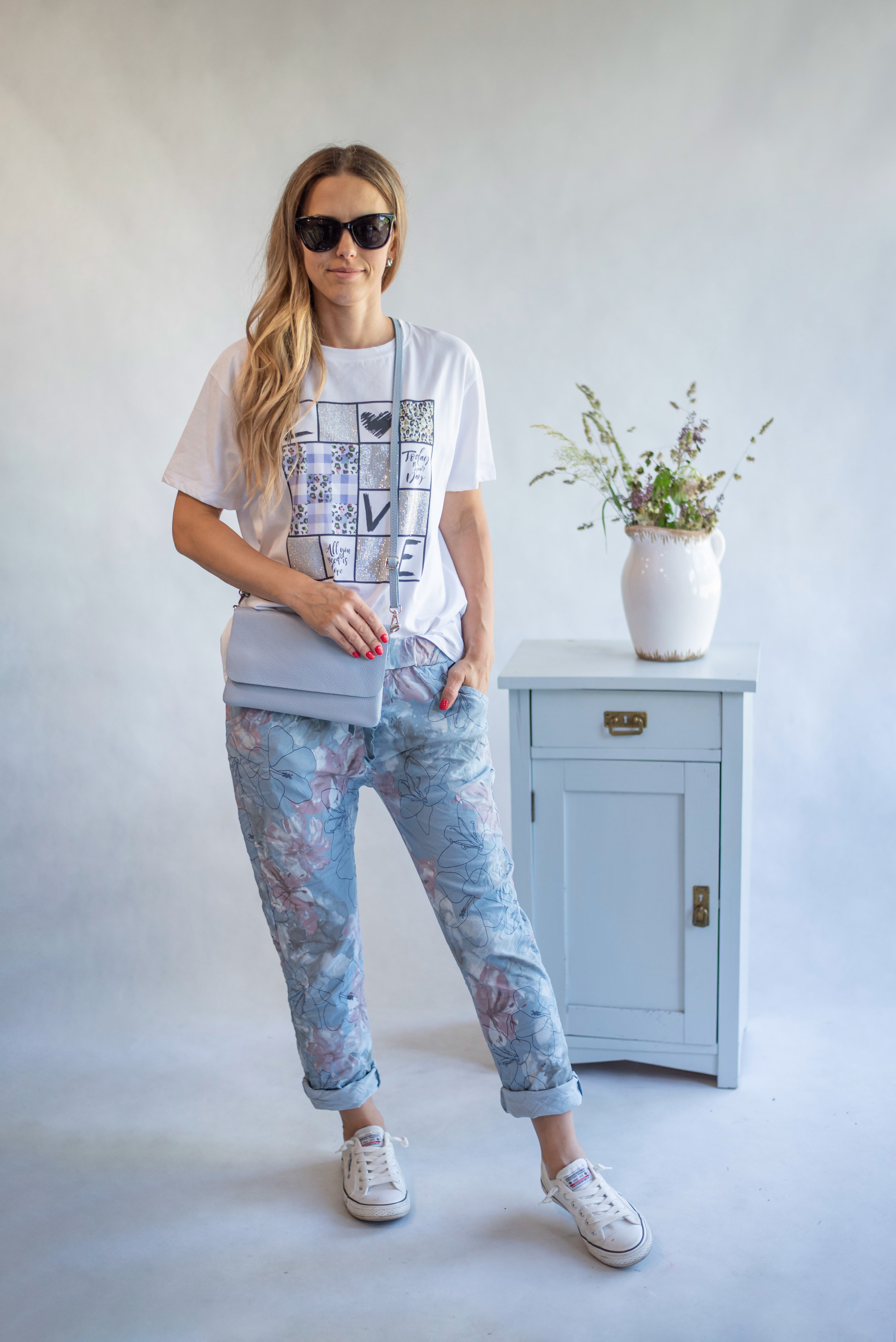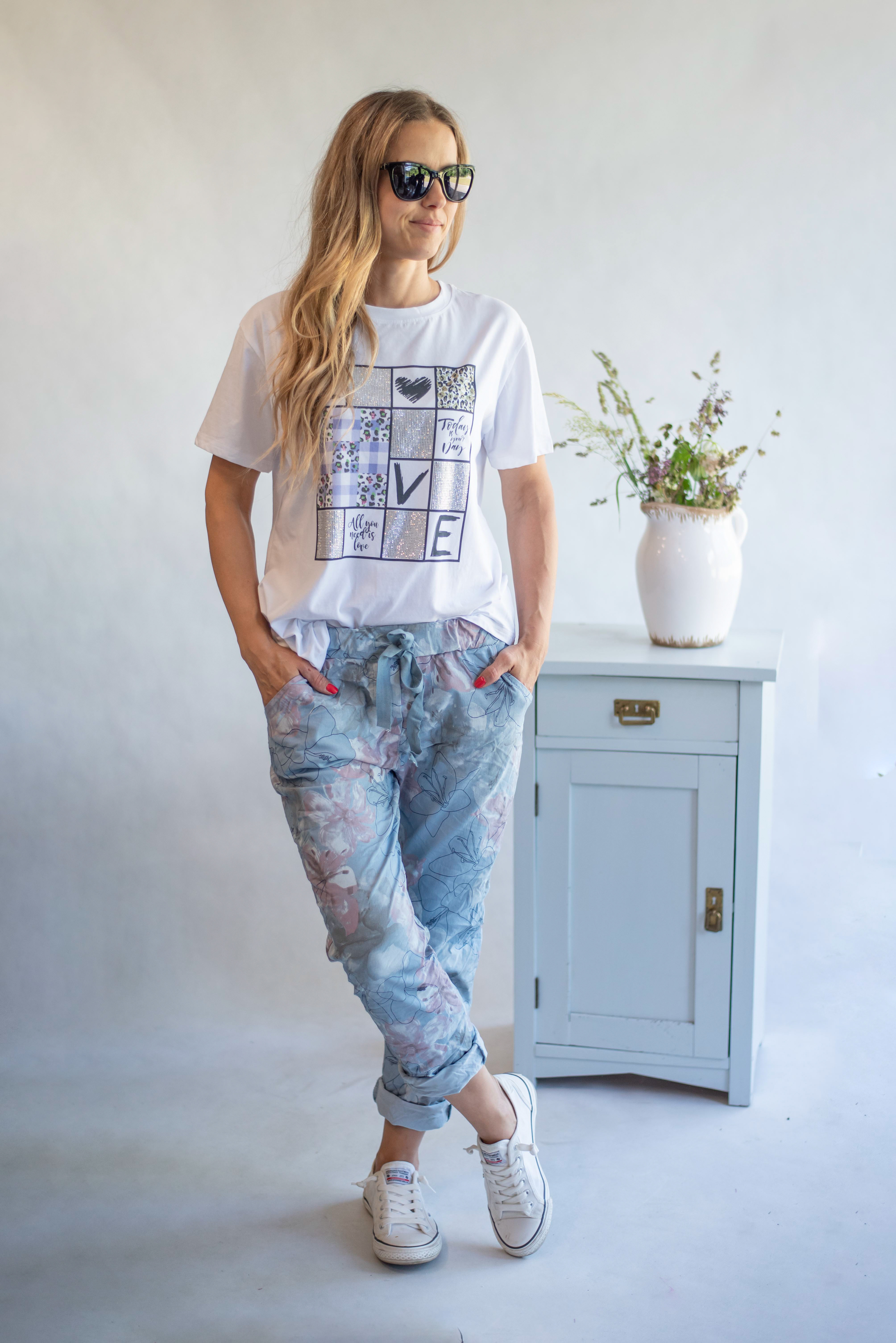 Dámské bavlněné triko s trendy potiskem Flowers ,Dovezeno z Itálie.