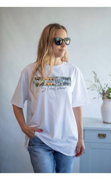 Dámské bavlněné triko s trendy potiskem Flowers ,Dovezeno z Itálie.