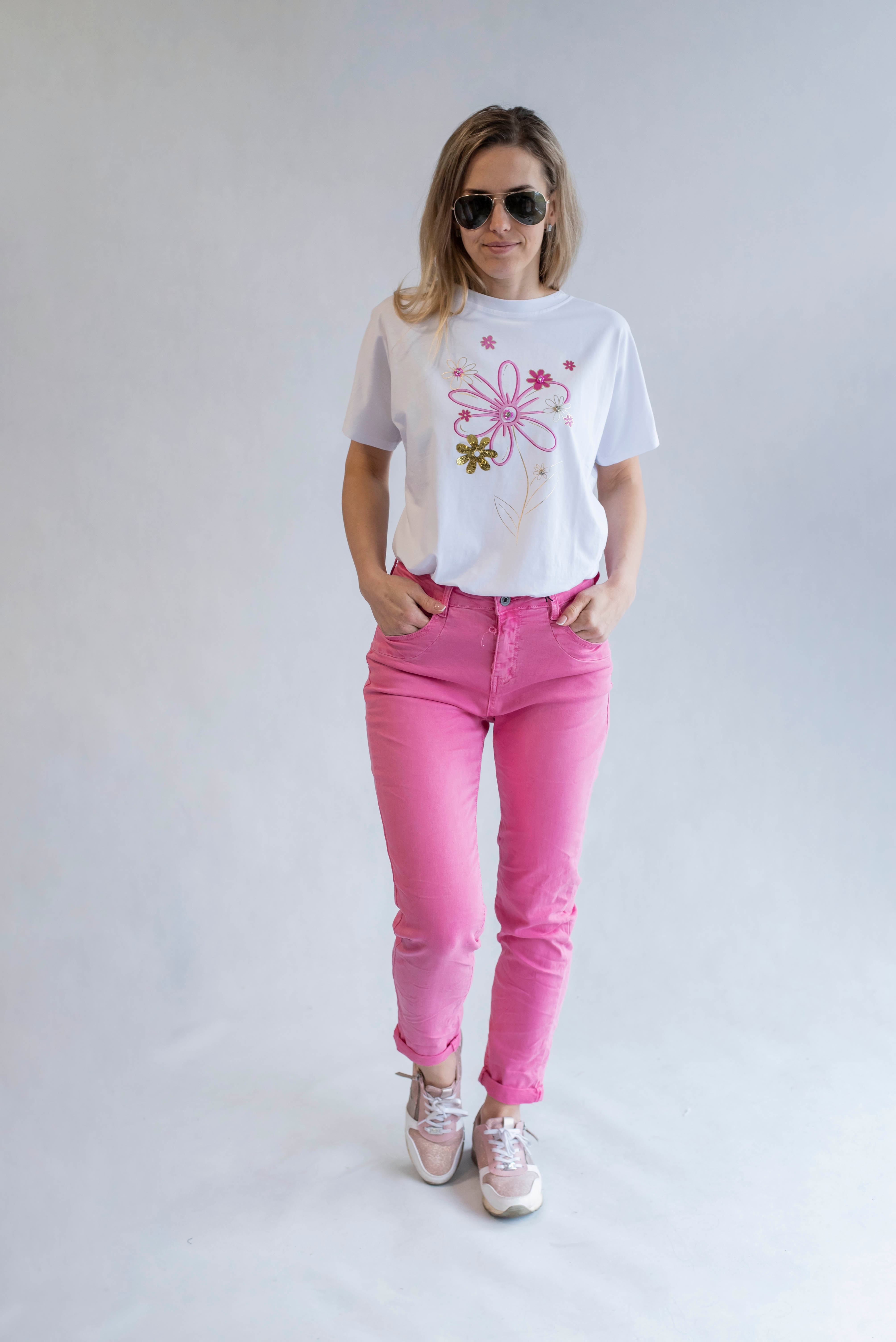 Dámské bavlněné triko s trendy potiskem květy ,Dovezeno z Itálie.