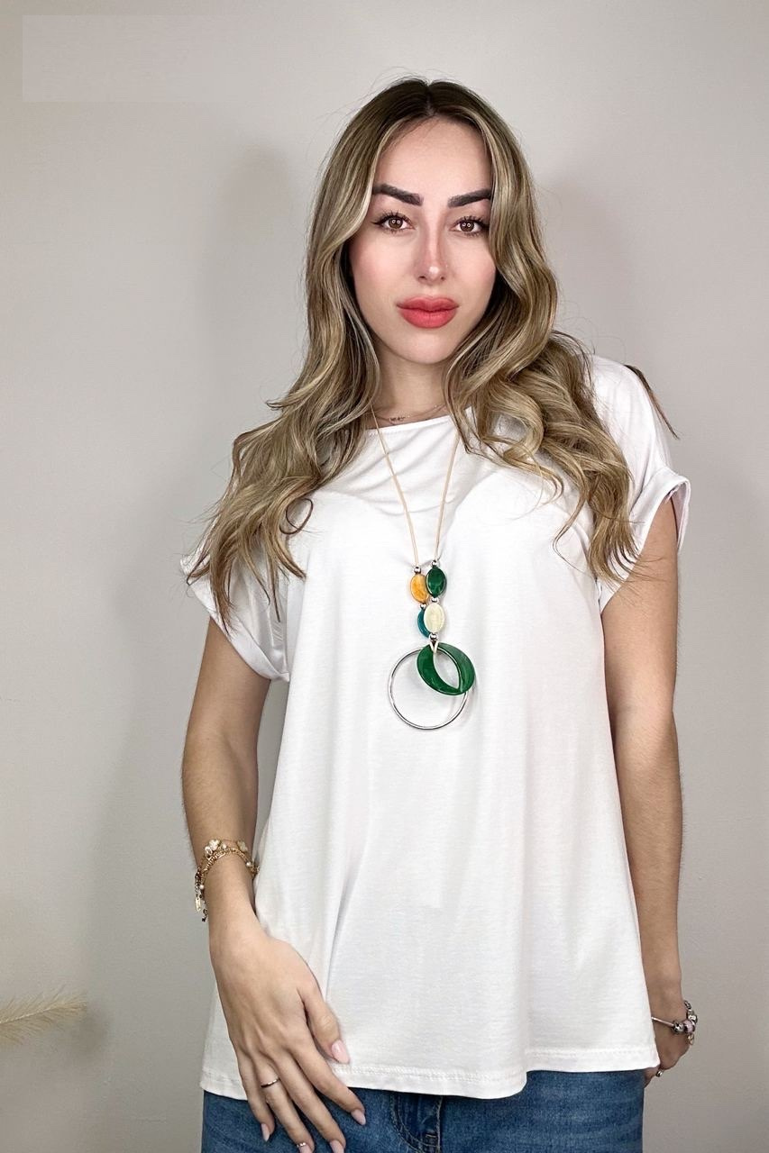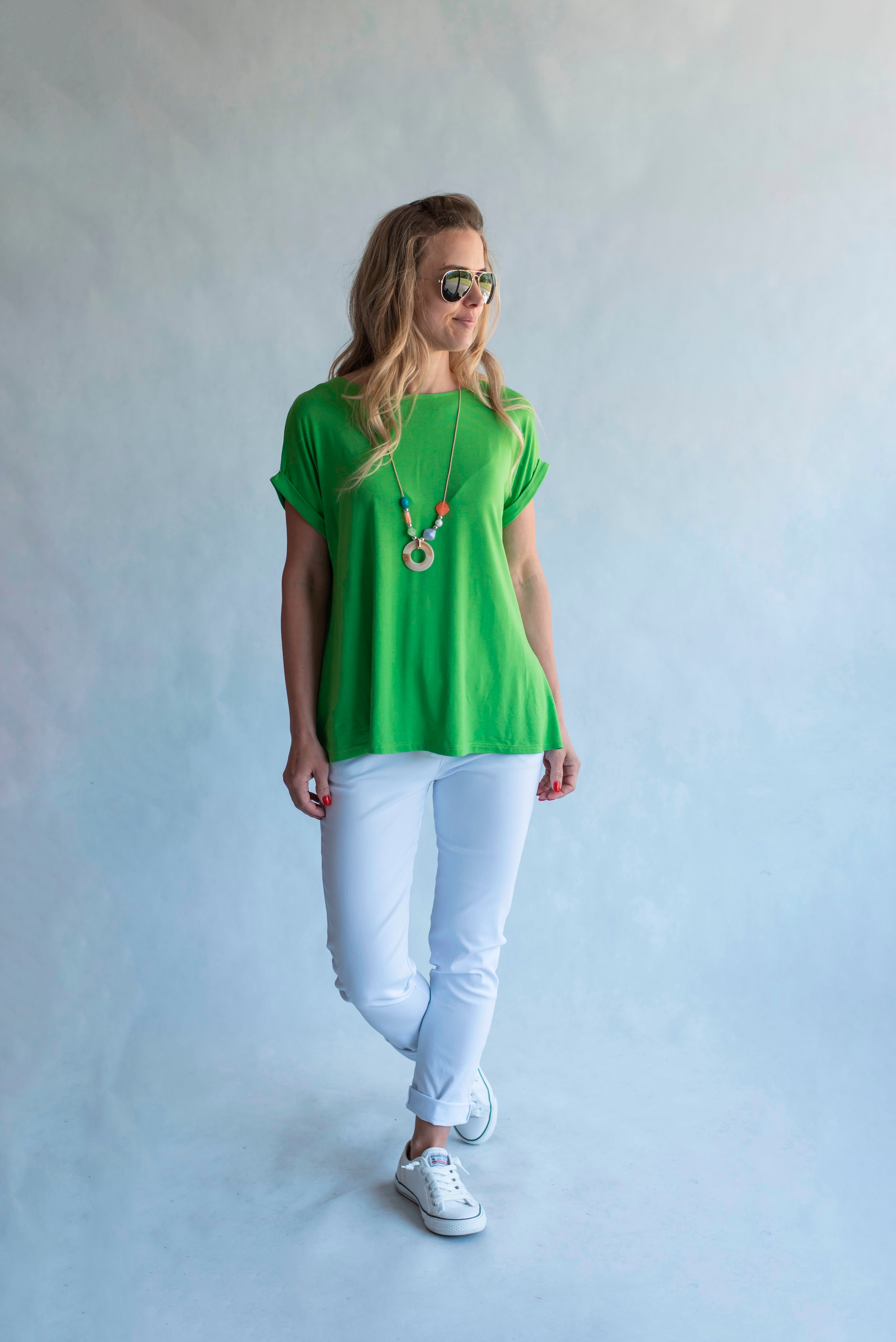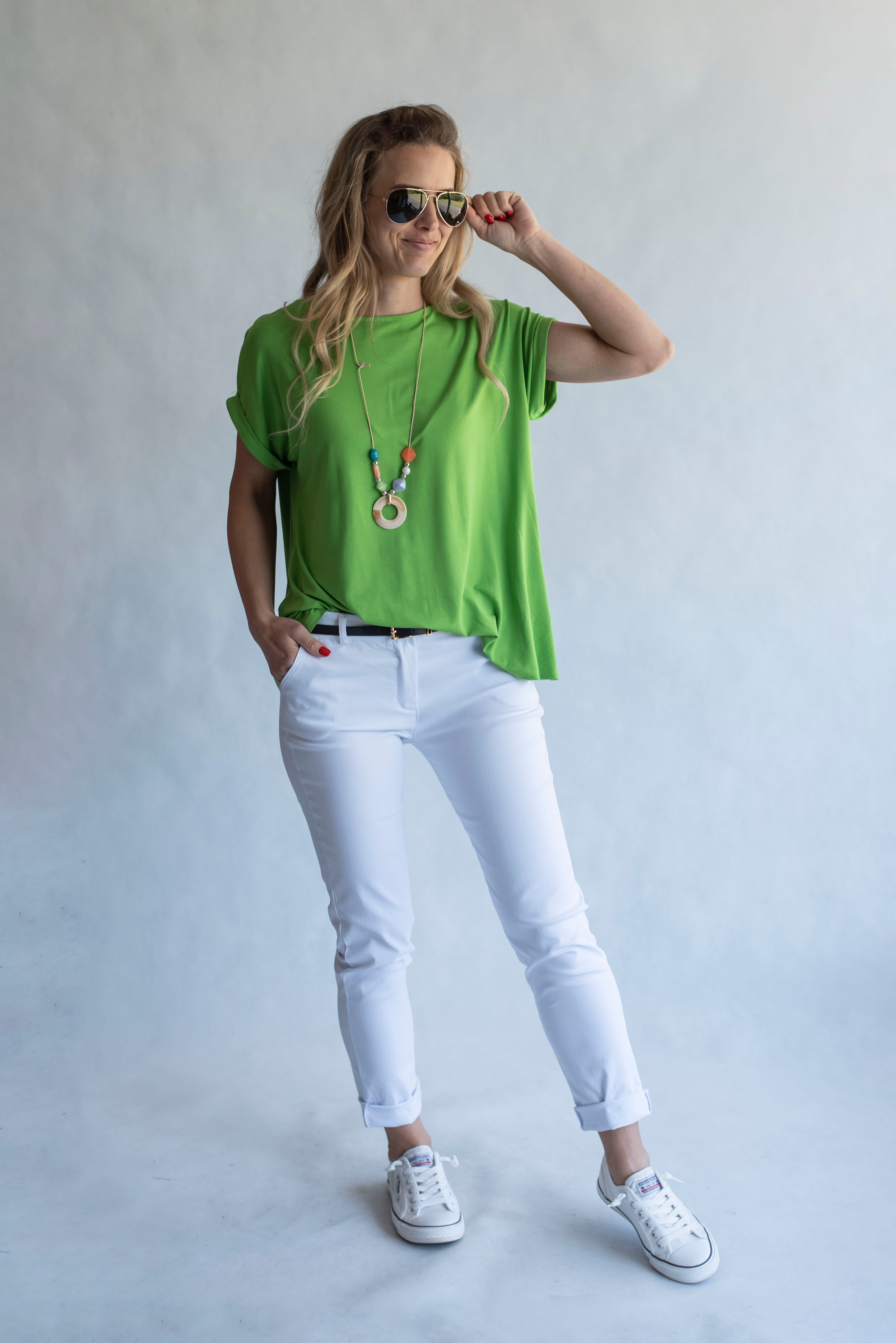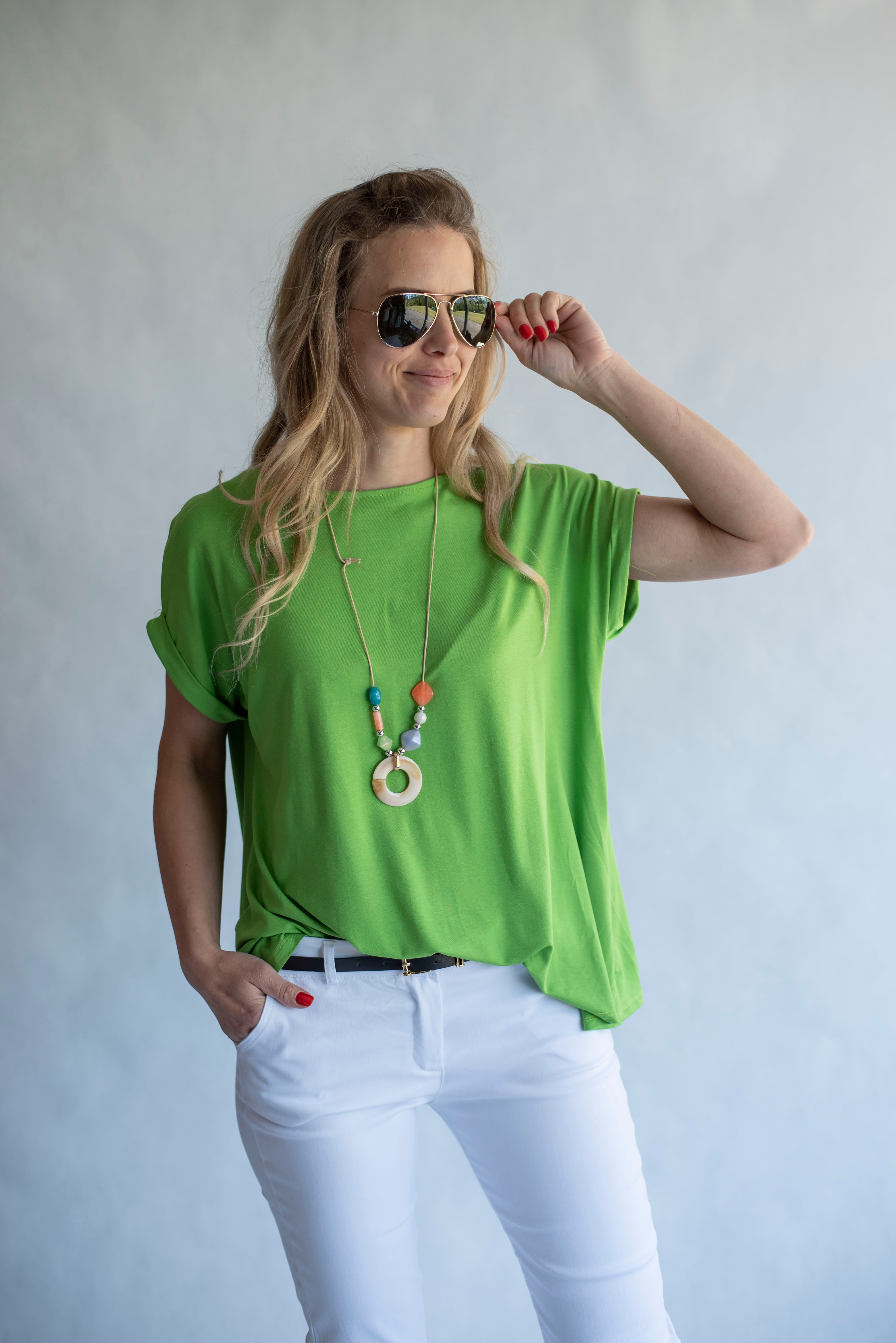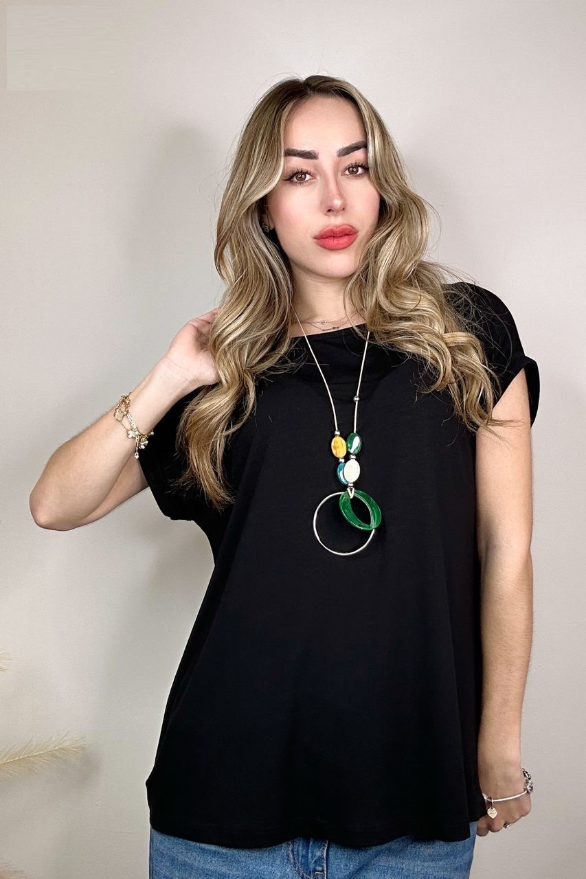 Triko s krátkým rukávem volnějšího stylu pro každodenní pohodlné použití.