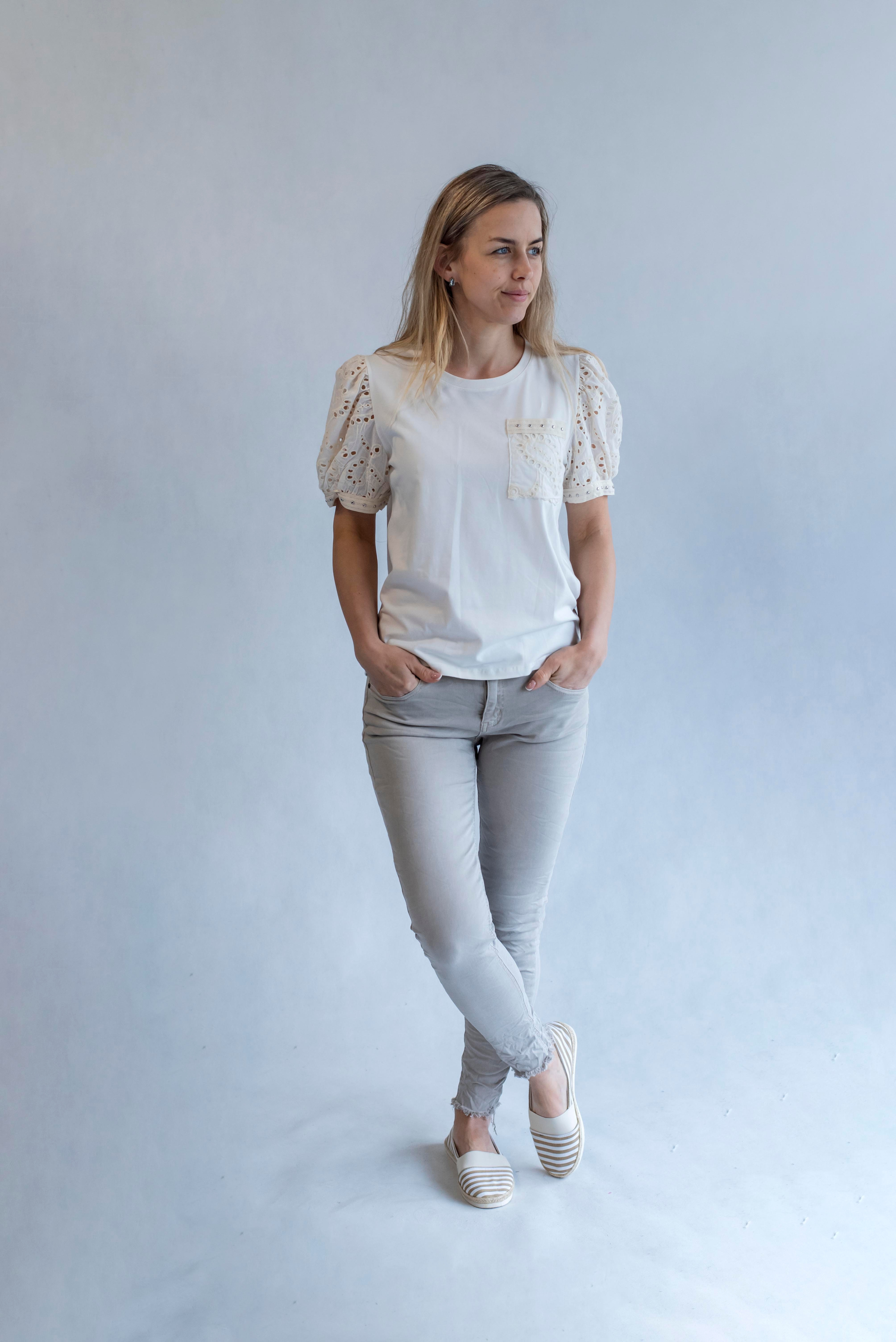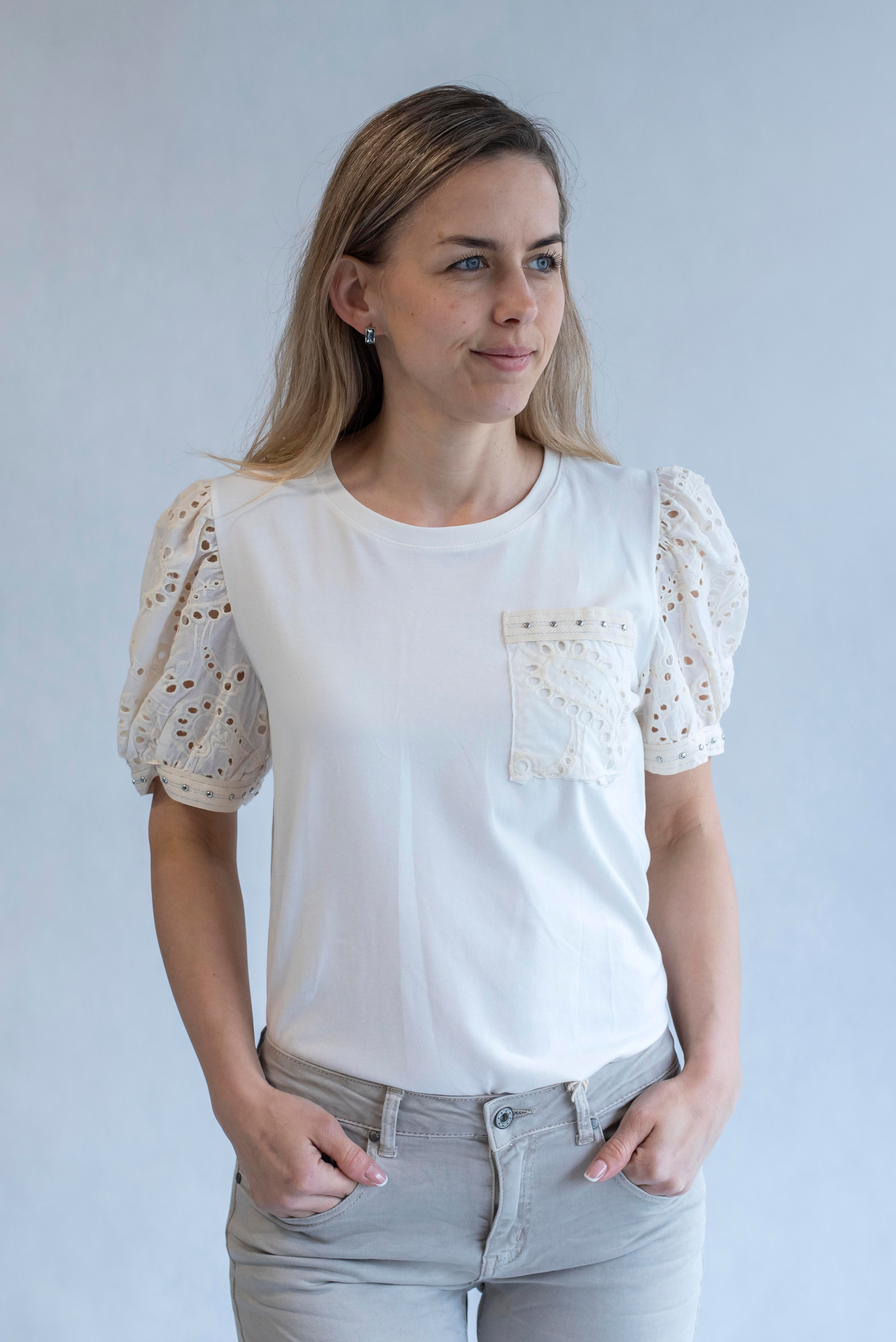 Dámské bavlněné tričko s rukávem z madeiry