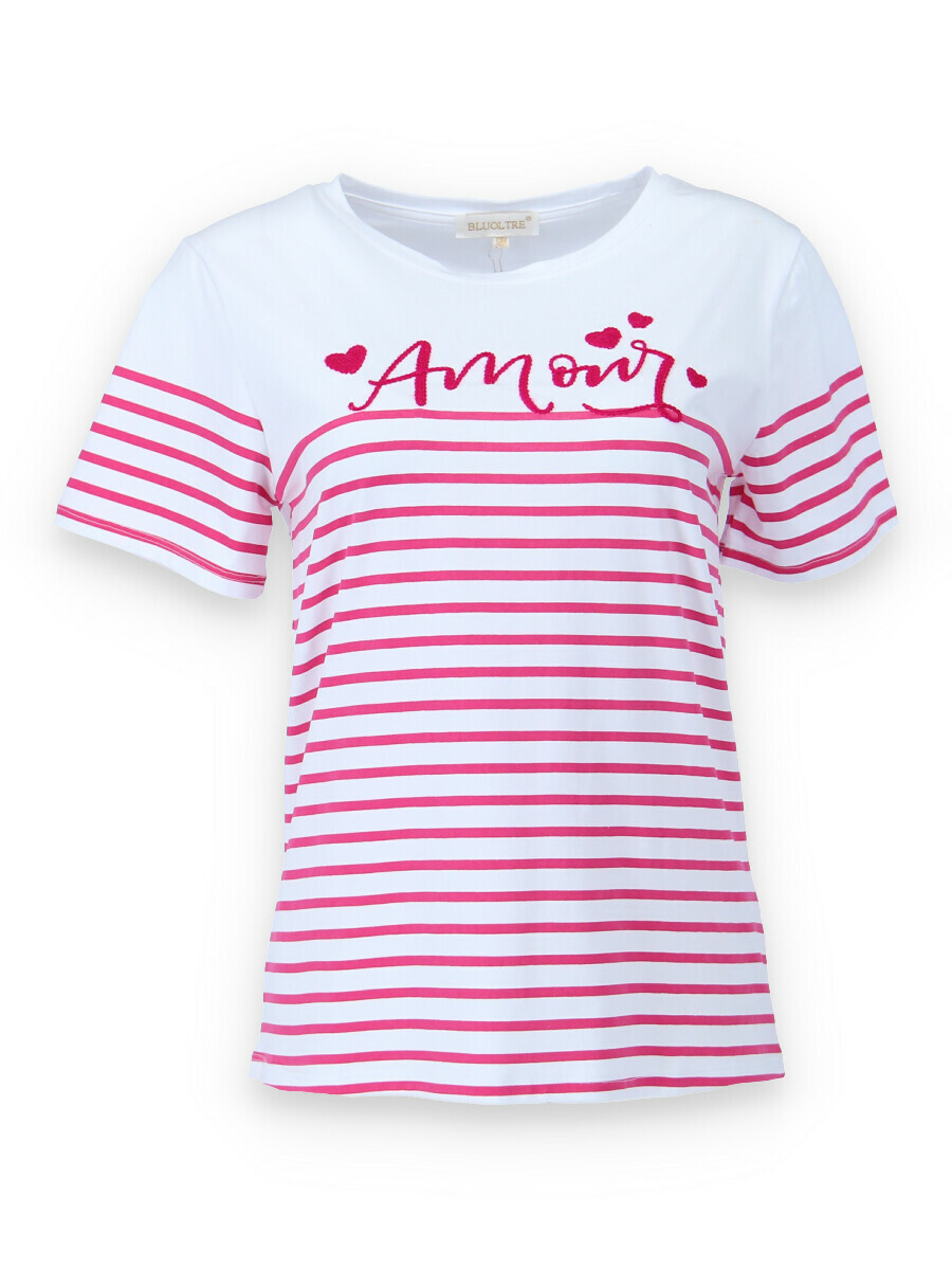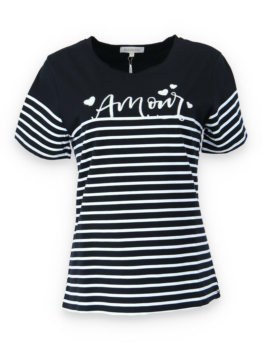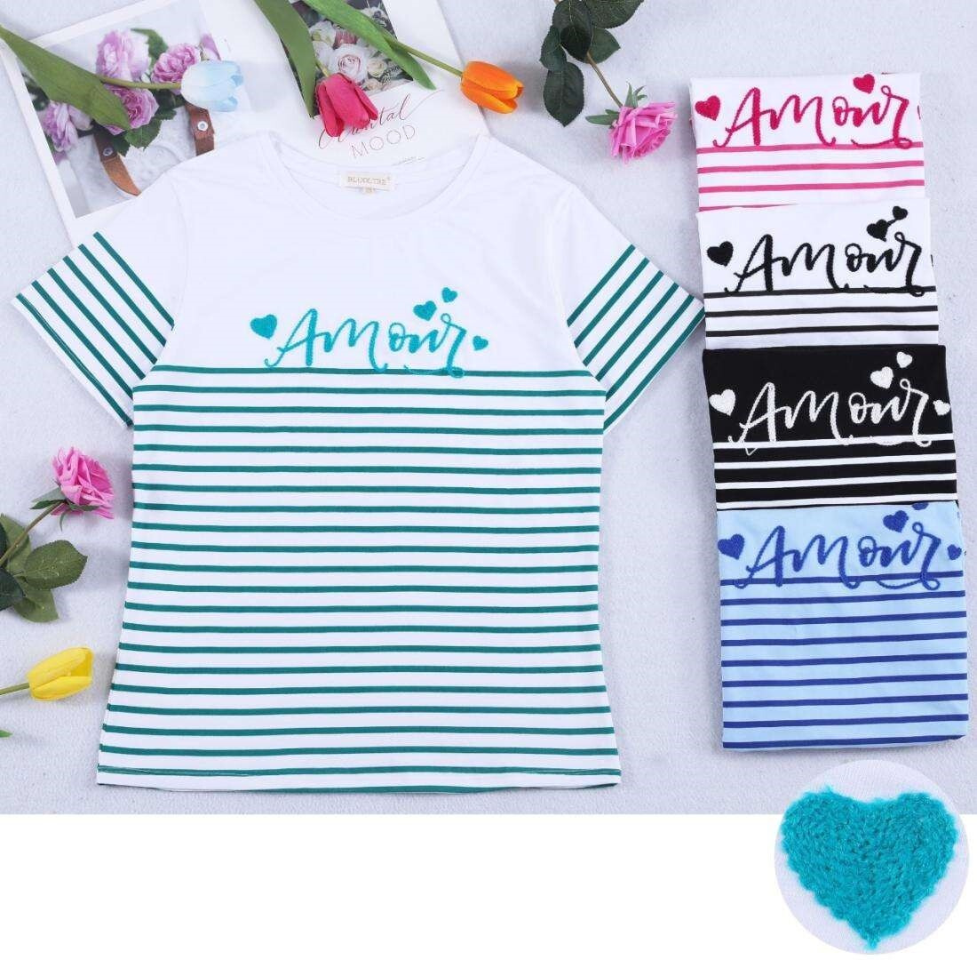 Triko s krátkým rukávem a proužkem nápis Amour