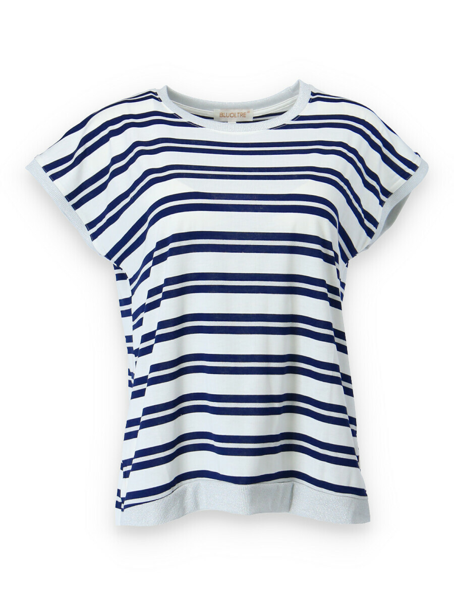 Dámské módní triko s proužkem. Triko má kulatý výstřih a krátký rukáv.