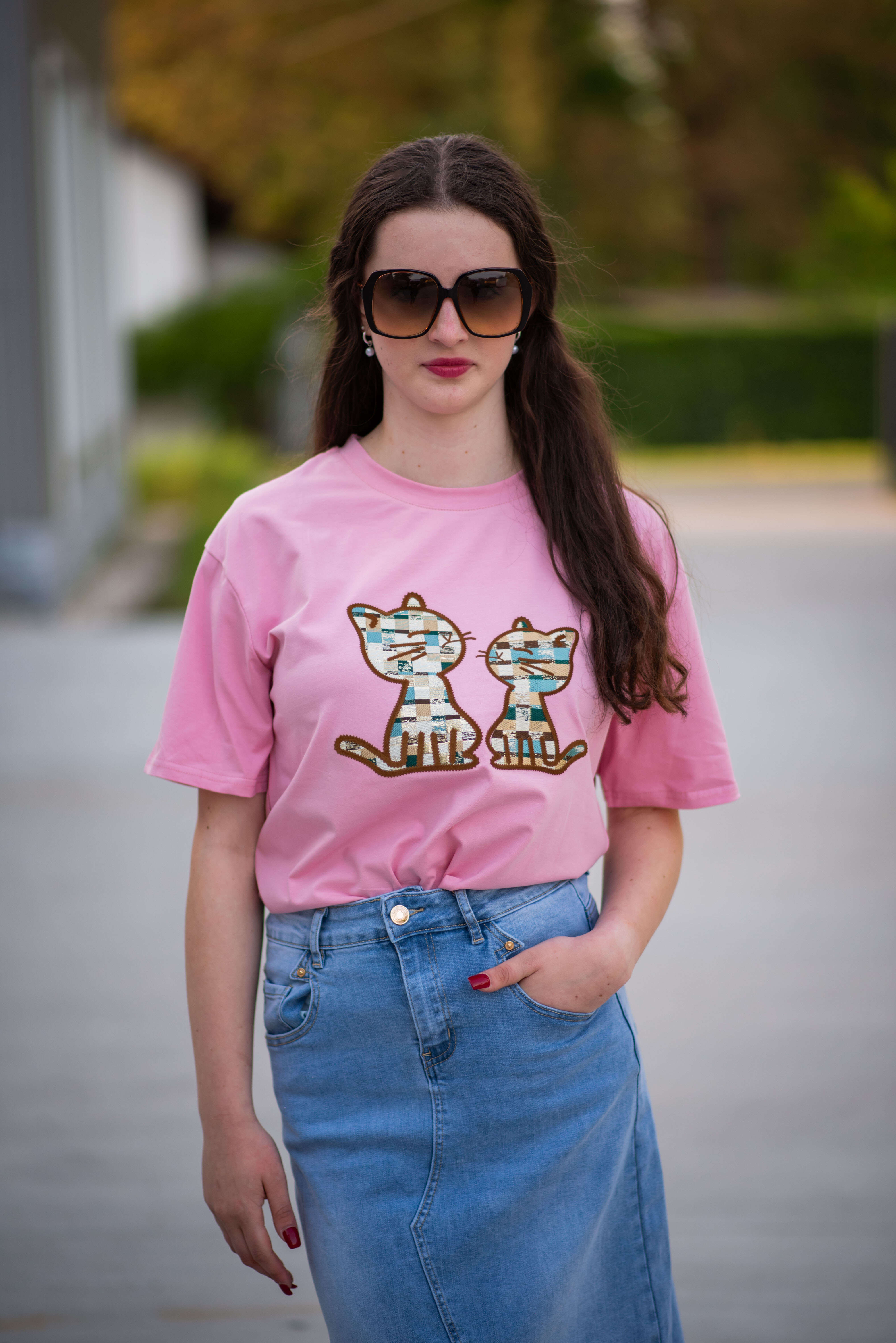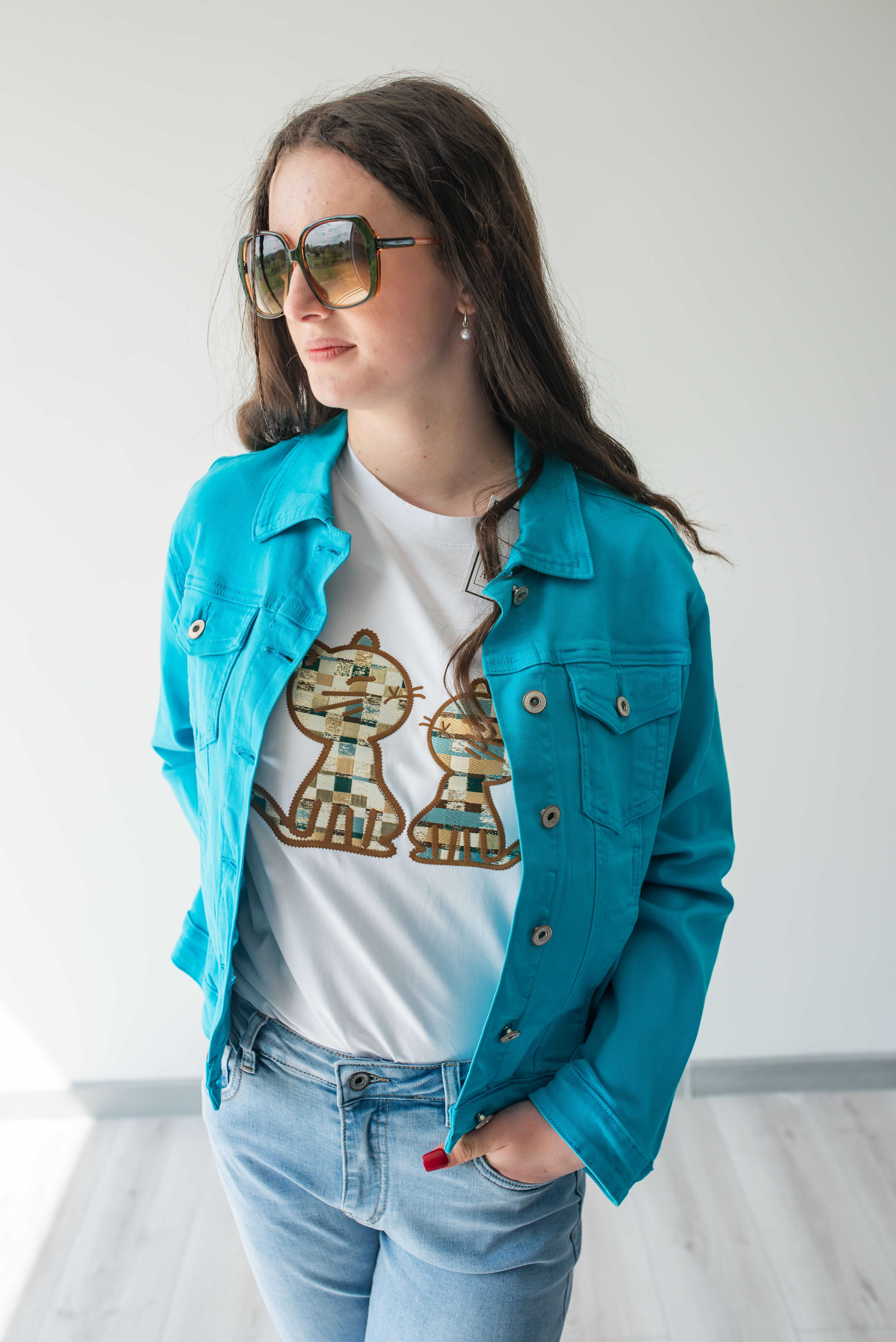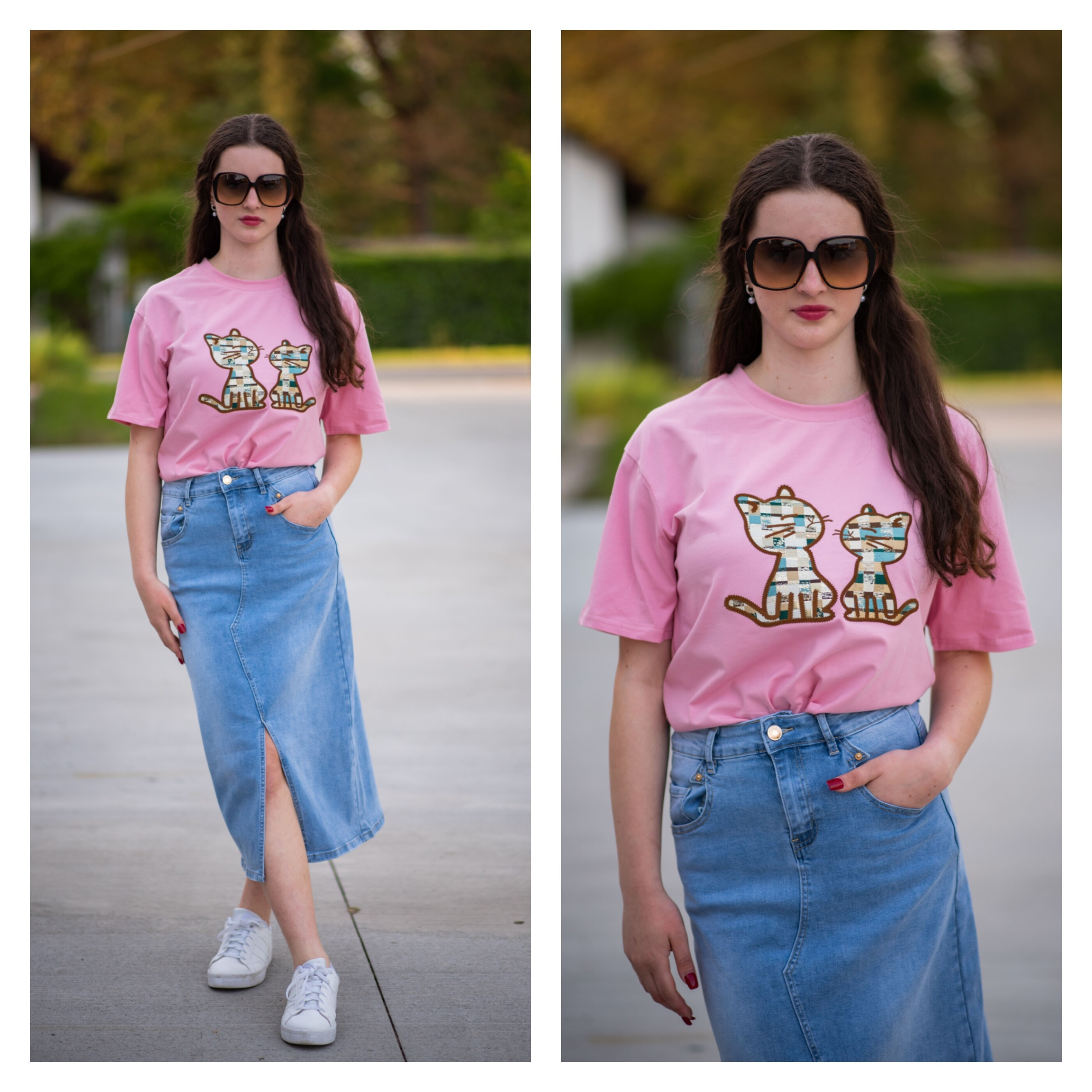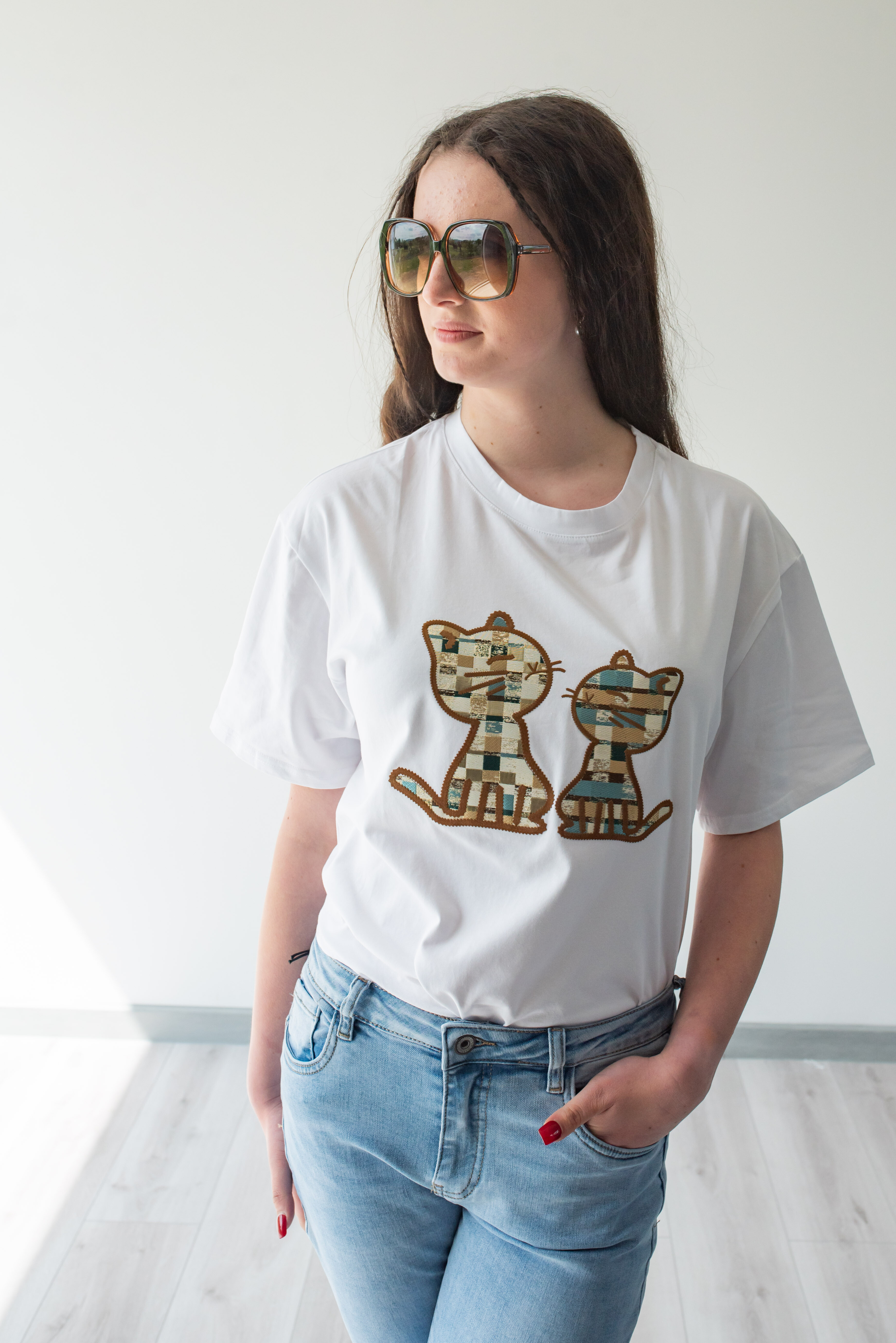 Dámské triko s krátkým rukávem. Triko má na přední straně aplikaci koček s 3D efektem a kulatý výstřih. Dovoz Itálie