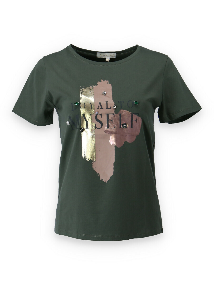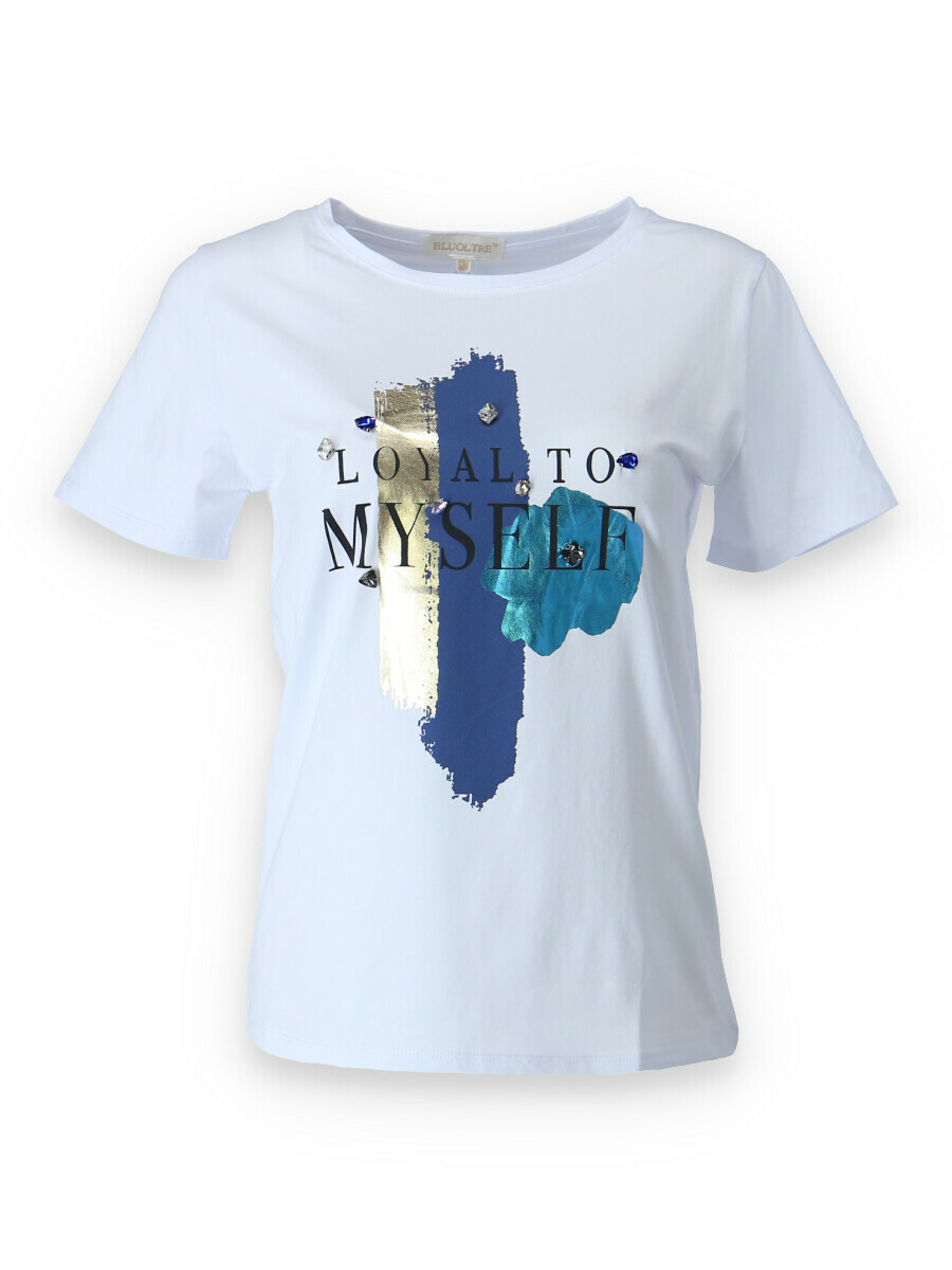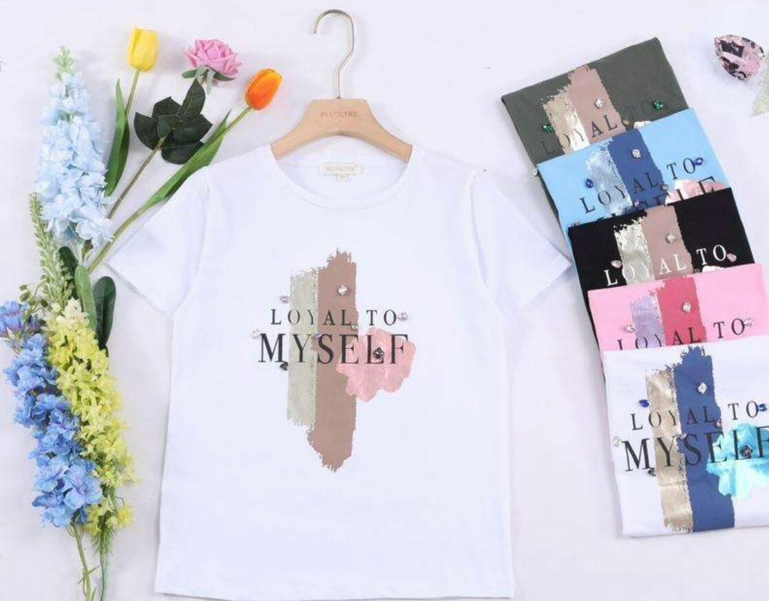 Dámské triko s potiskem. Triko má kulatý výstřih a krátký rukáv, velice příjemný materiál, vhodné pro běžné nošení.