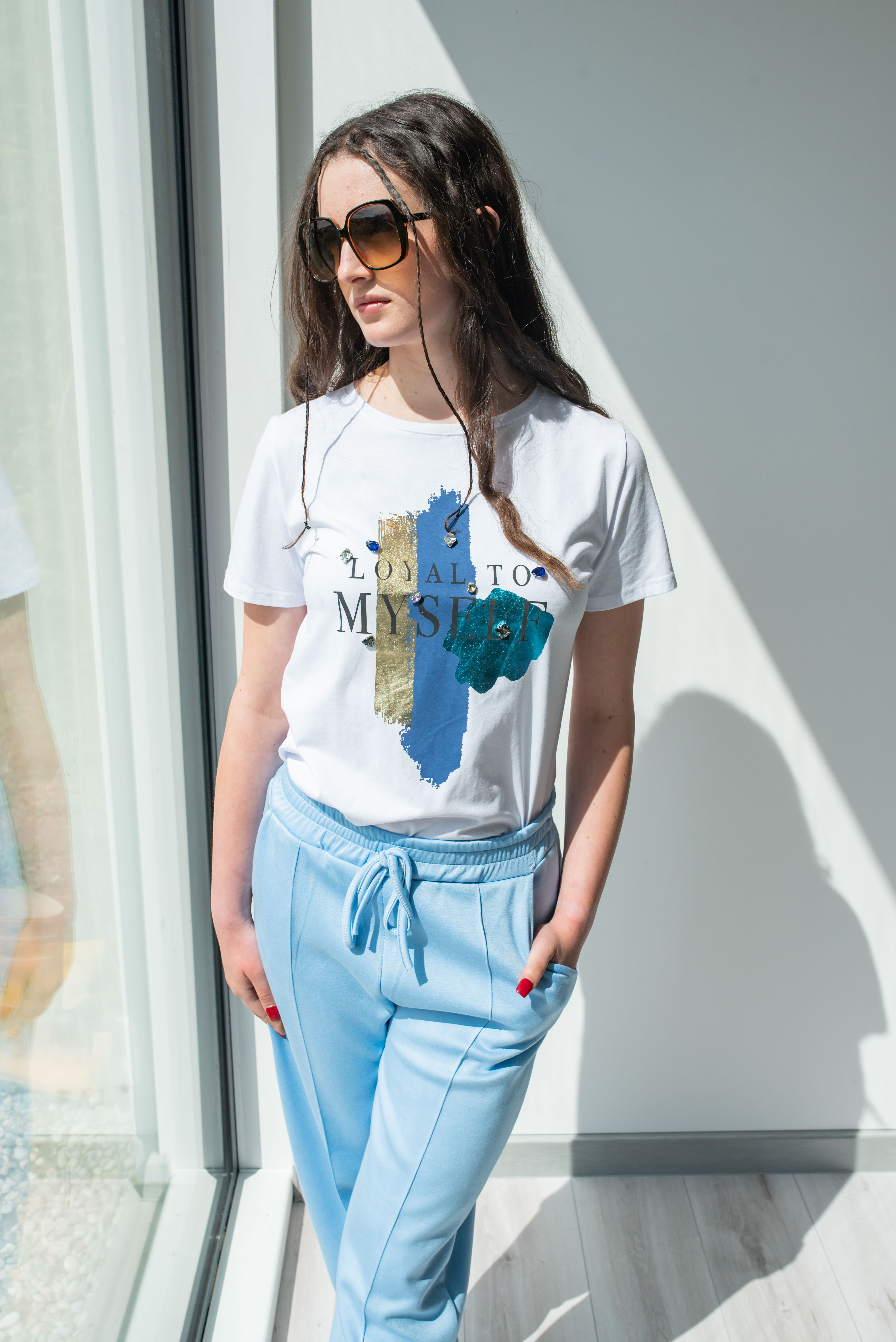 Barvy: bílá/zlatá, bílá/modrá, světle modrá, khaki, růžová, černá.