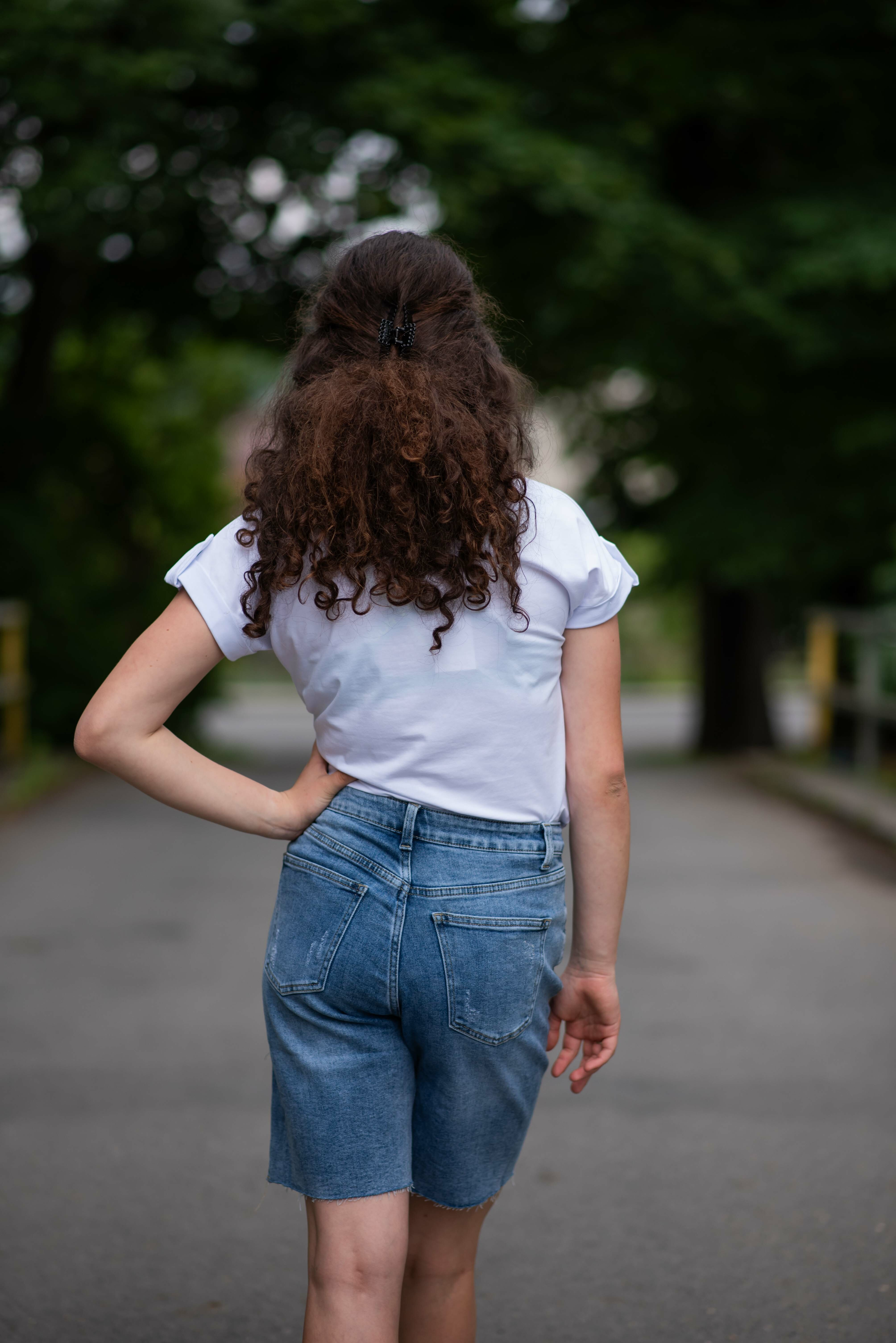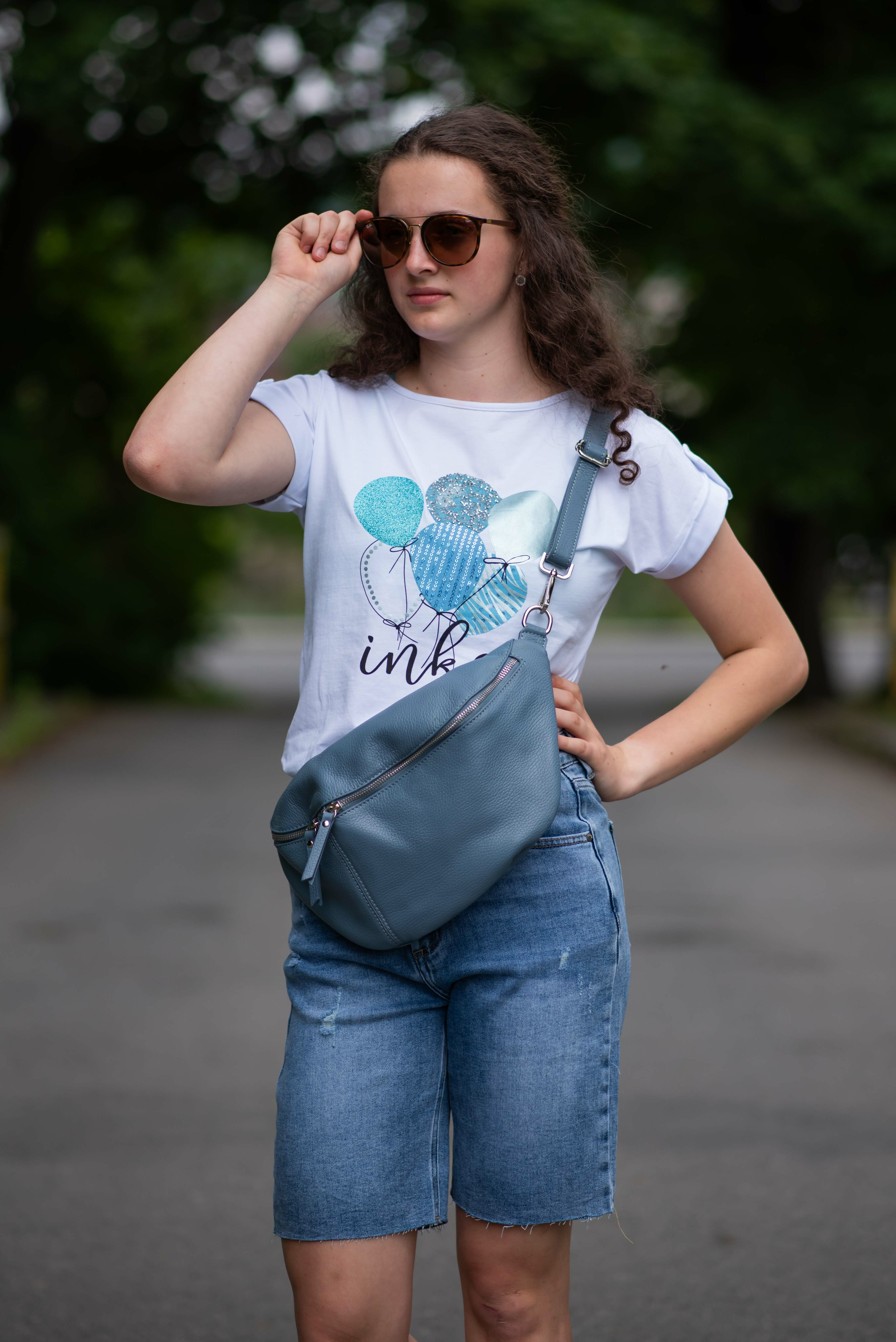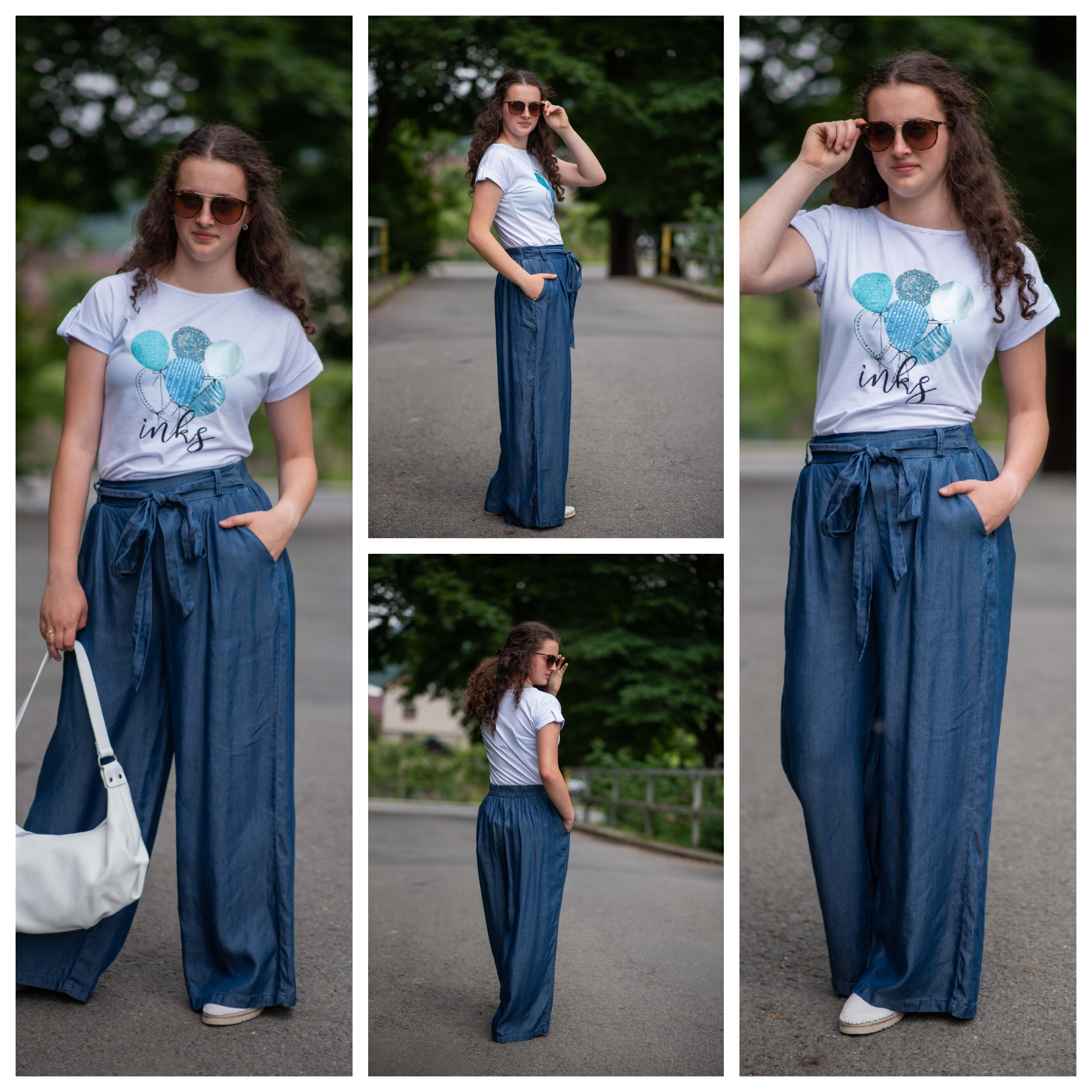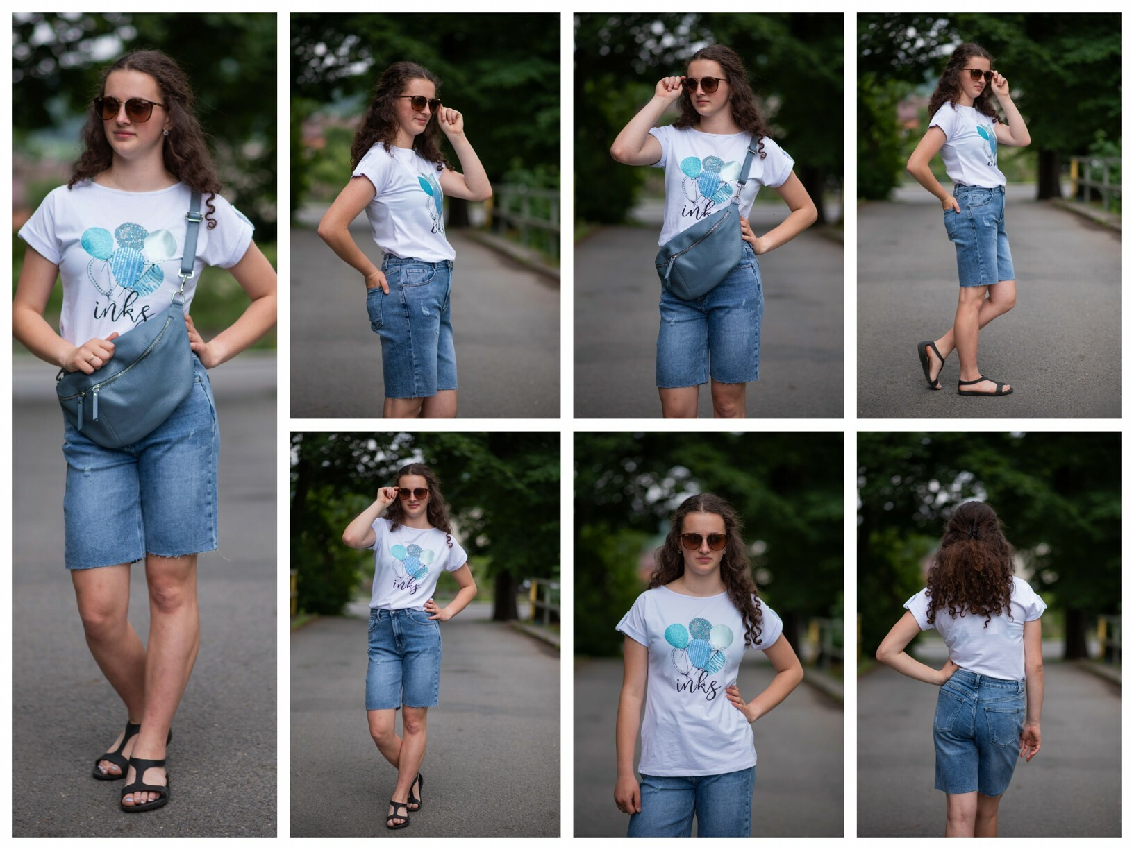 Dámské módní triko s potiskem. Triko má kulatý výstřih a krátký rukáv.