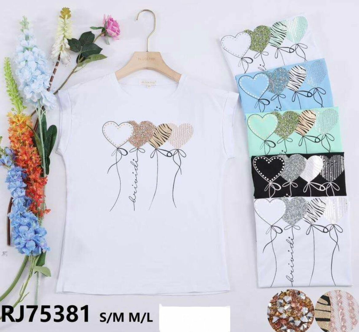 Dámské módní triko s potiskem. Triko má kulatý výstřih a krátký rukáv.