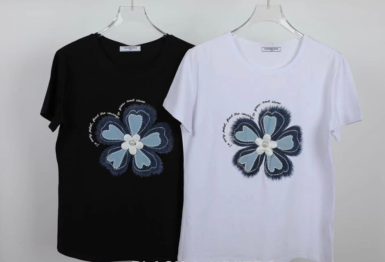 Dámské triko s krátkým rukávem. Triko má na přední straně potisk s květu a kulatý výstřih. Dovoz Itálie