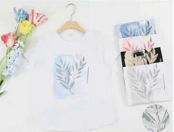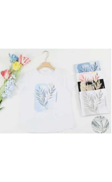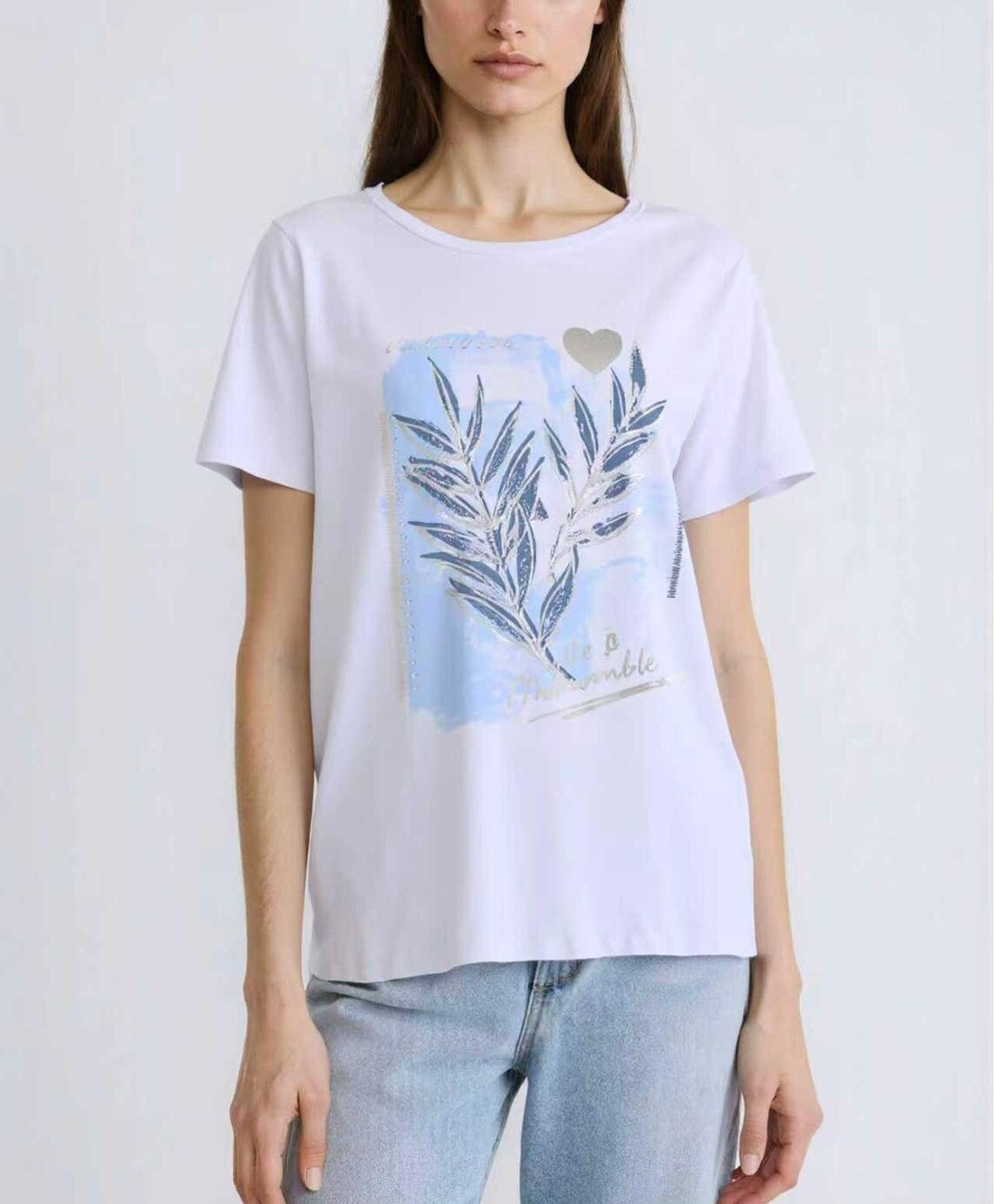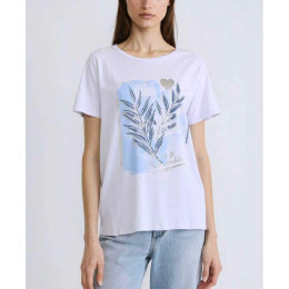 Dámské tričko s potiskem listu. Triko má krátký rukáv a kulatý výstřih.
