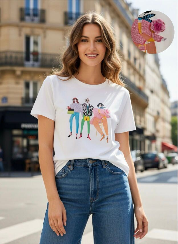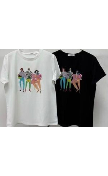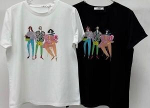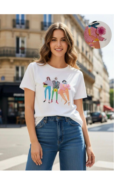 Módní bavlněné triko s trendy potiskem párty postav. Triko má krátký rukáv a kulatý výstřih.