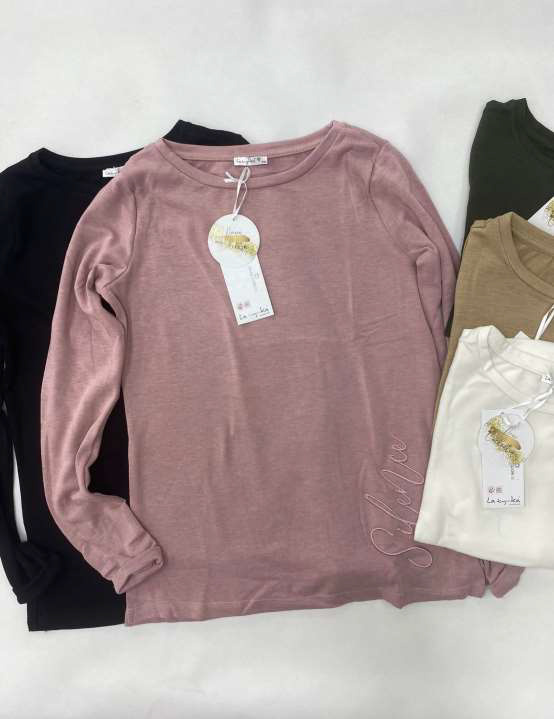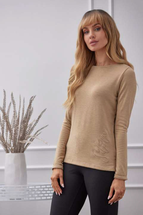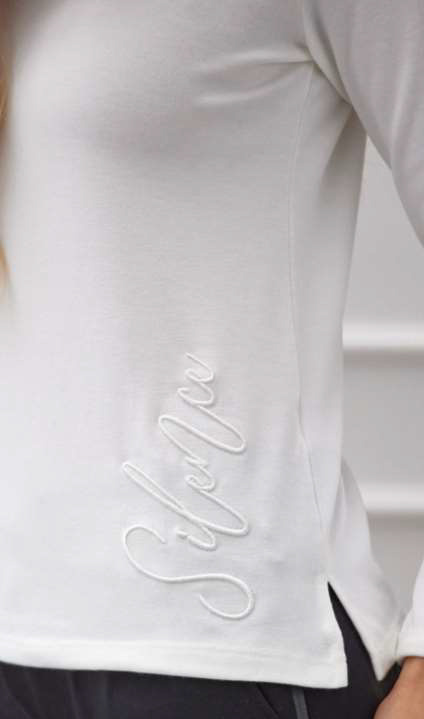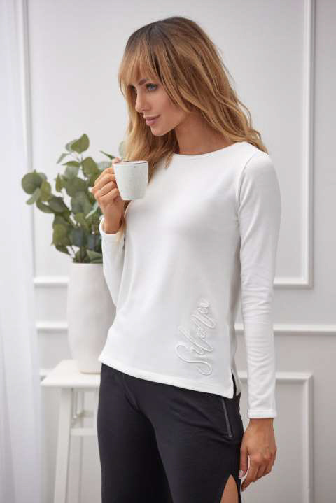 Módní úpletové triko s aplikací, dlouhý rukáv