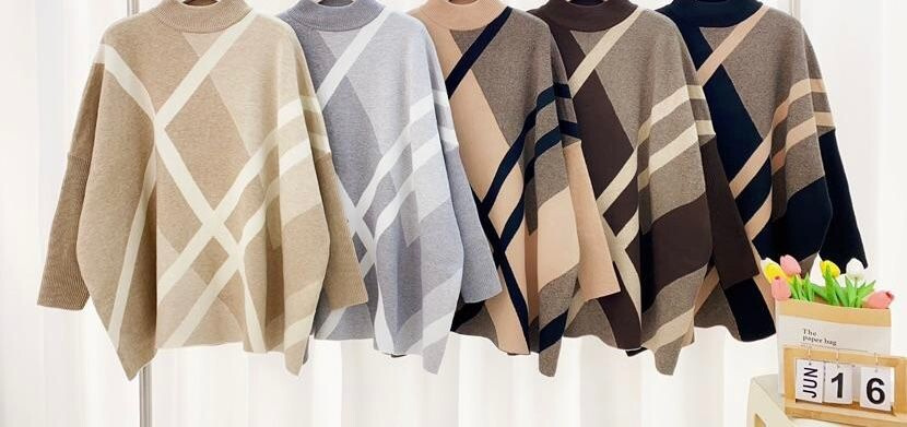 Elegantní károvaná tunika se stojáčkem volnějšího střihu. Dovoz Itálie