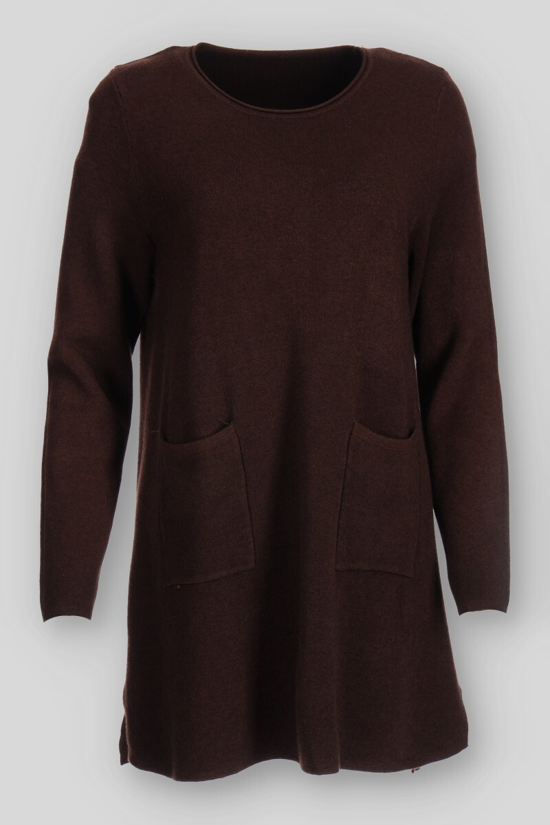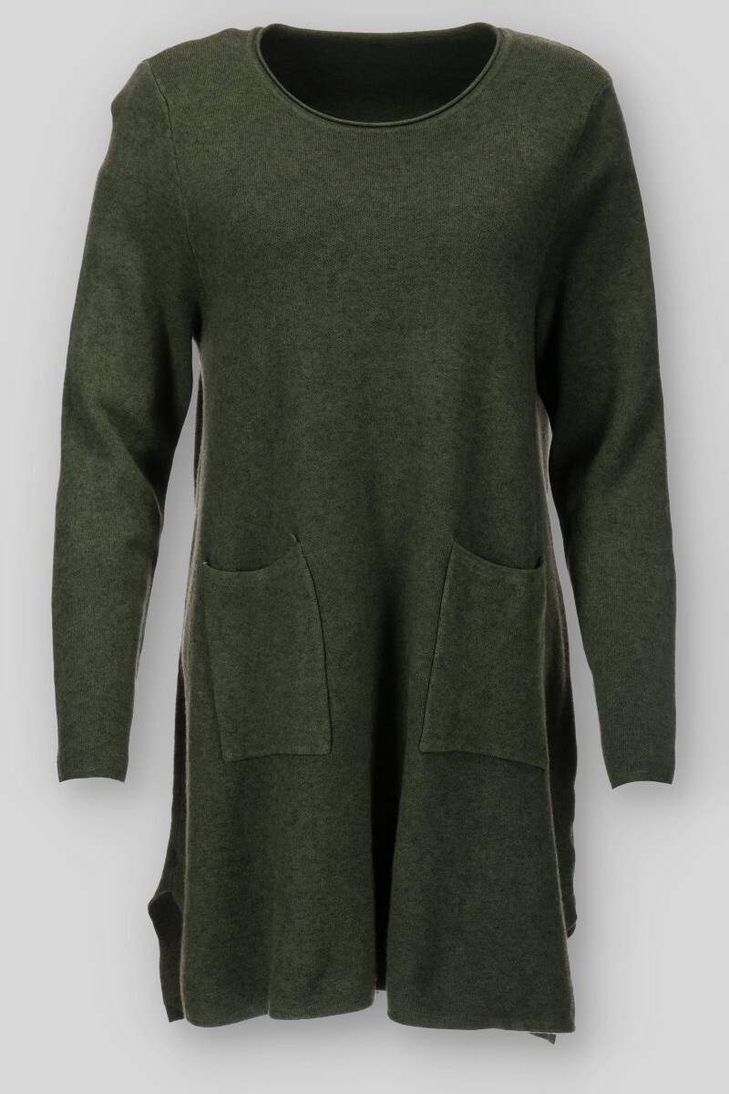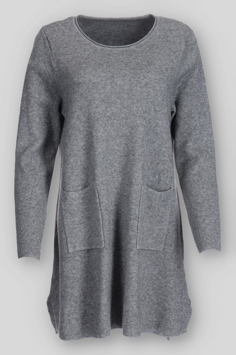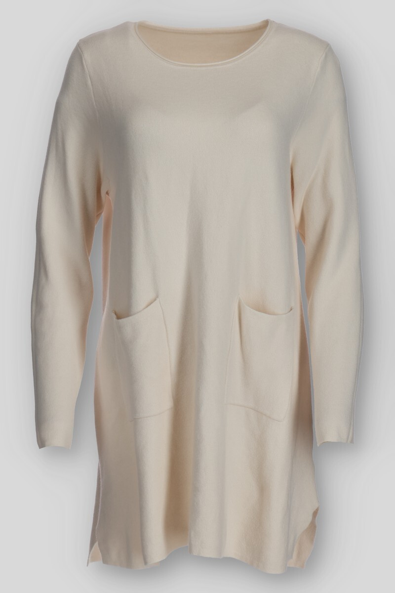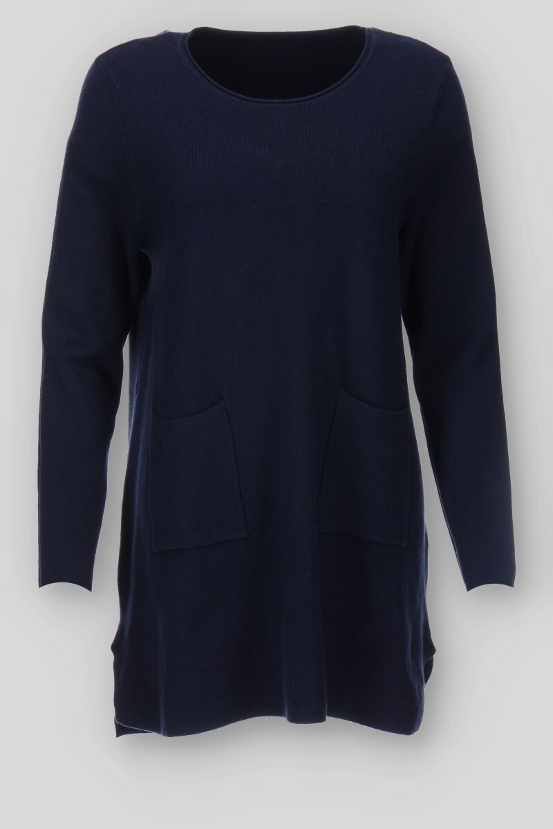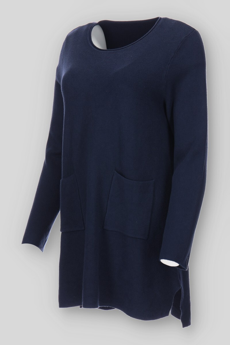Dámská úpletová tunika s kapsami a kulatým výstřihem.