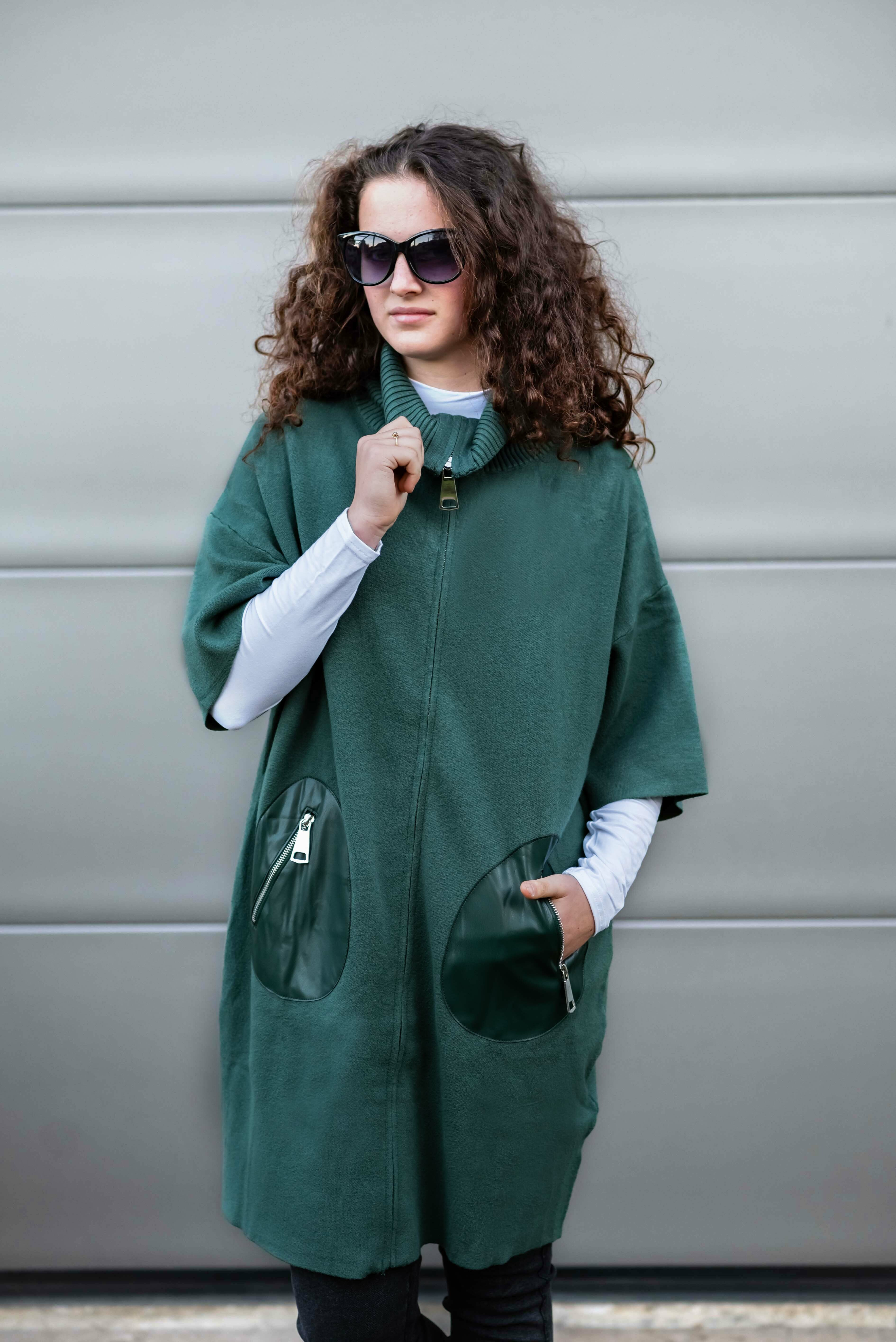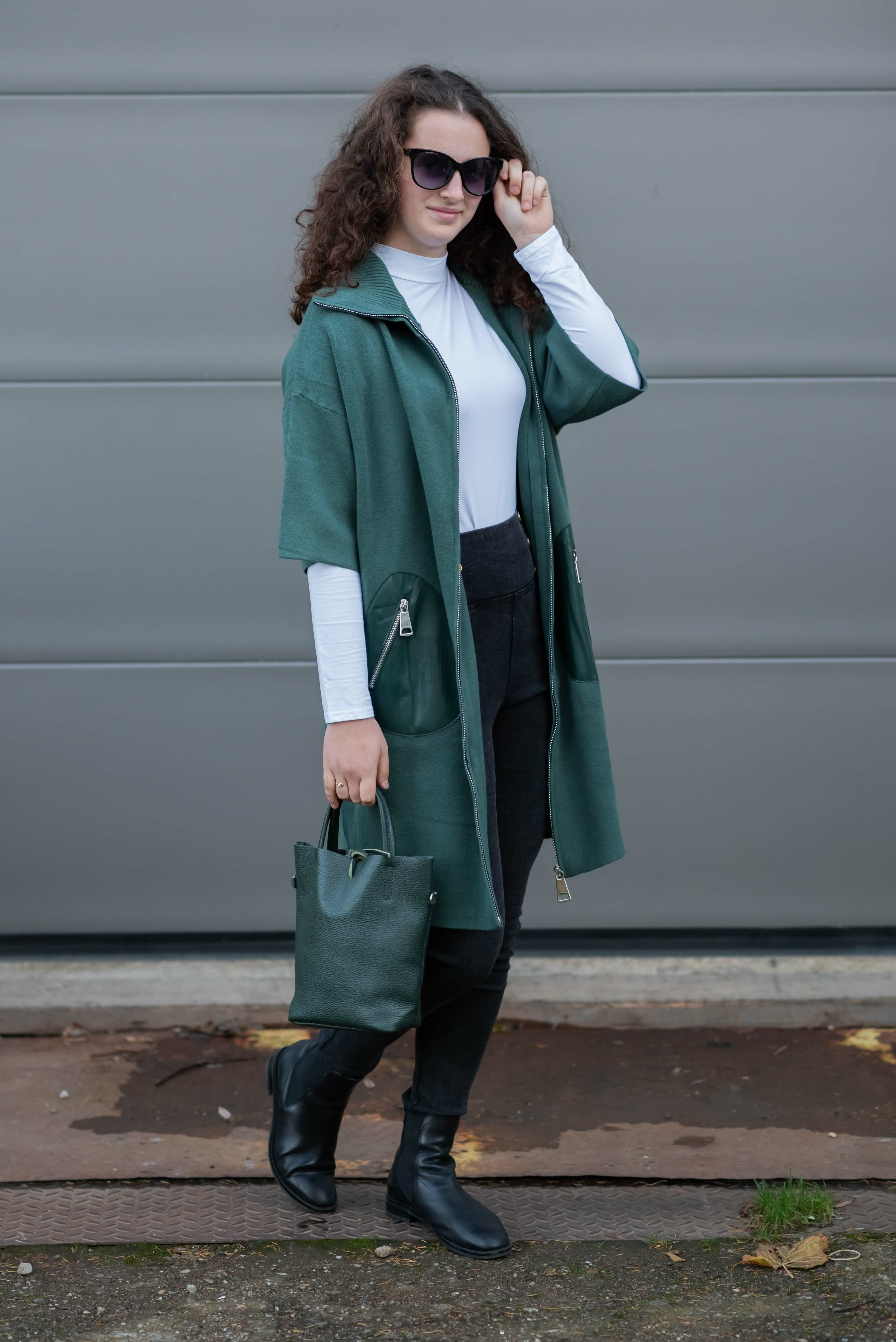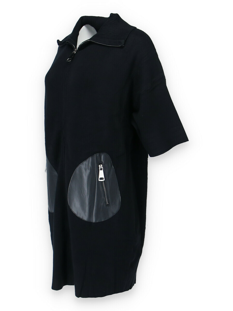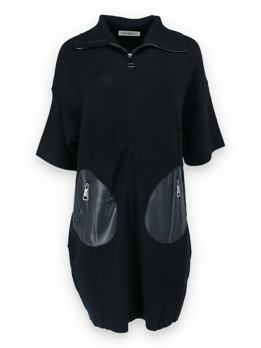 Tunika/svetr na zip úplet BW05870 Itálie. Delší úpletový svetřík/kabátek s rolákem, který lze zvolit jako svrchní část outfitu. Vhodné také k legínám nebo džínám. Na přední části všité kapsy na zip.
