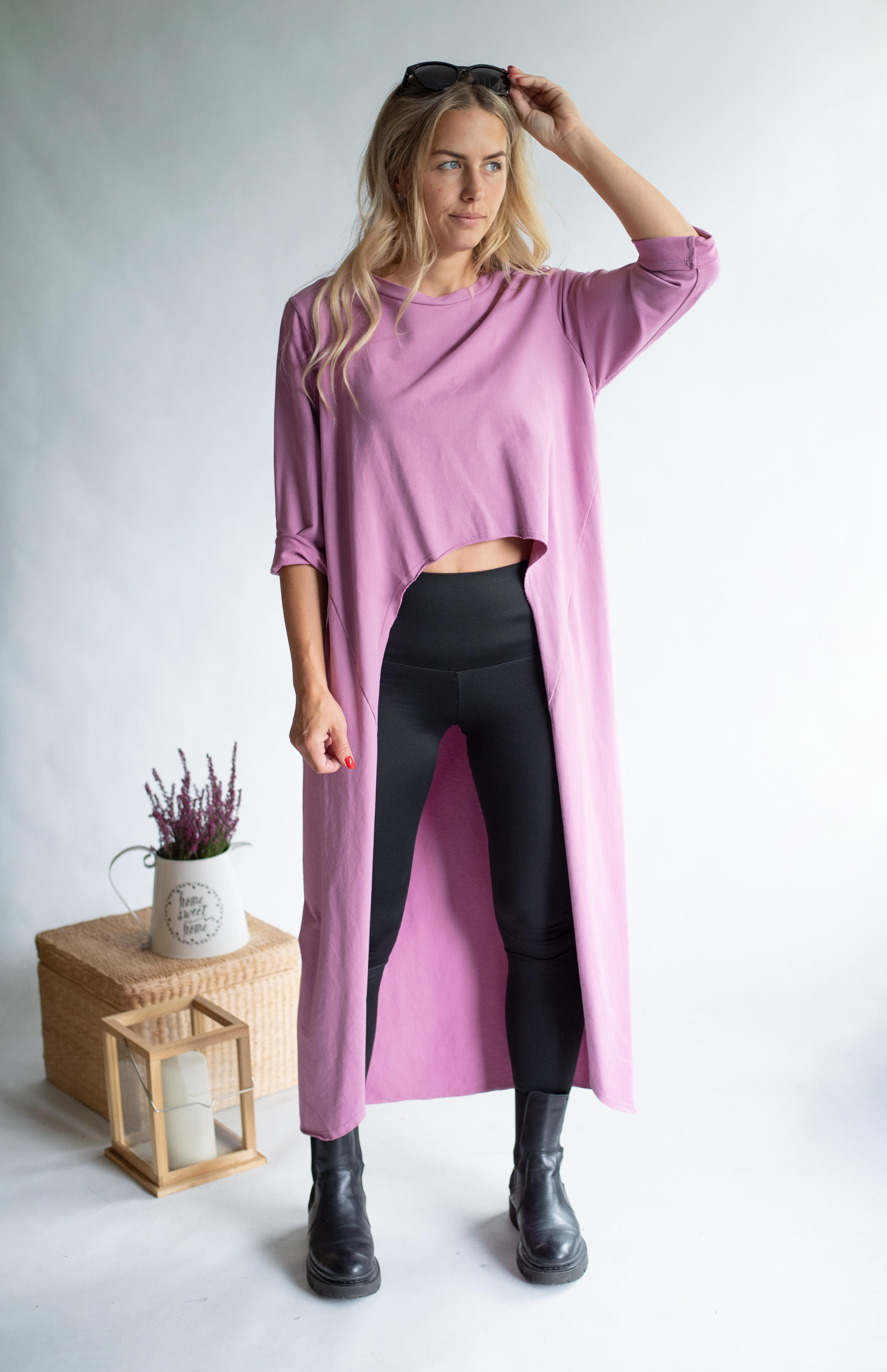 Dlouhá tunika tepláková s prostřihem ve spodní části , kulatý výstřih 3/4 rukáv