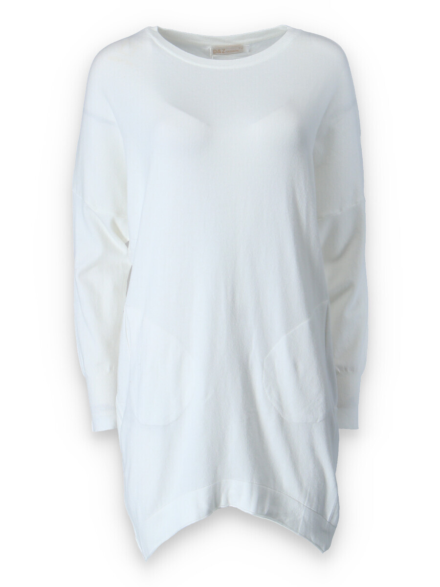 Tunika má našité kapsy na přední straně, kulatý výstřih a prodlouženou zadní délku, dovoz Francie