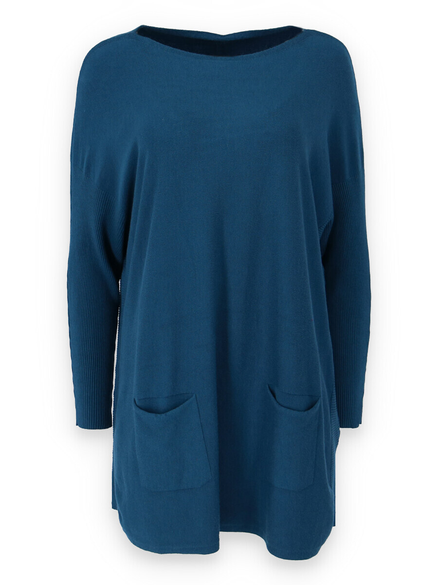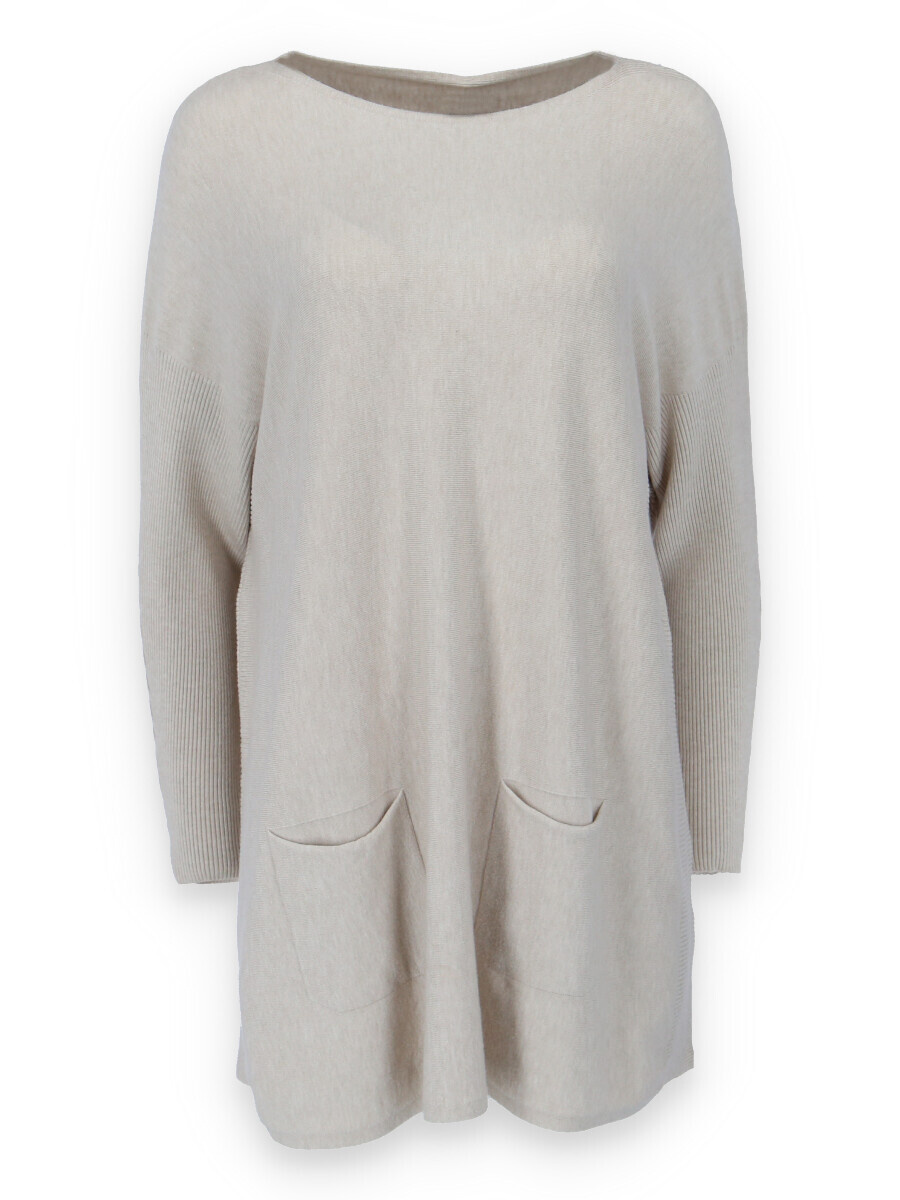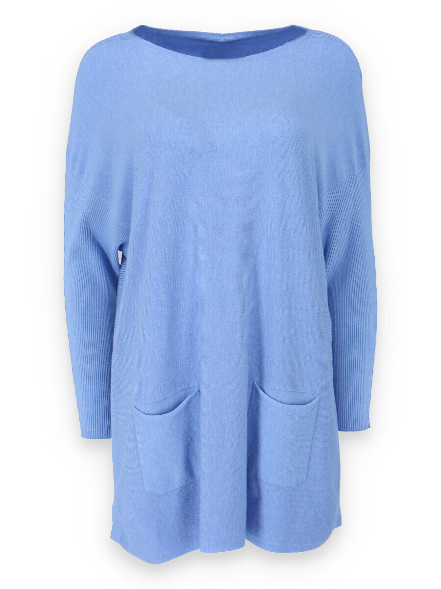 Módní svetřík/tunika s kulatým výstřihem. Tunika má dlouhý rukáv raglanového střihu. Dovoz Itálie