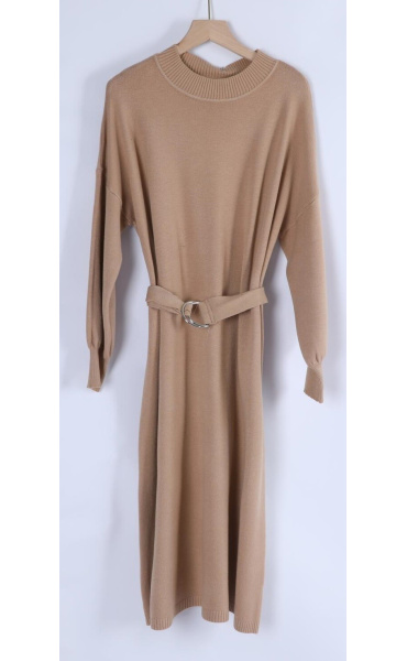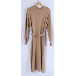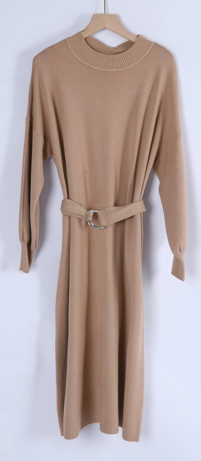 Úpletové šaty s dlouhým rukávem a opaskem