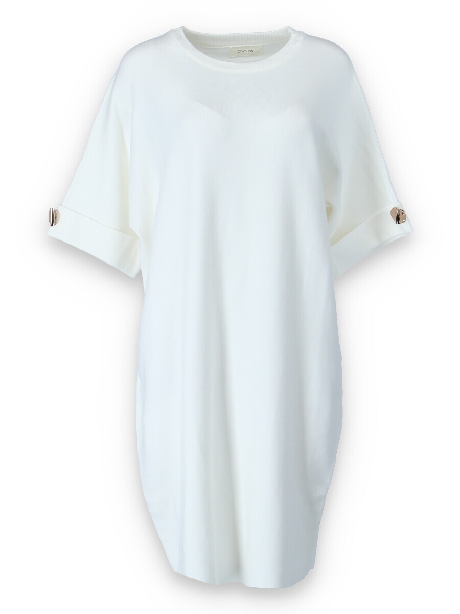 Stylové úpletové šaty oversize střihu s krátkým rukávem.