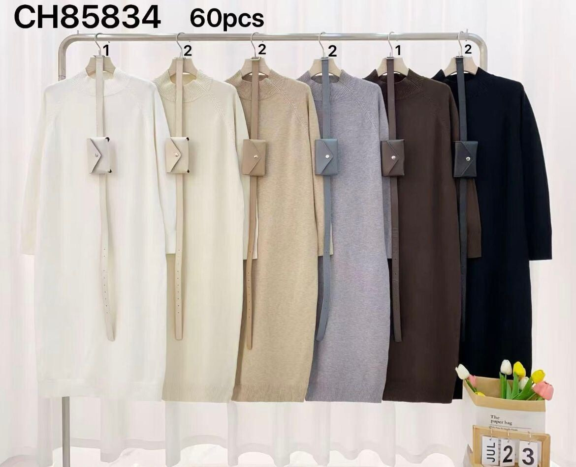 Úpletové šaty s páskem CH85834