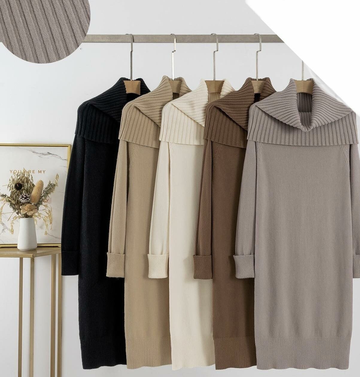 Módní dámské šaty úpletové s šálovým límcem. Dovoz Itálie