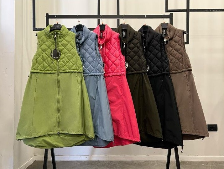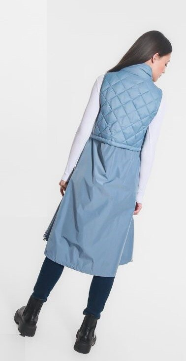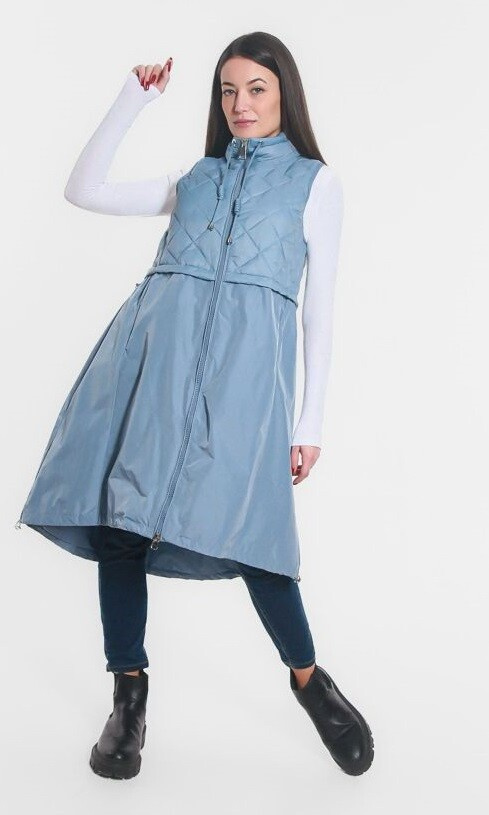 Módní dlouhá vesta s regulací v pase na zip. Itálie
