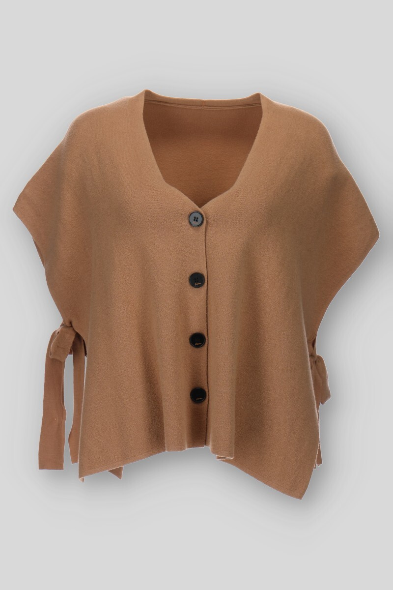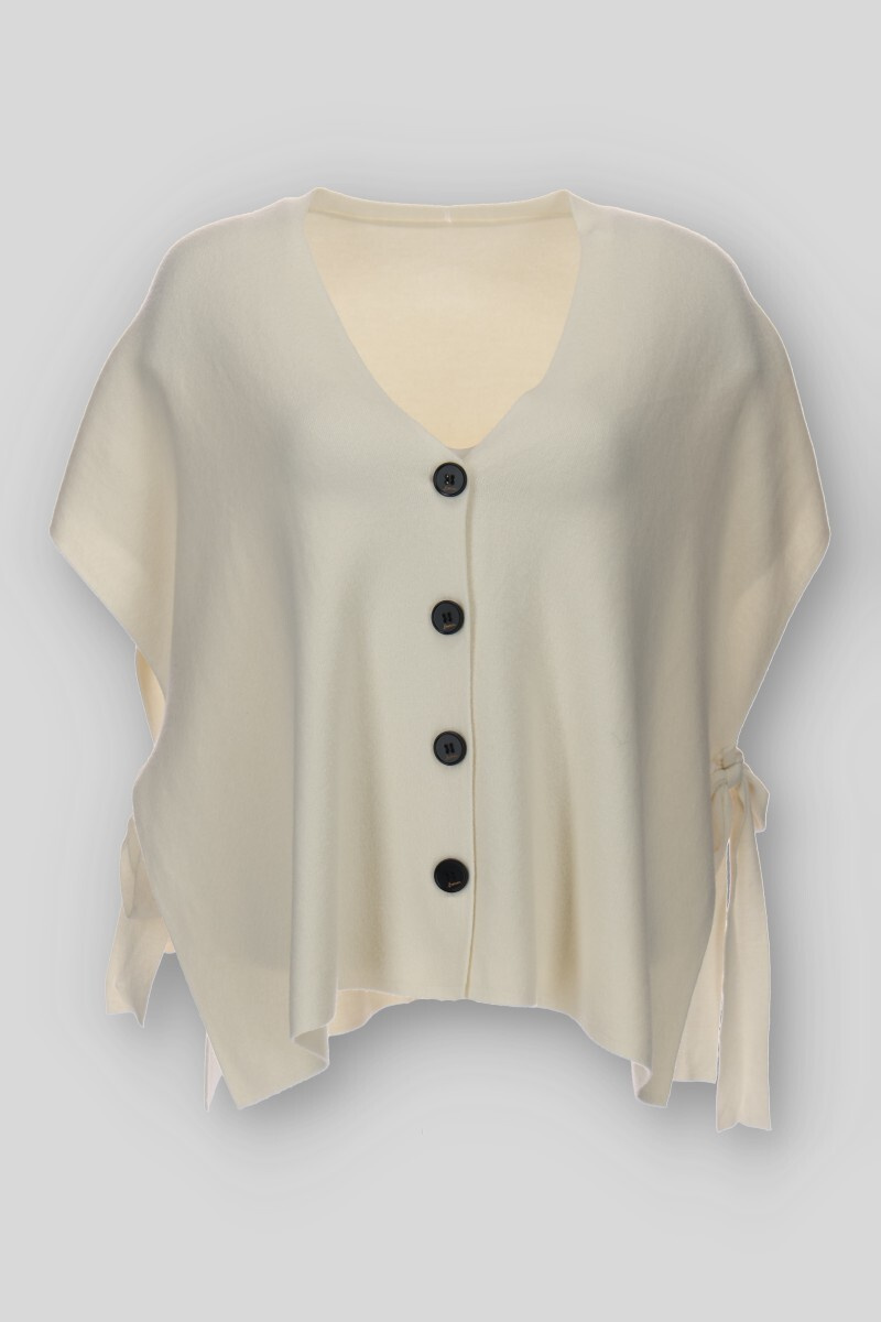 Stylová vesta s vázáním po stranách. Vesta je volnějšího oversized střihu a má zapínání na knoflíky. Vyrobeno v Itálii