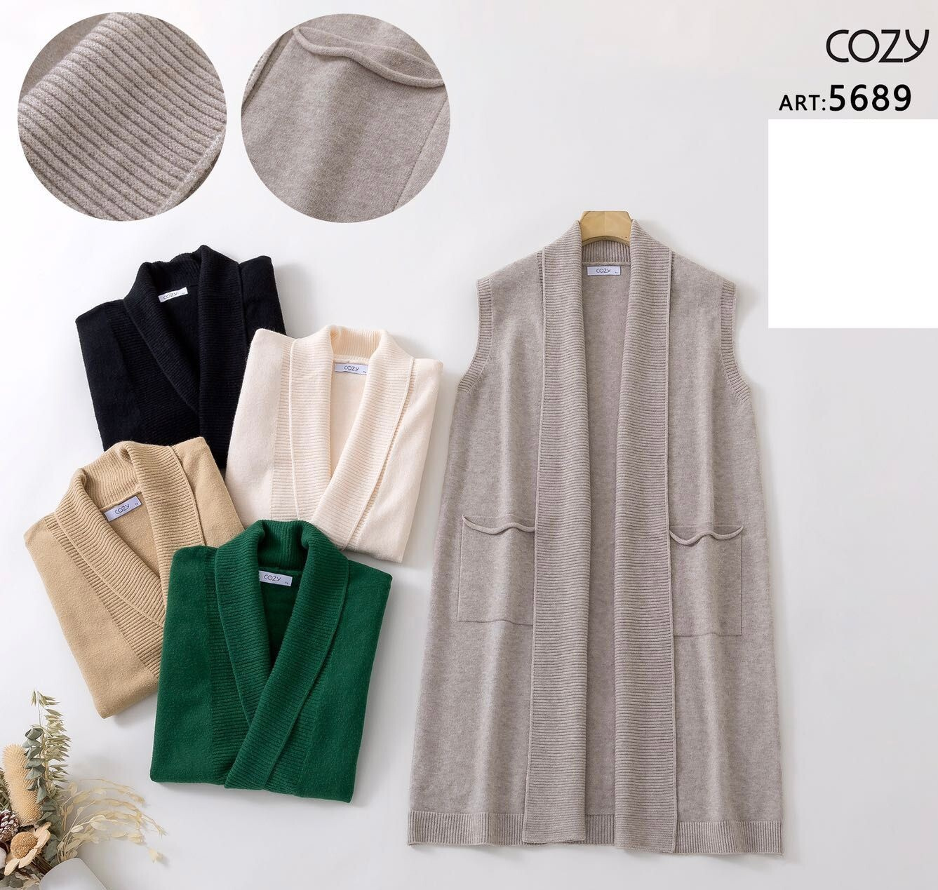 Dlouhá úpletová vesta, všité kapsy na přední straně. Dovoz Itálie