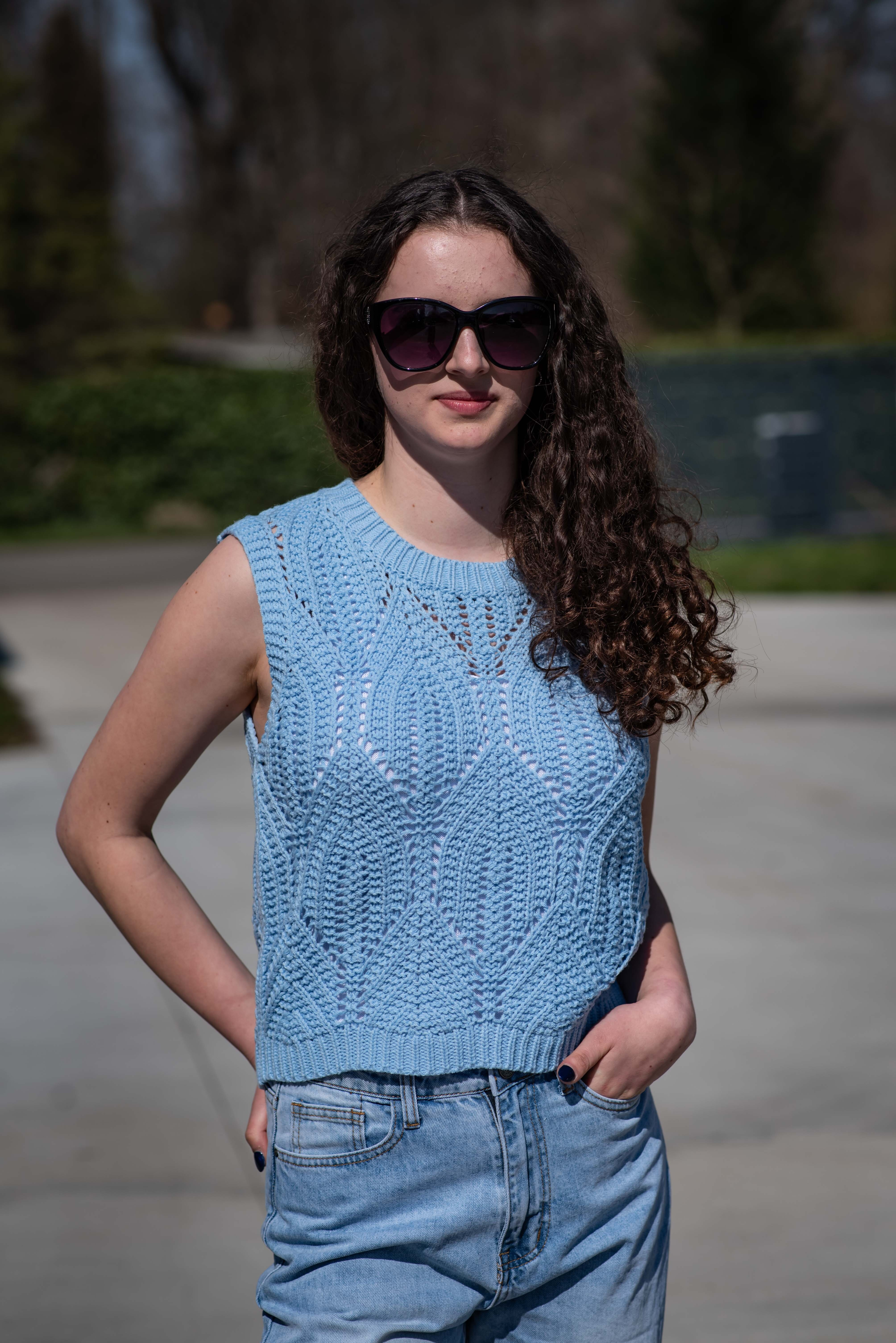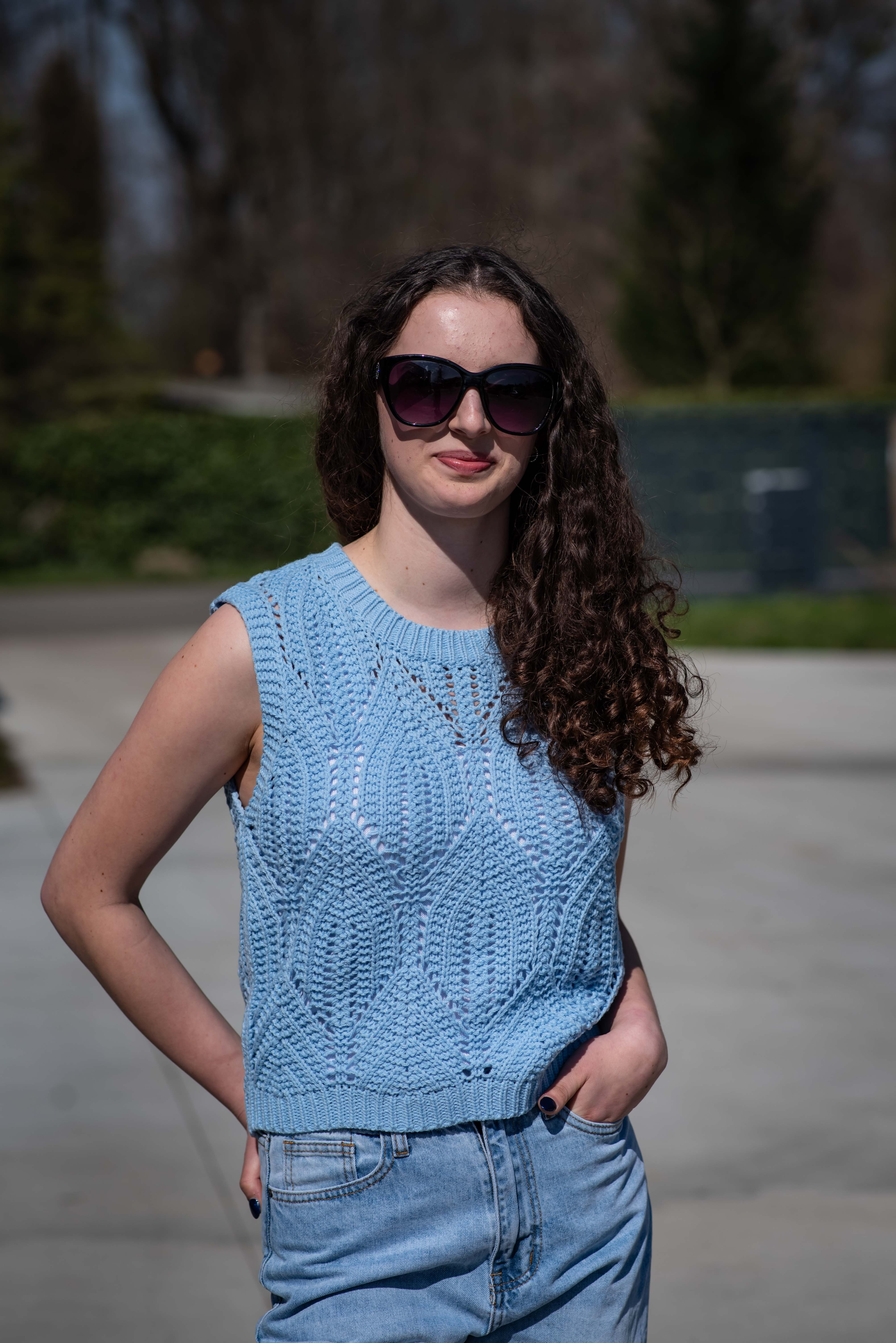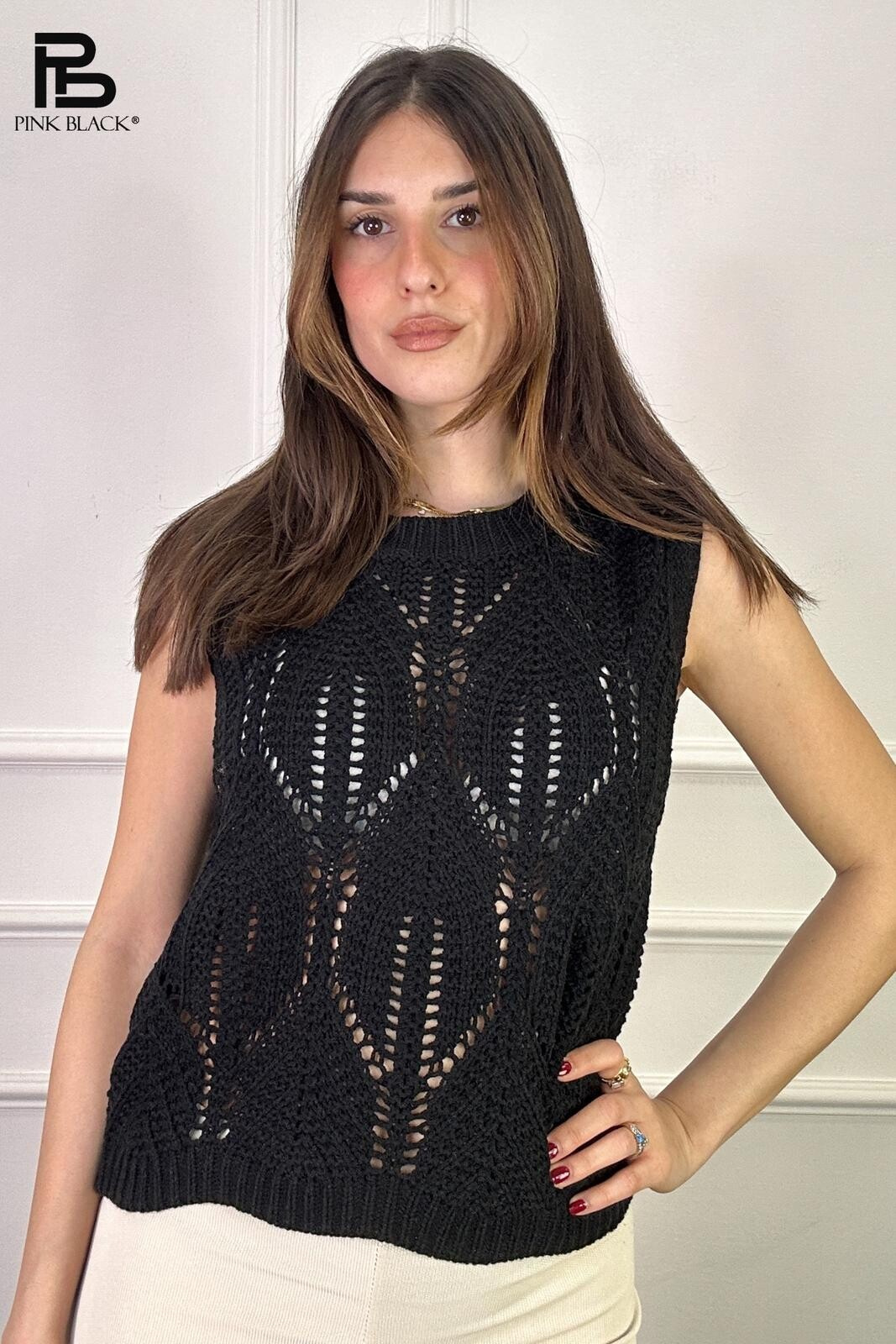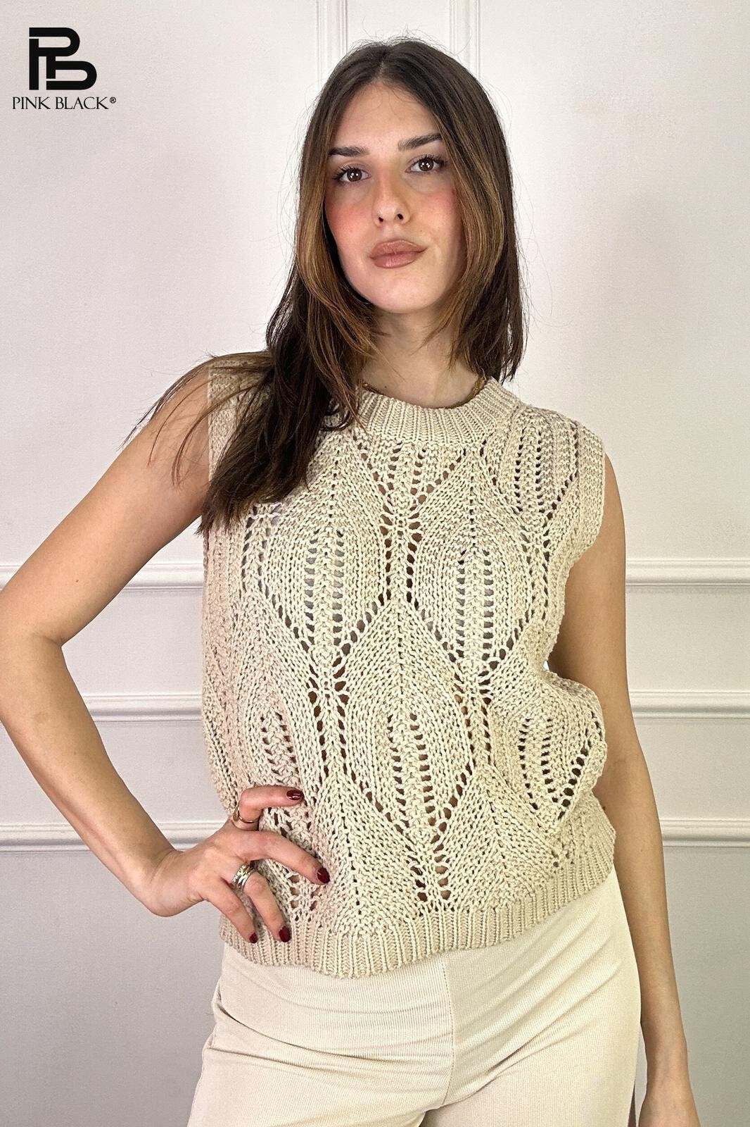 Dámská stylová úpletová vesta s kulatým výstřihem.