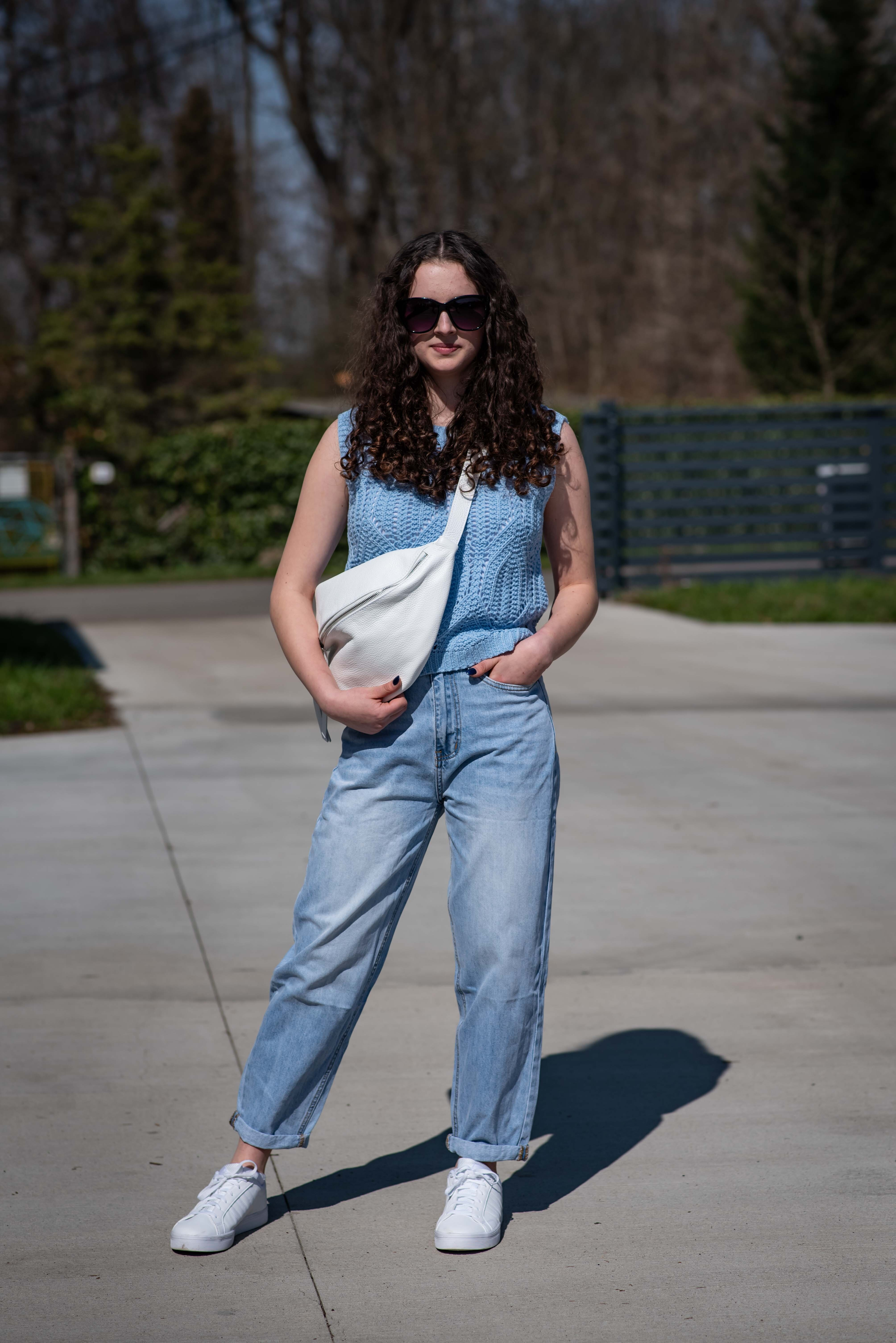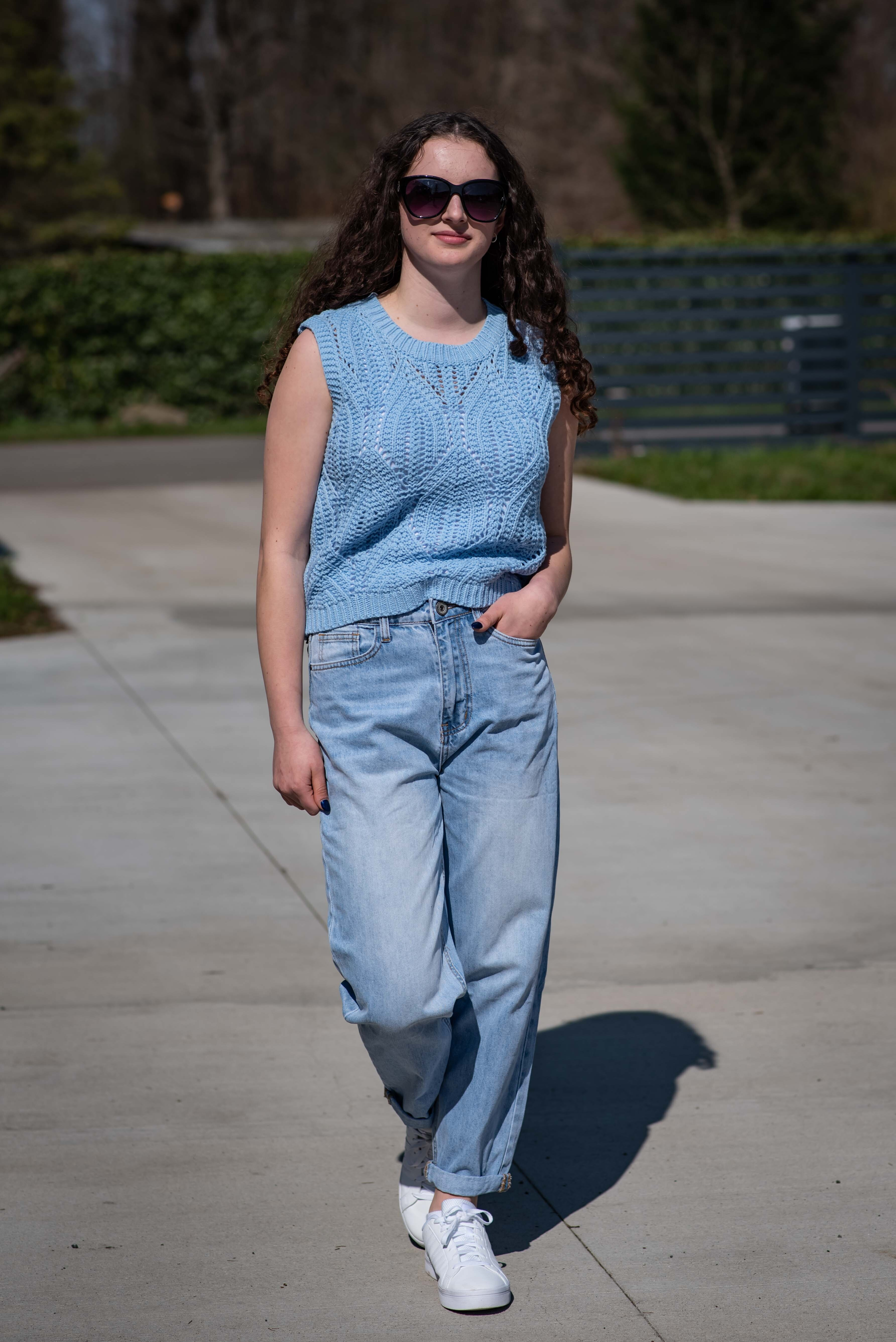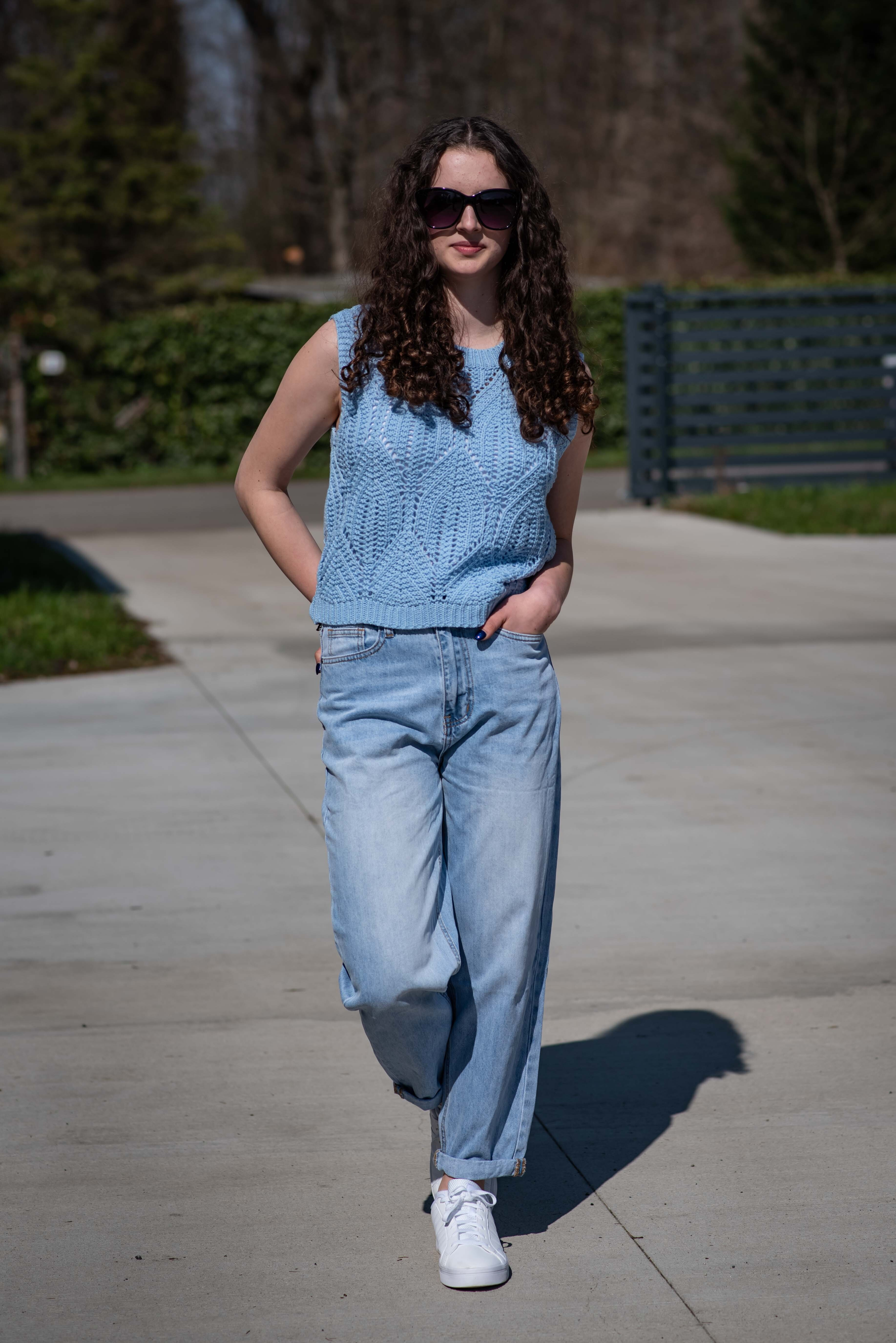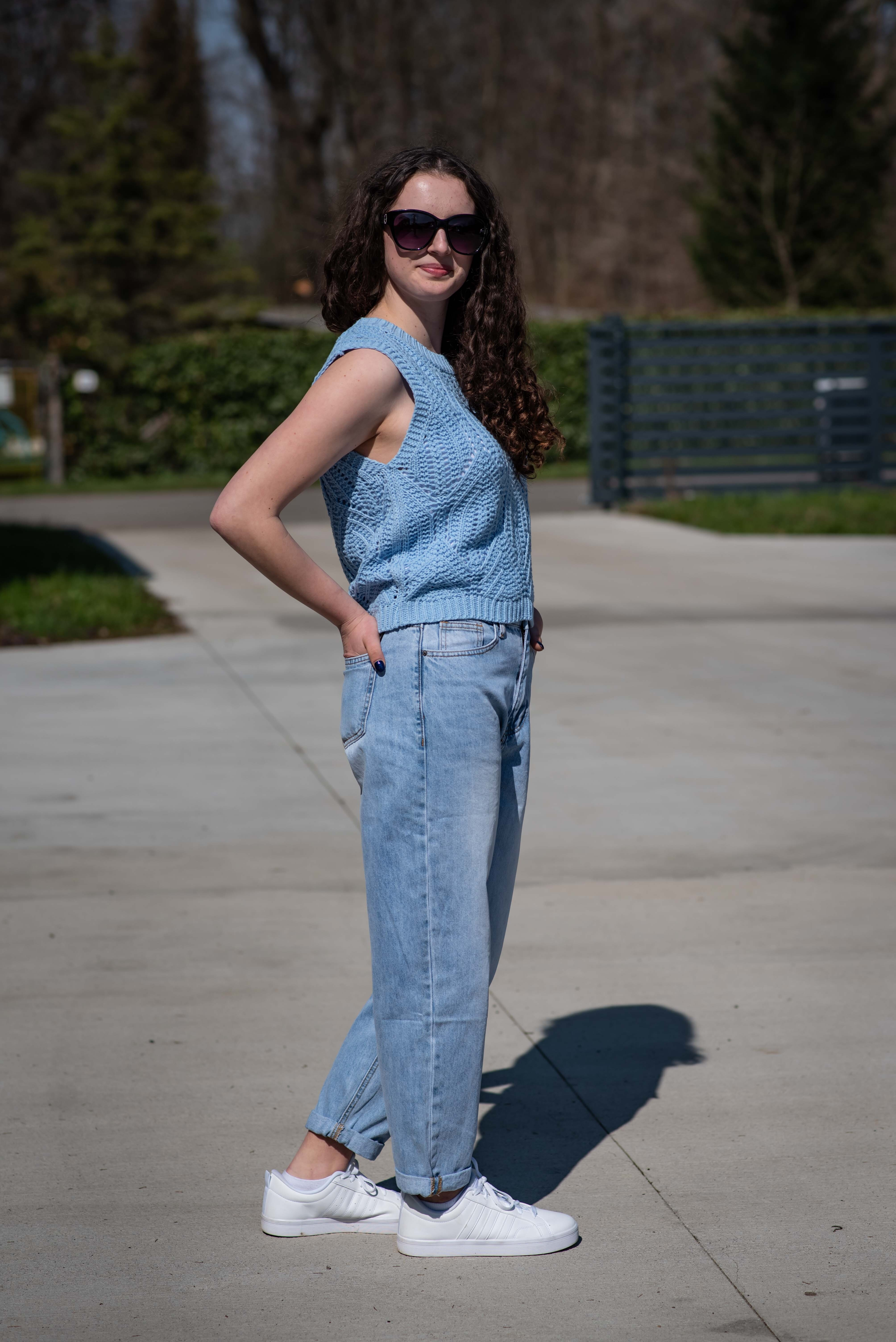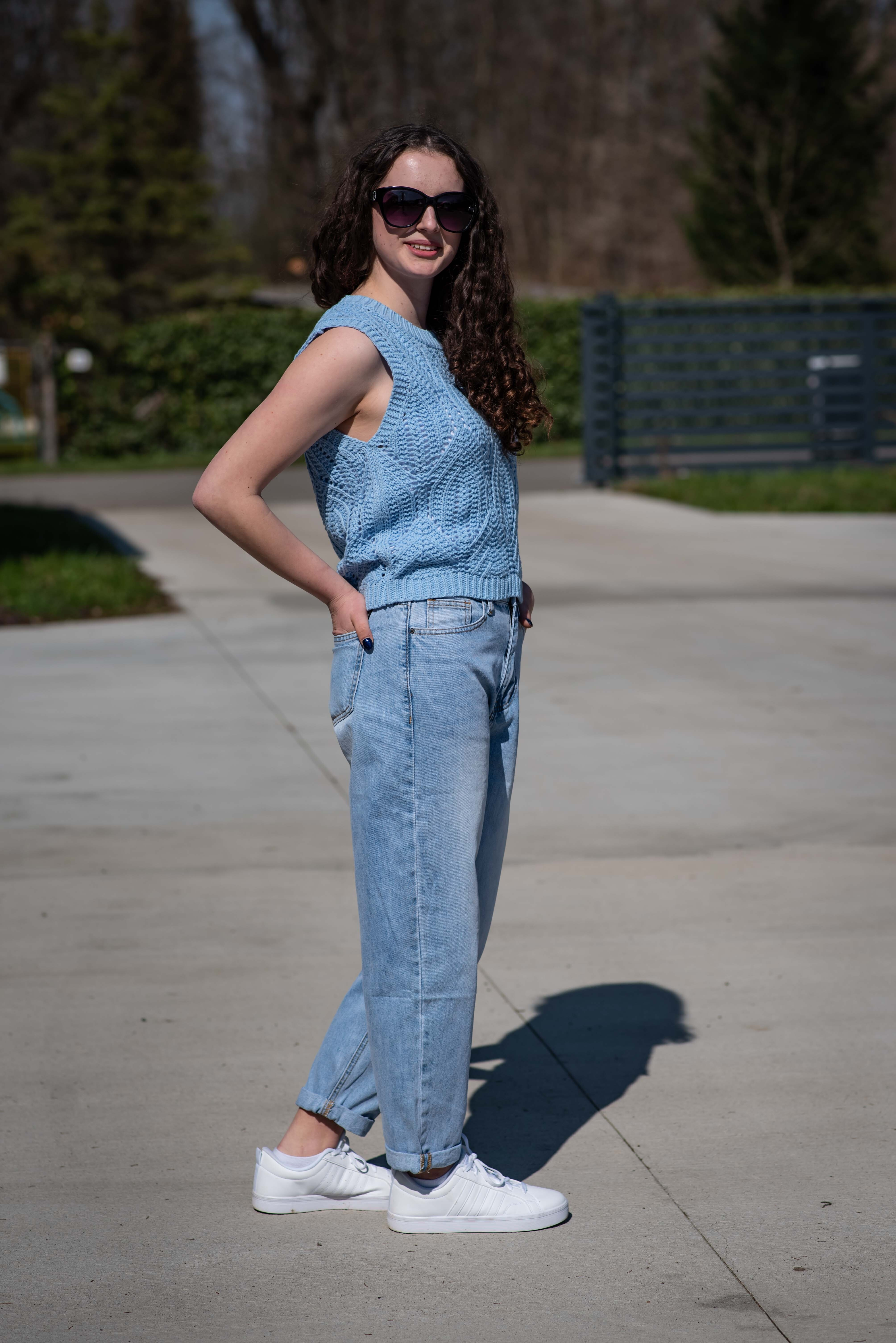 Dámská stylová úpletová vesta s kulatým výstřihem.