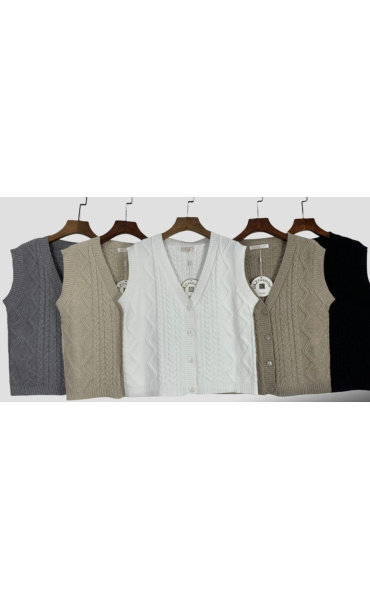 Úpletová vesta s "V" výstřihem, propínací, dovoz Francie