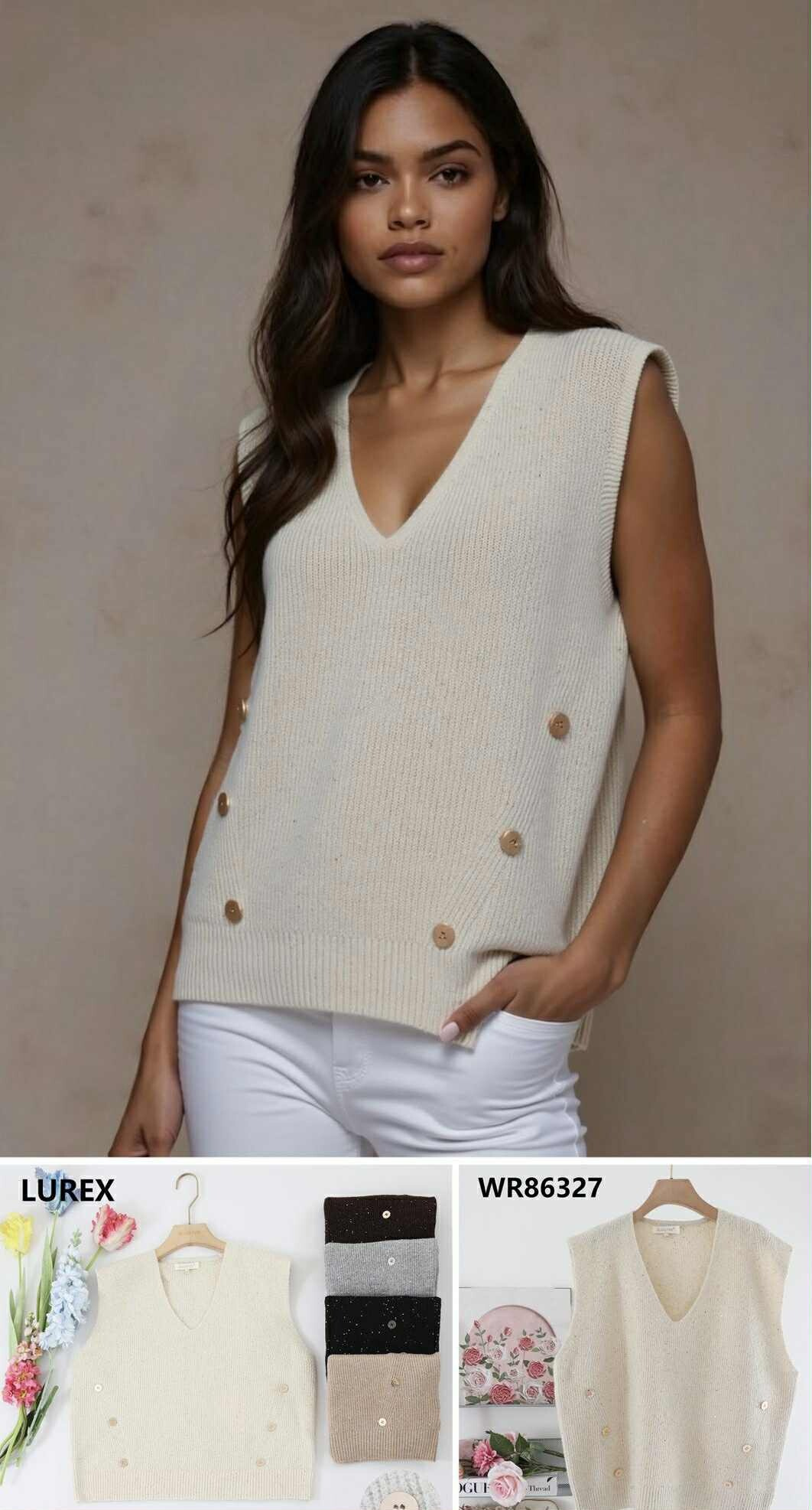 Trendy úpletová vesta s aplikací knoflíků
