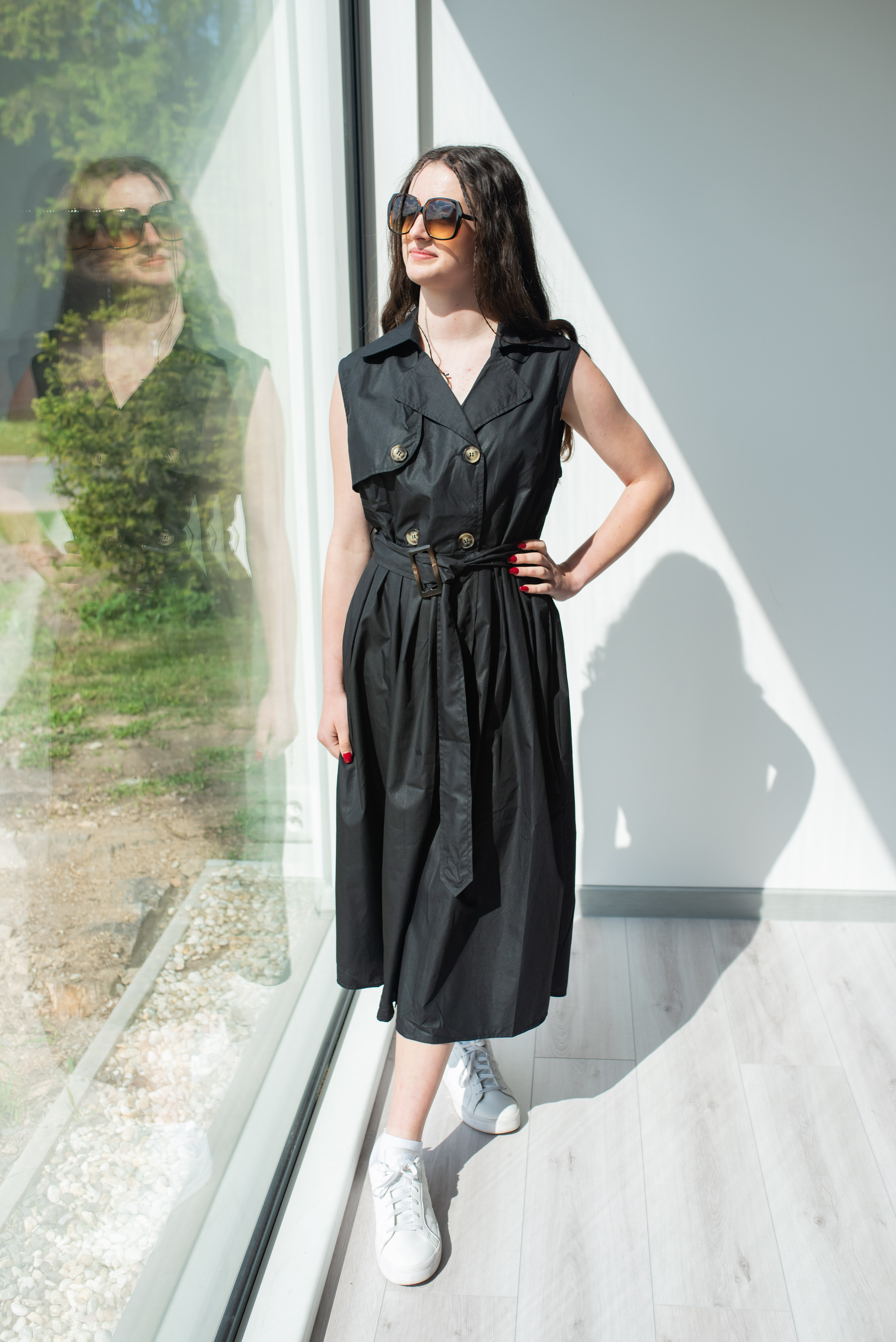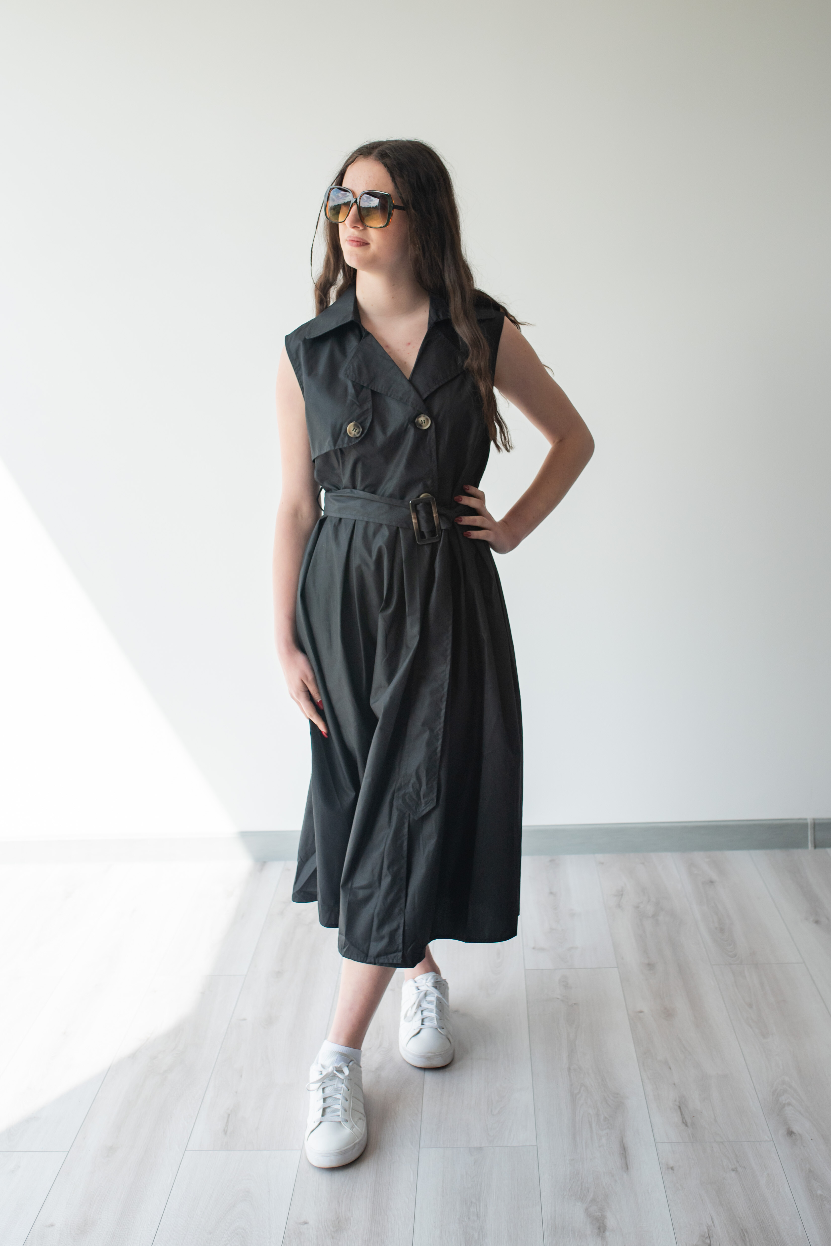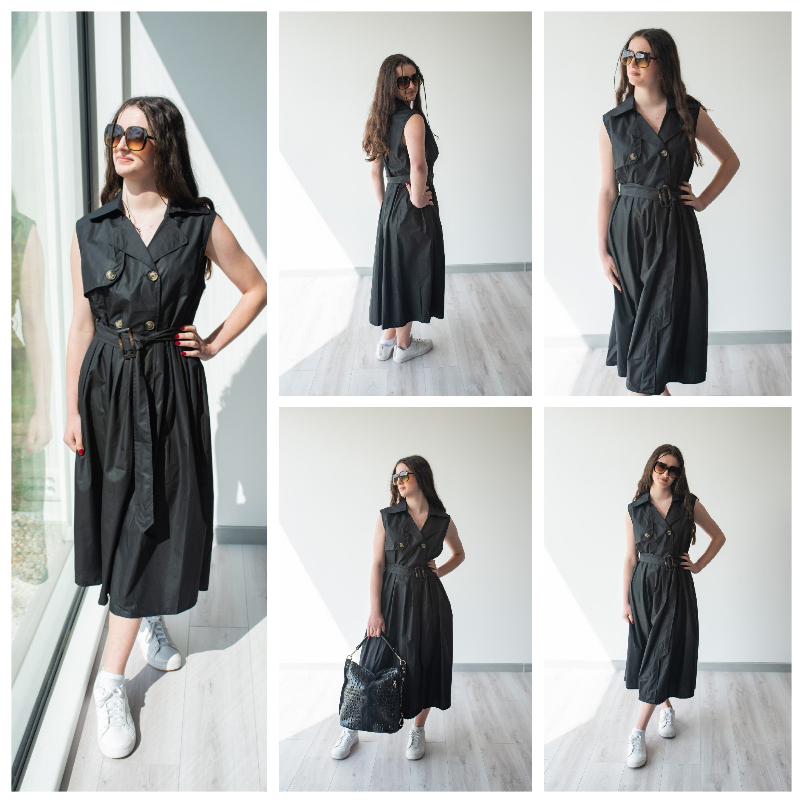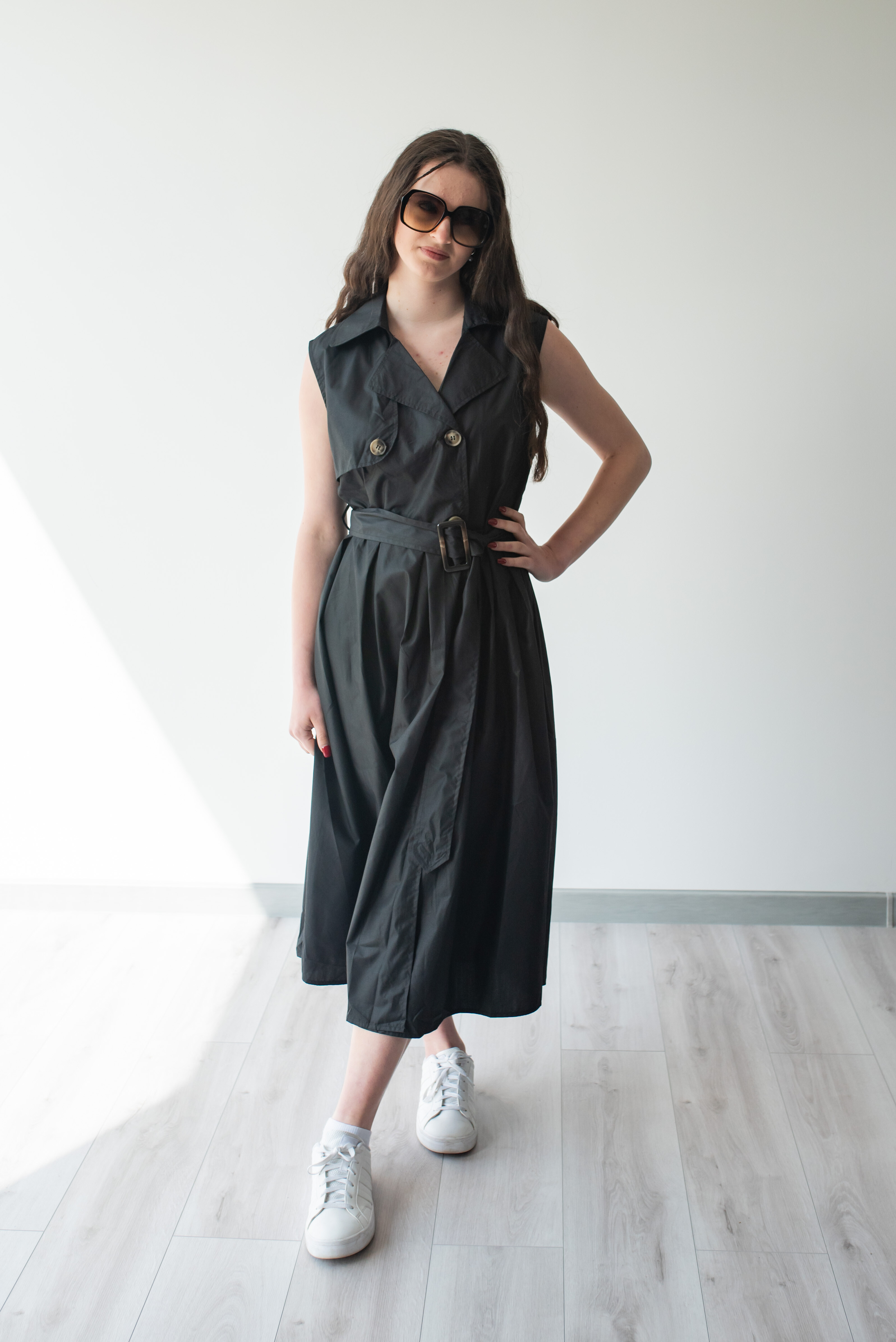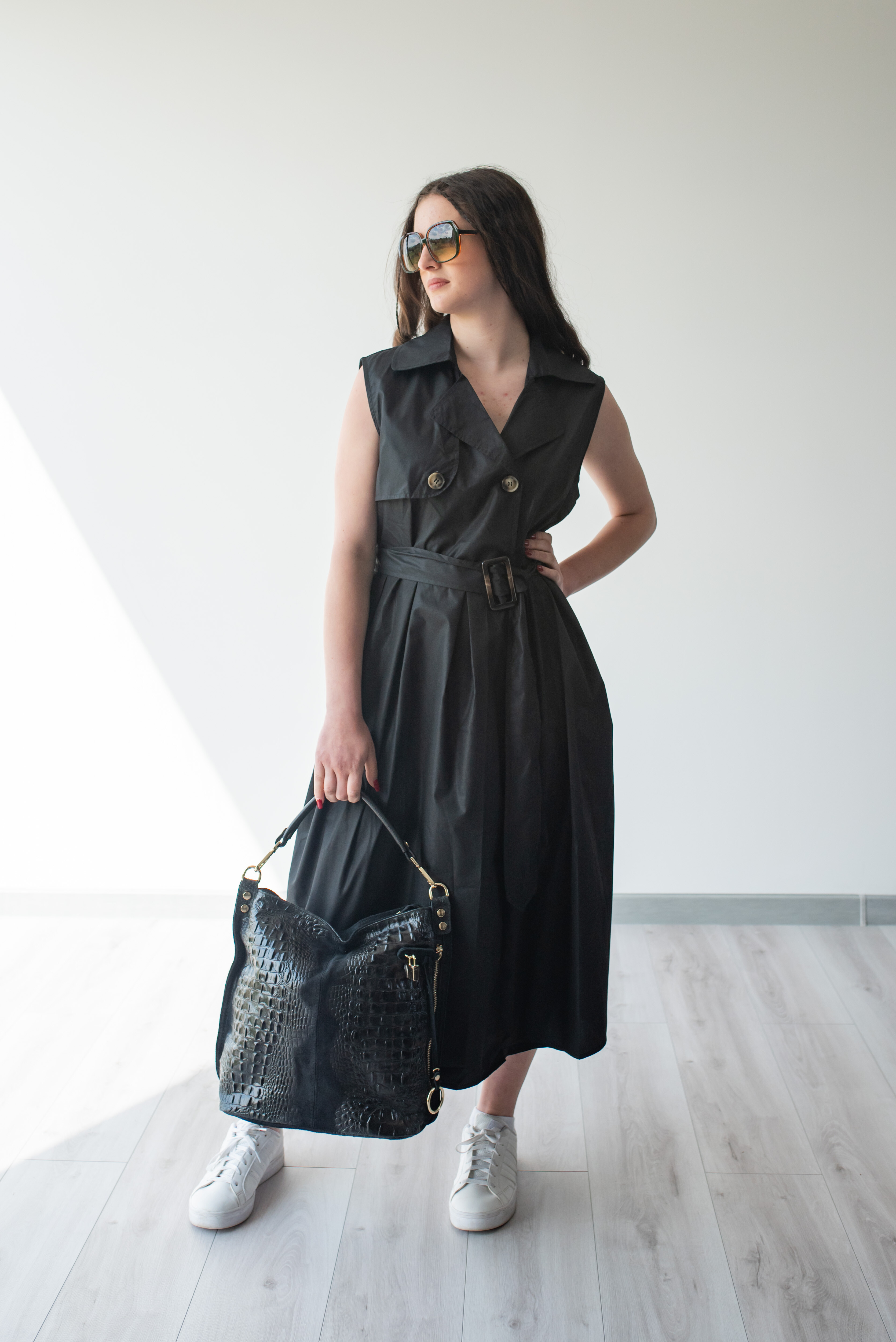 Dámské stylové vestové šaty bez rukávu. Šaty mají košilový střih a po stranách všité kapsy. Dovezeno z Itálie.