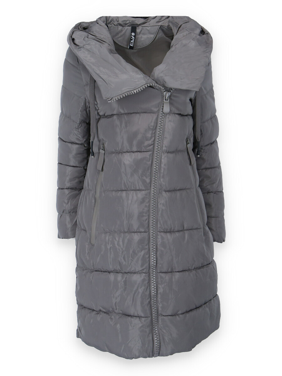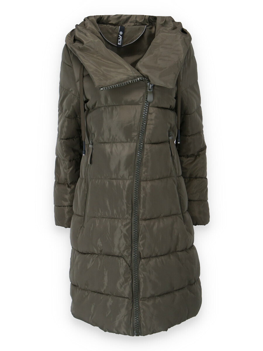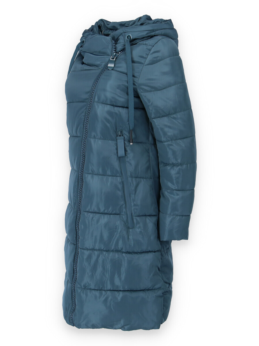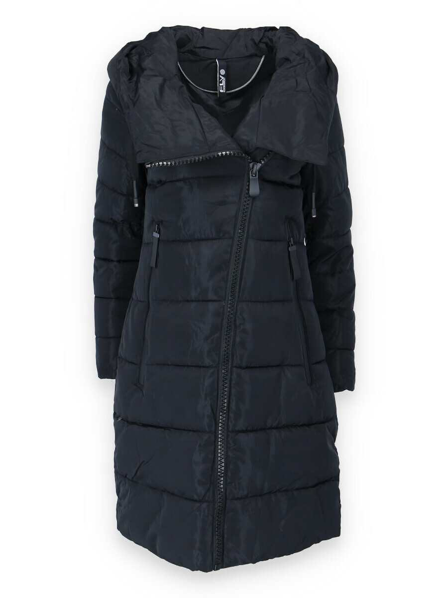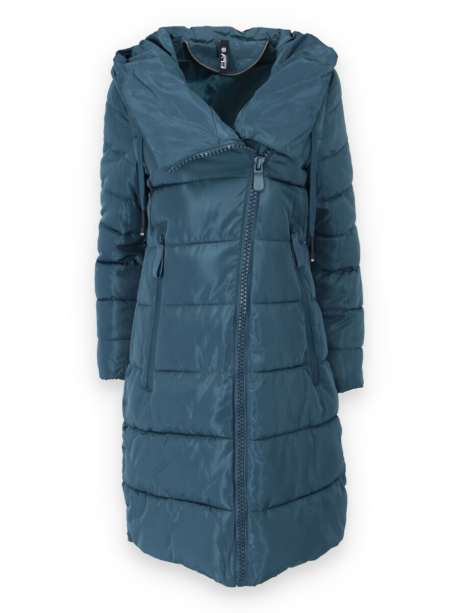 Dlouhá zimní bunda s kapucí, zapínání i kapsy na zip. Dovoz Itálie