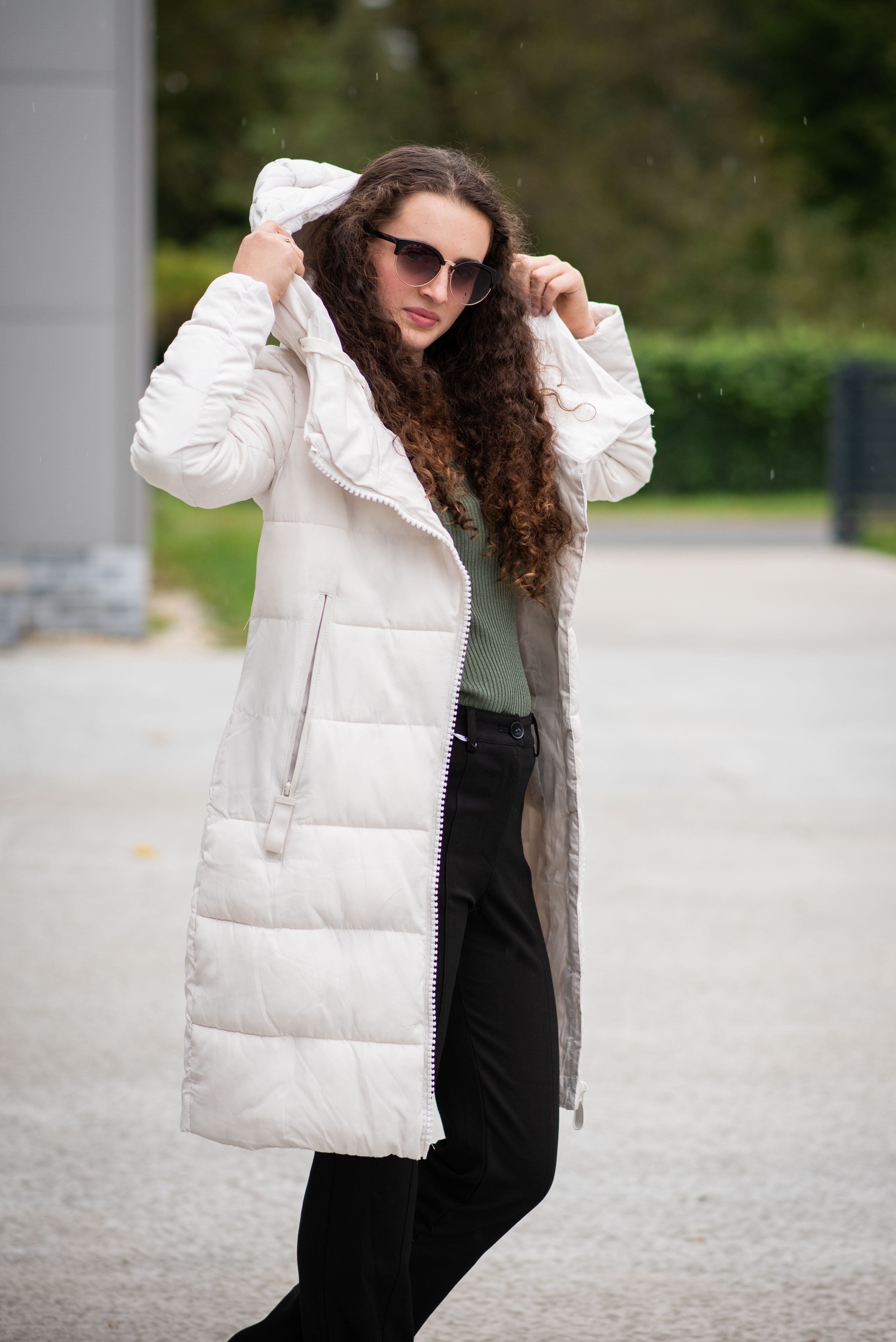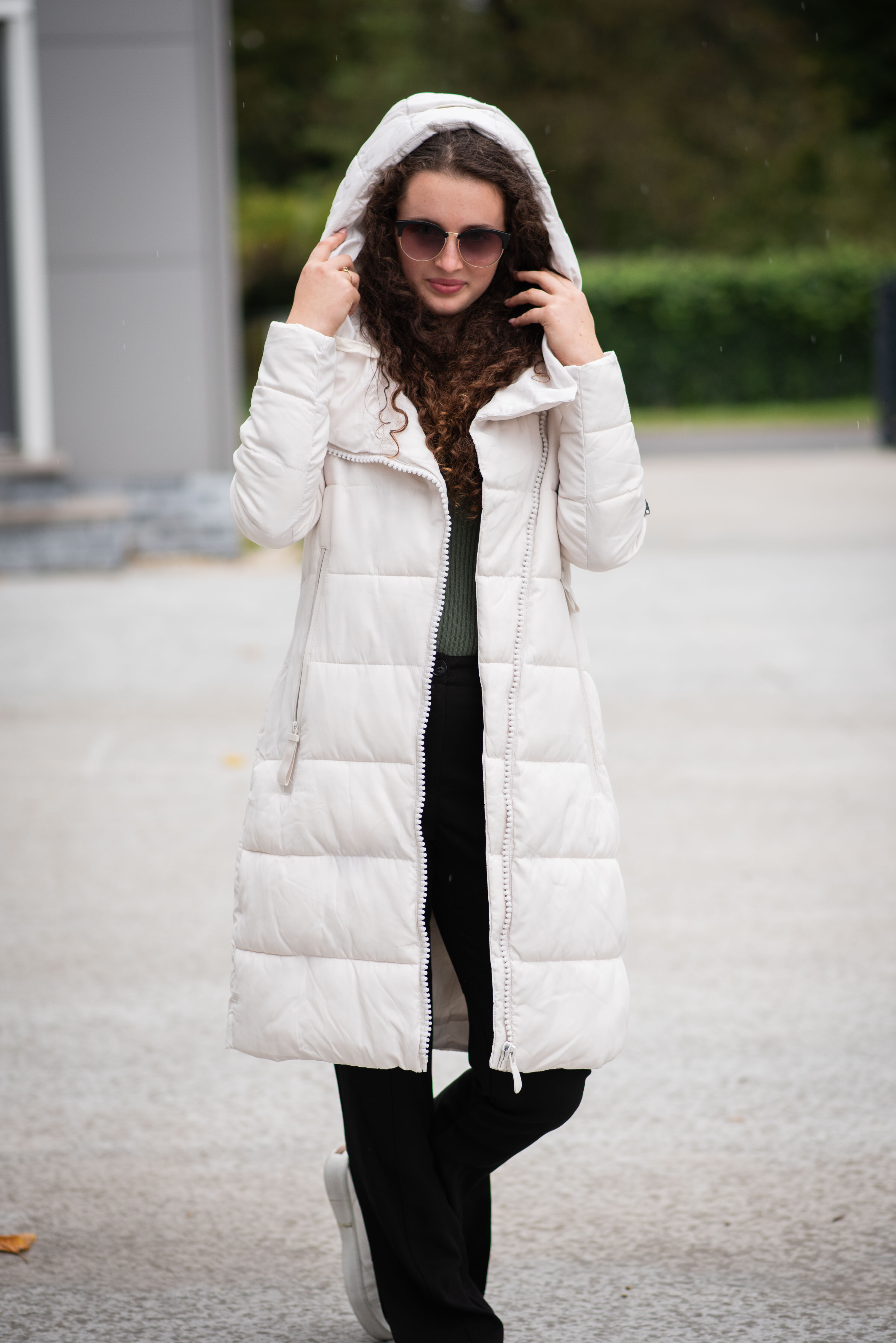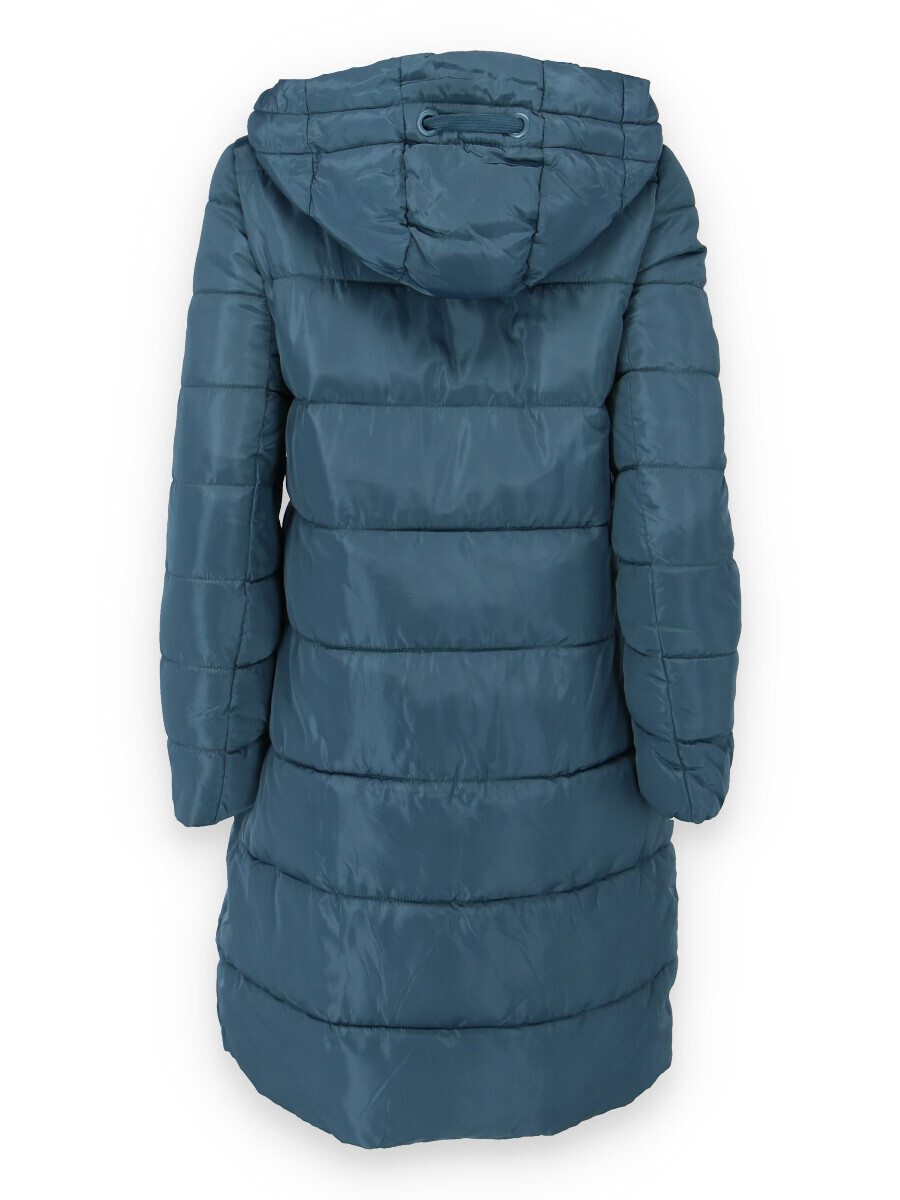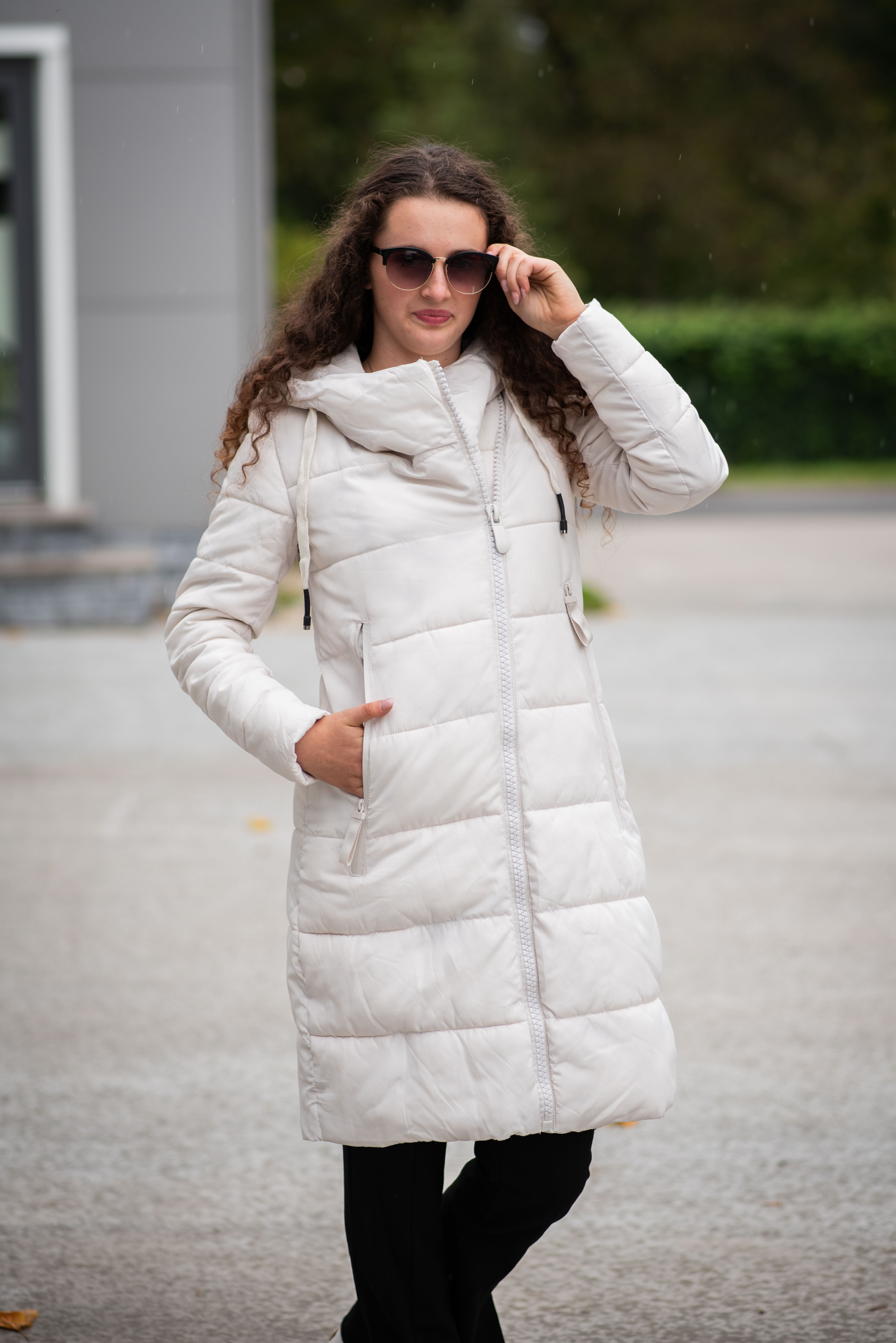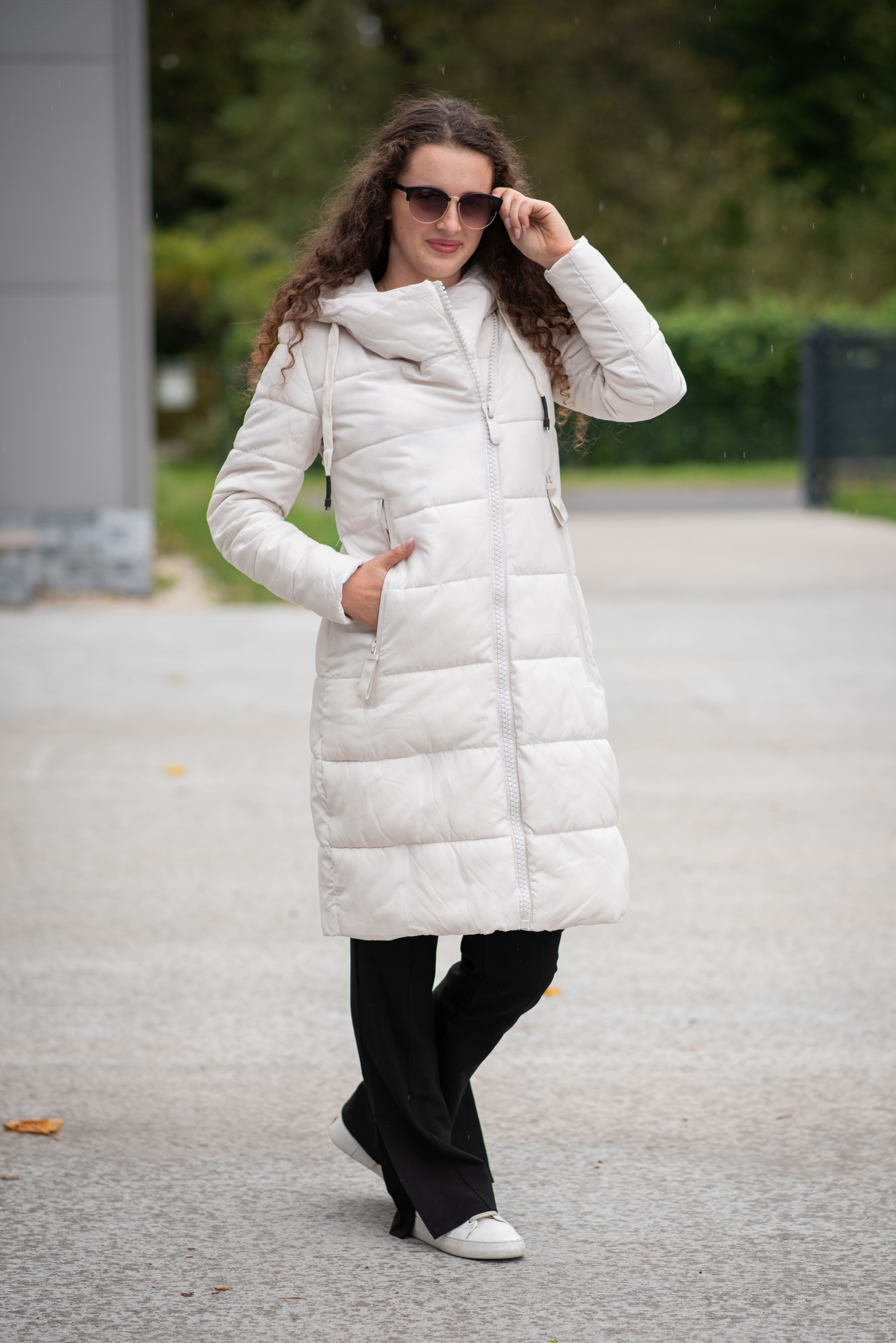 Dlouhá zimní bunda s kapucí, zapínání i kapsy na zip. Dovoz Itálie