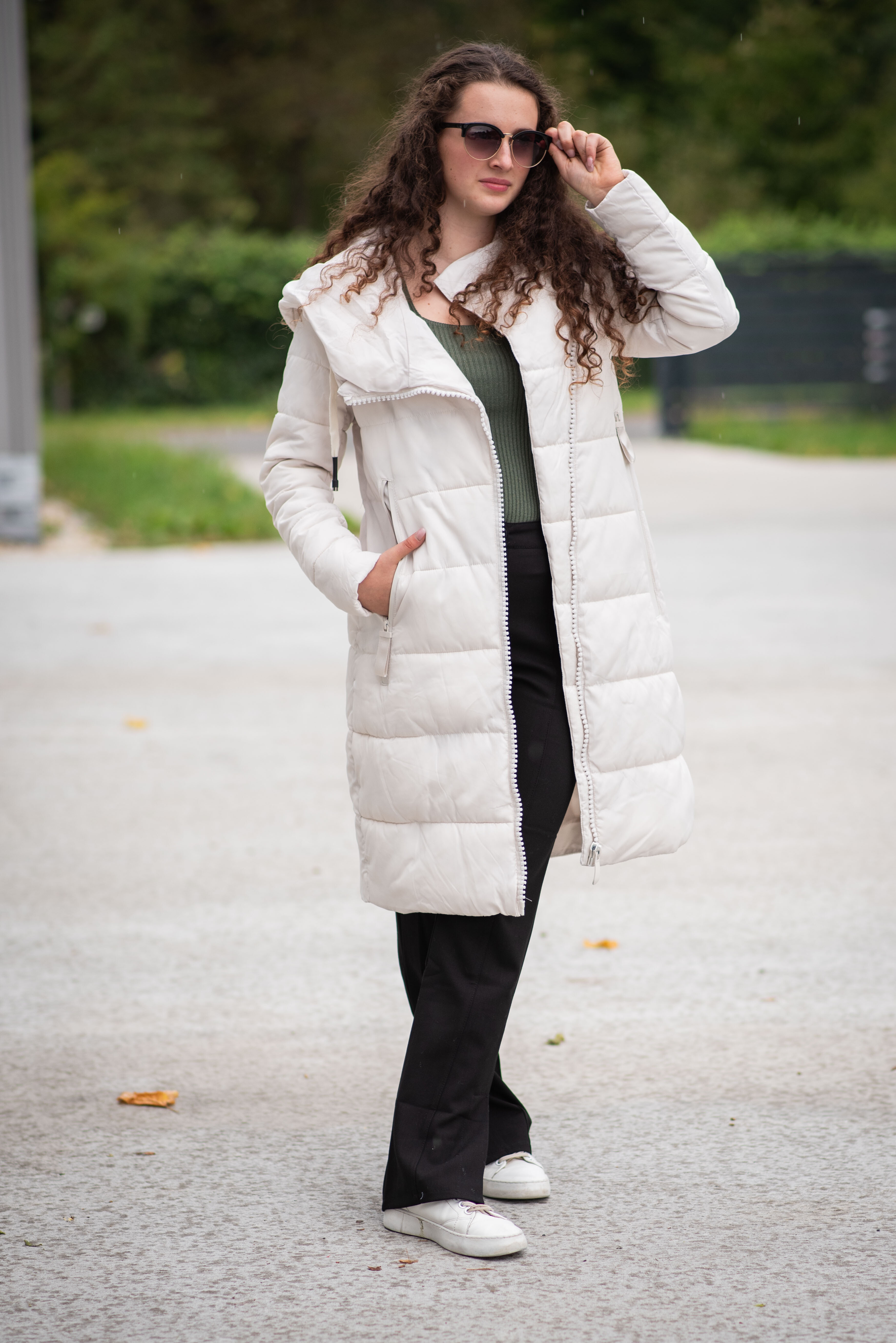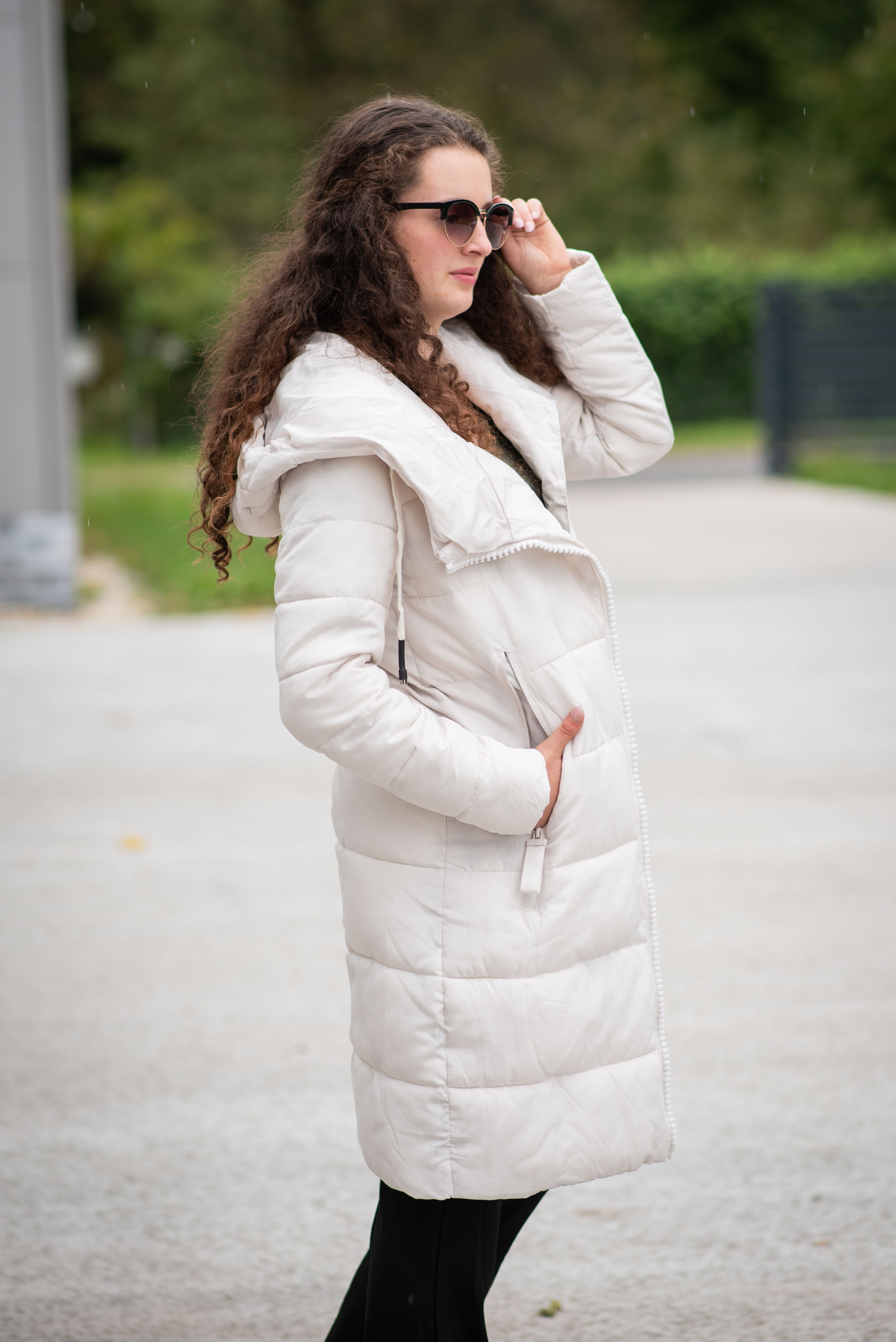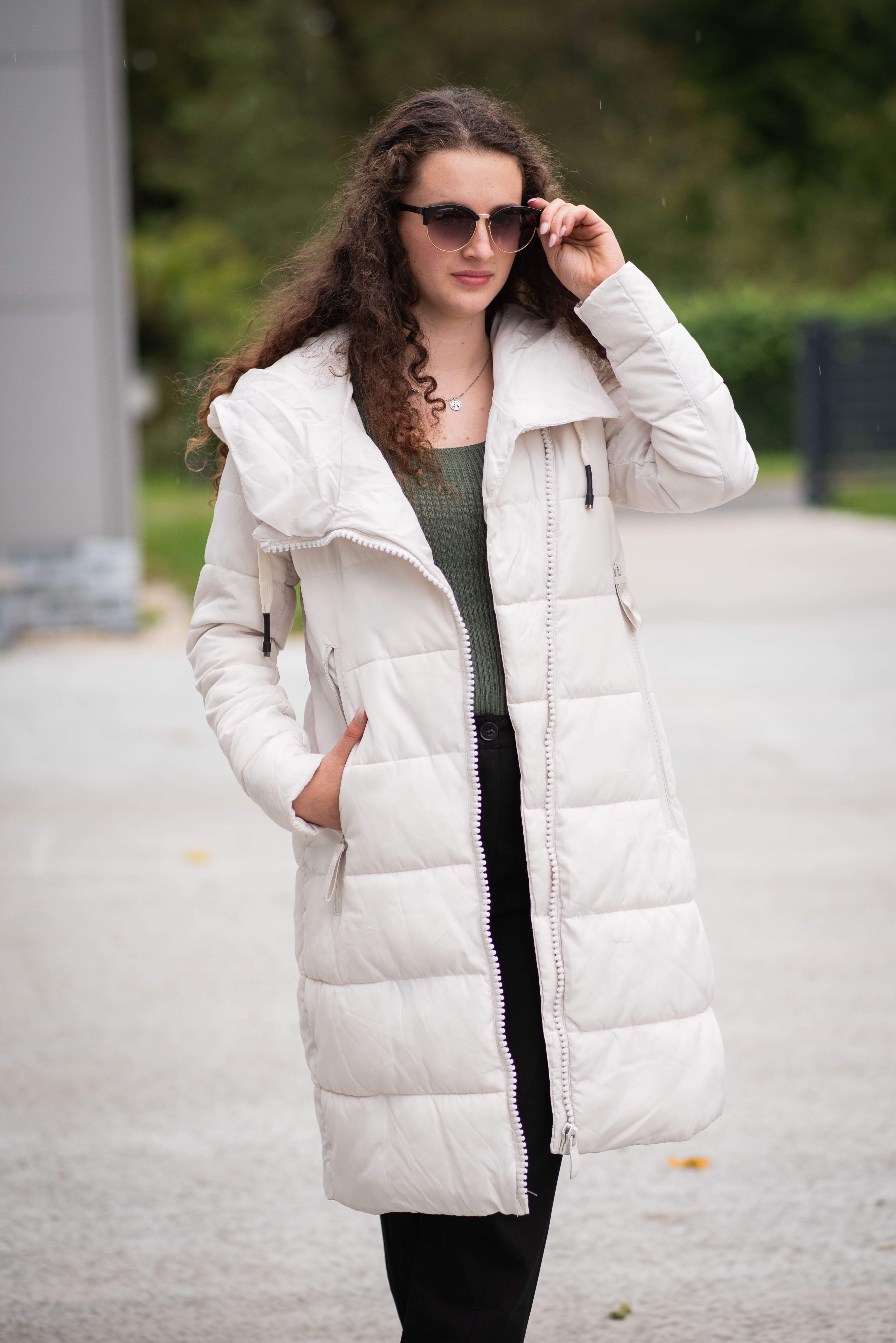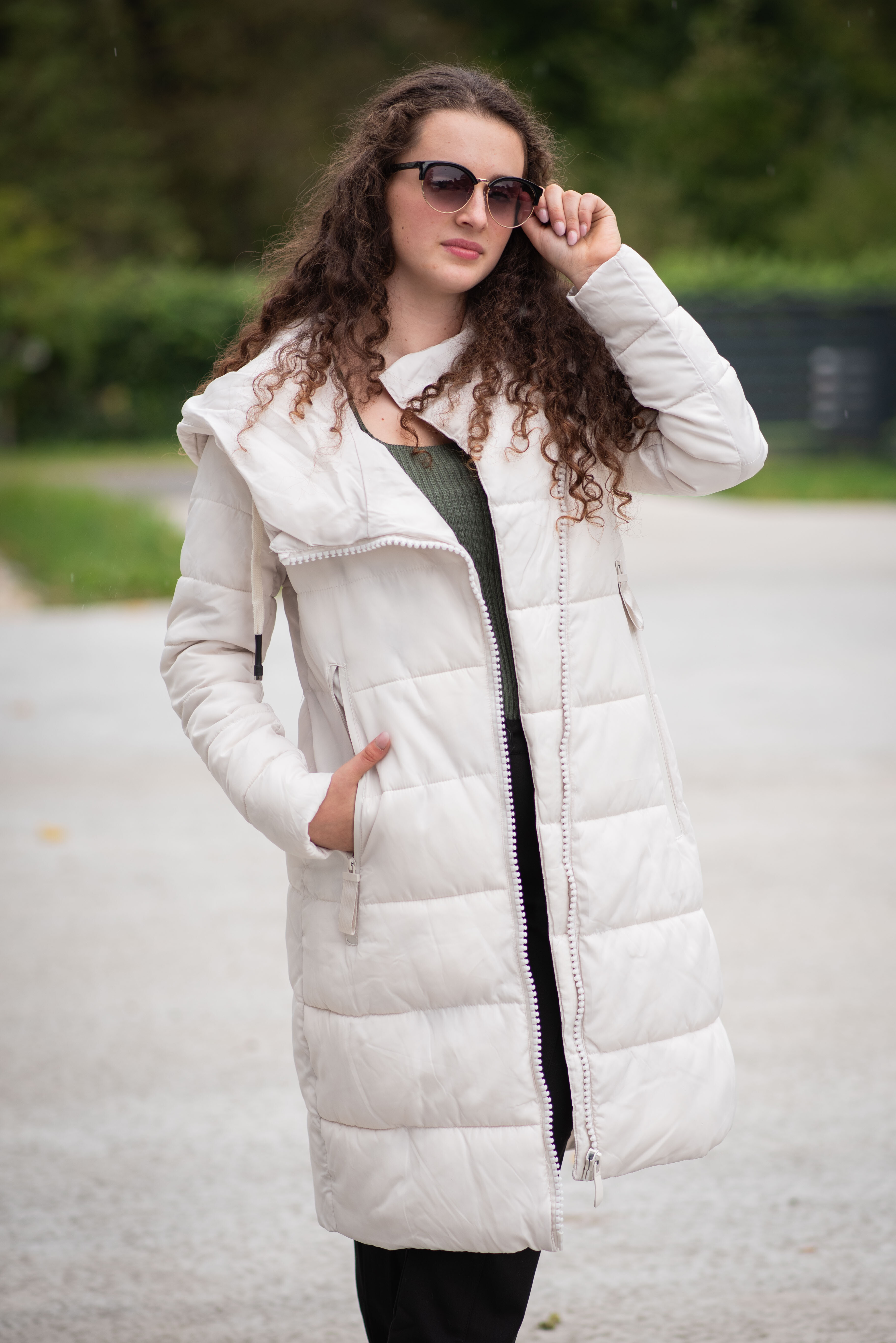 Dlouhá zimní bunda s kapucí, zapínání i kapsy na zip. Dovoz Itálie