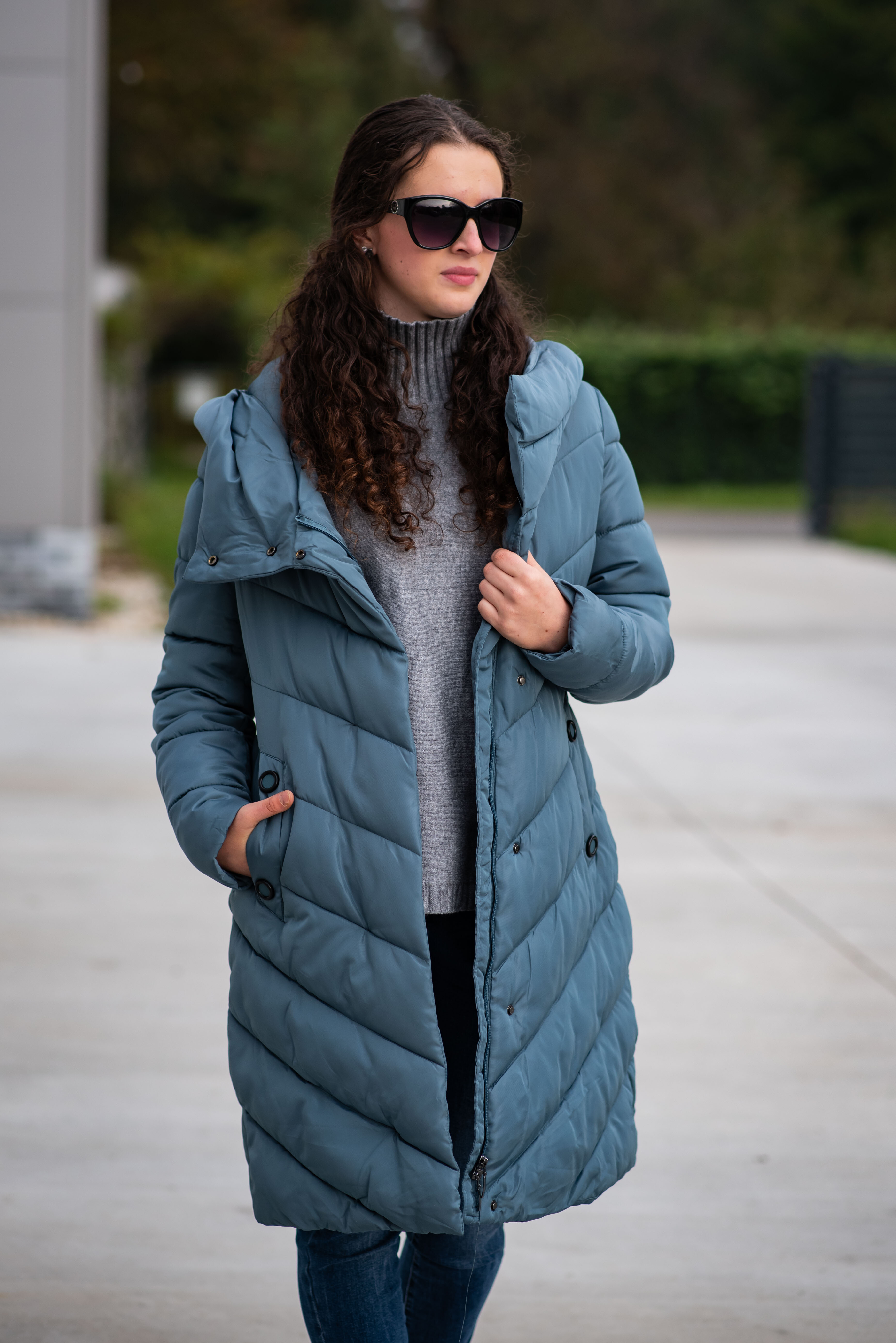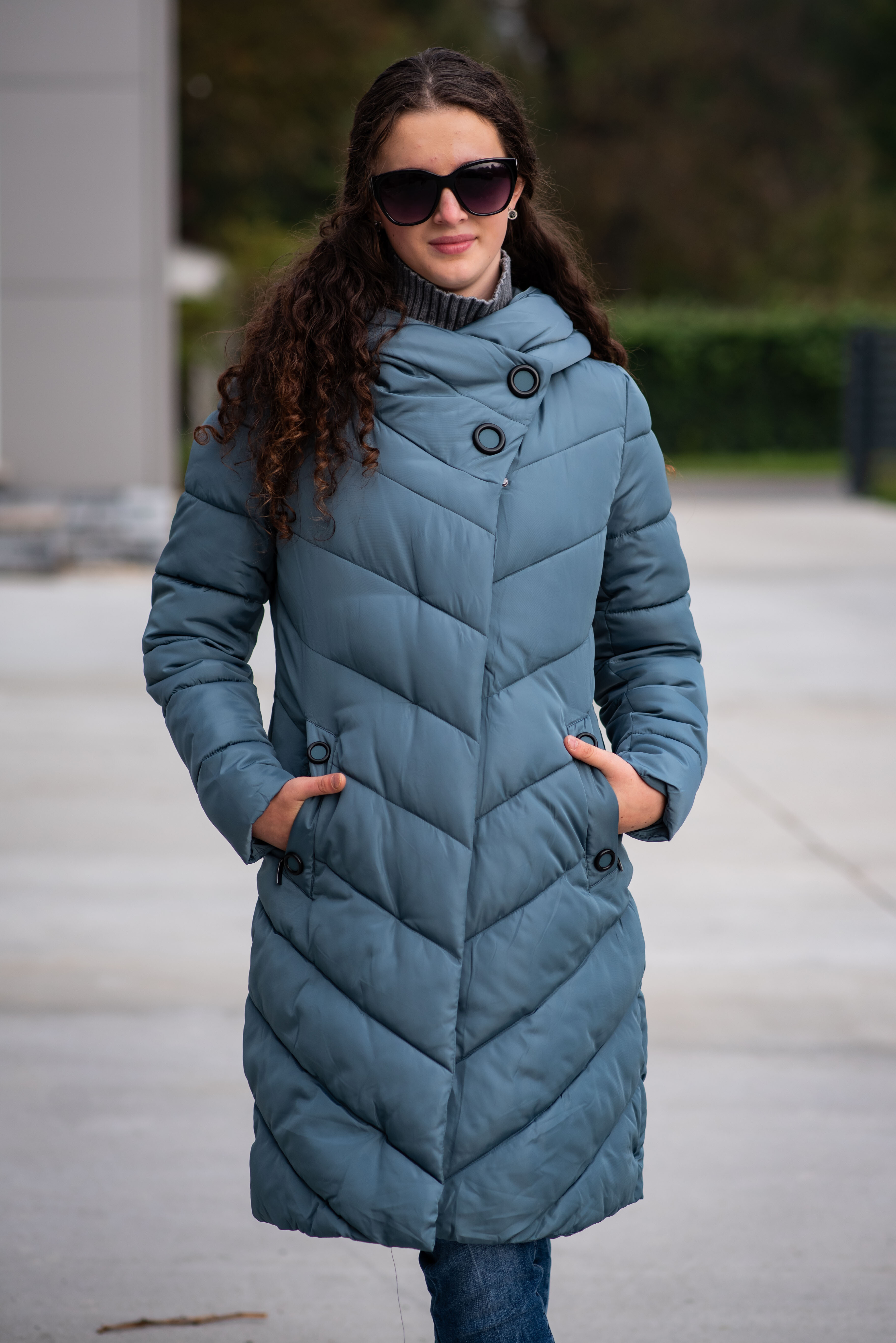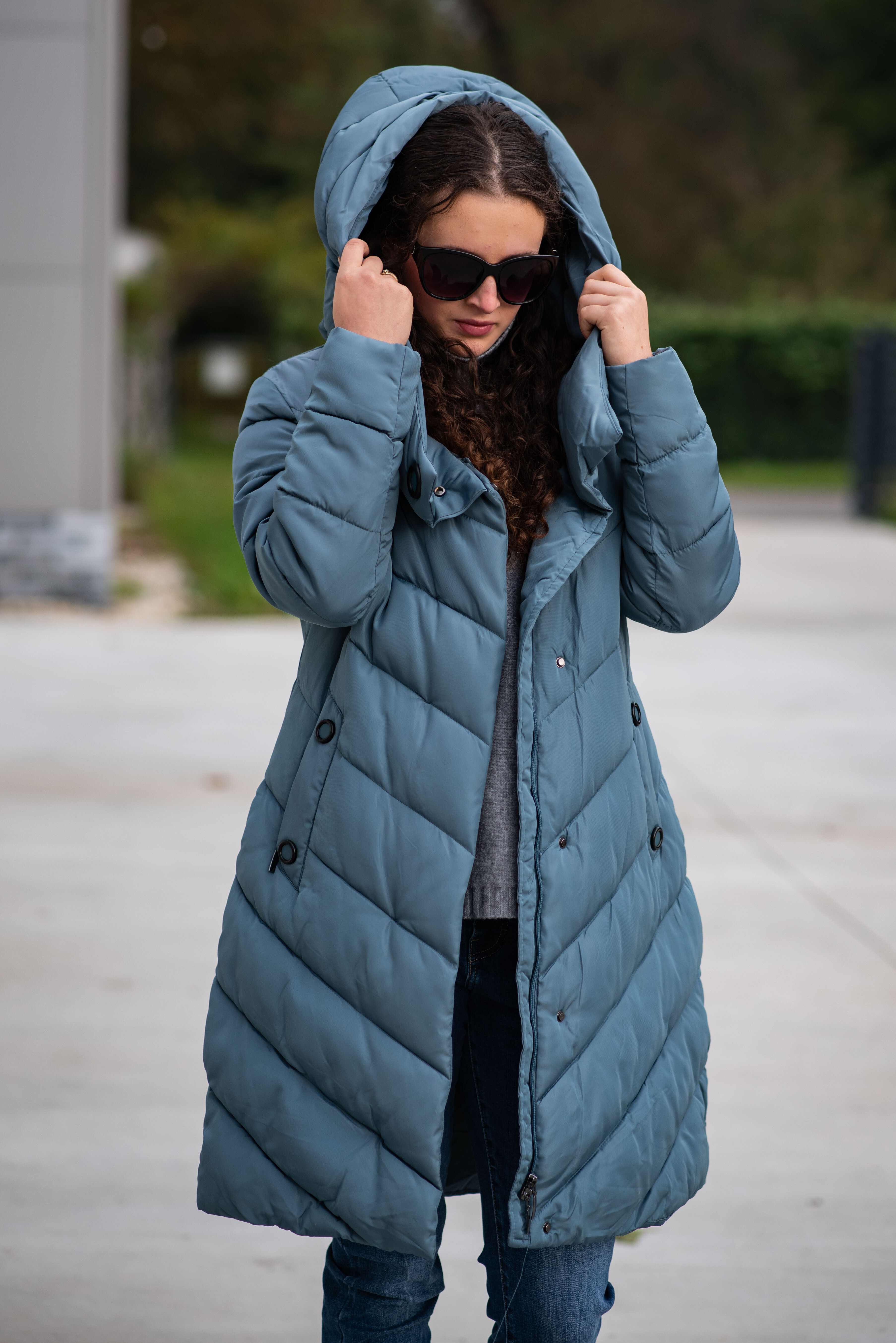 Zimní prošívaná bunda s kapucí. Dvojitý zip a druky na zapínání. Dovoz Itálie