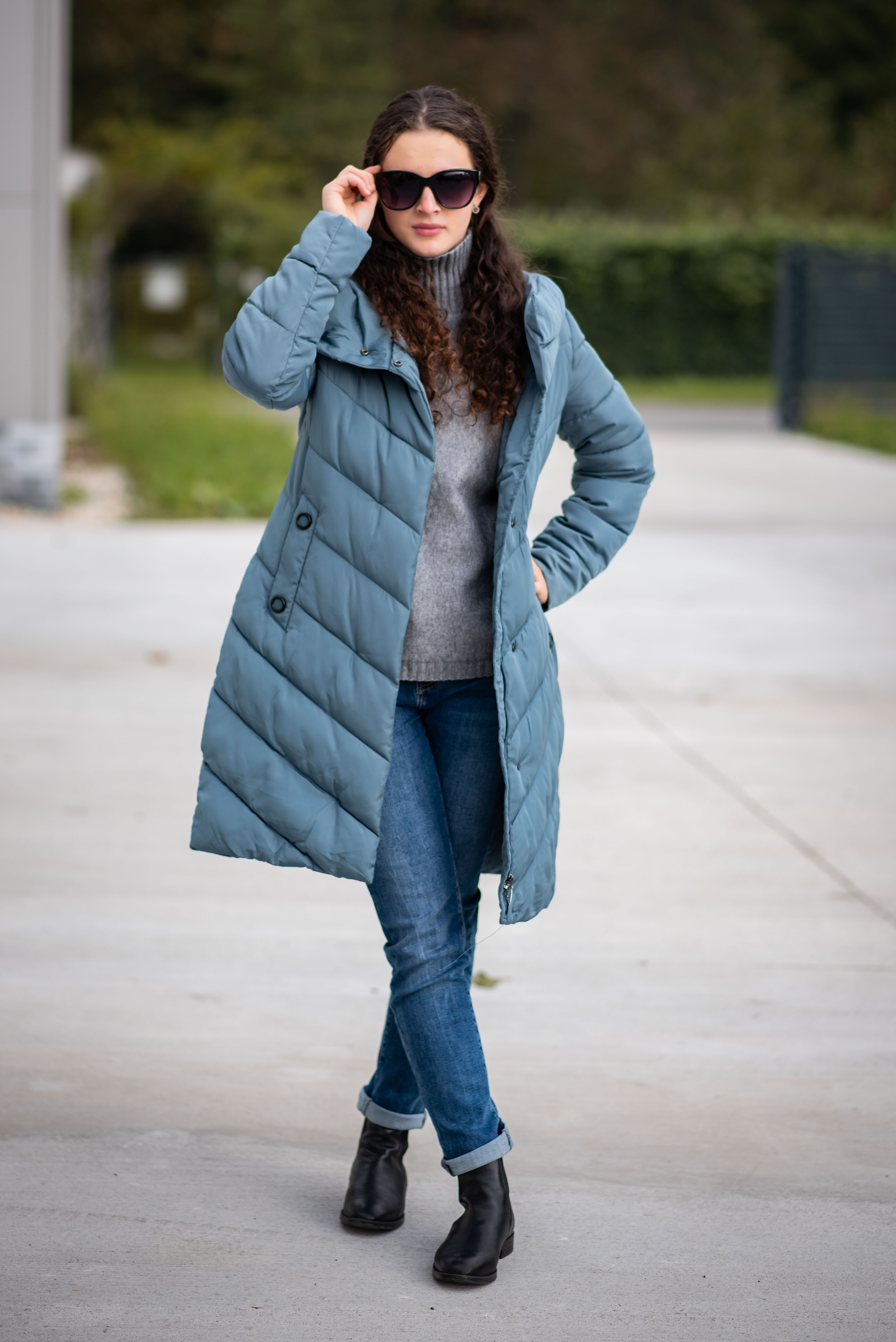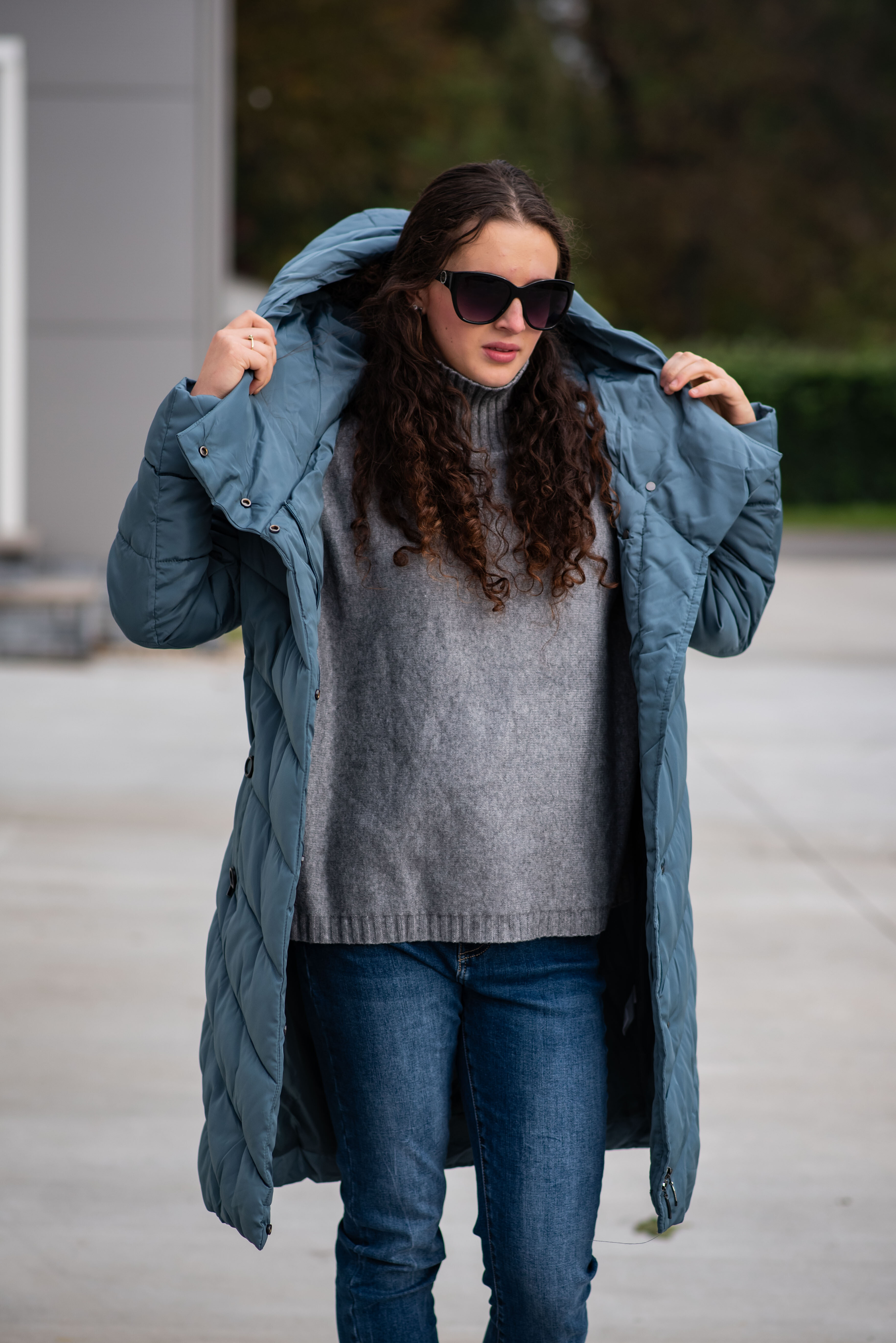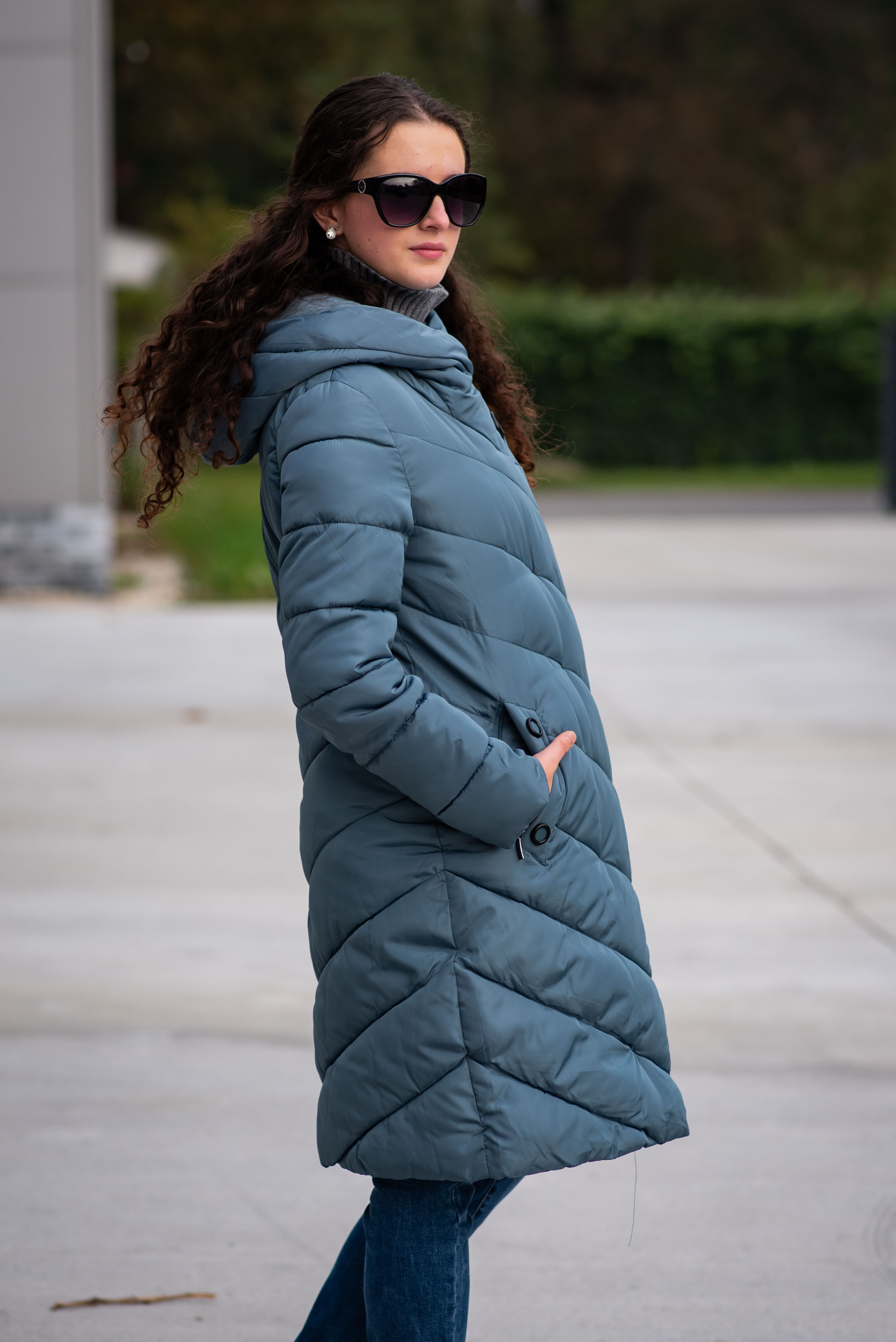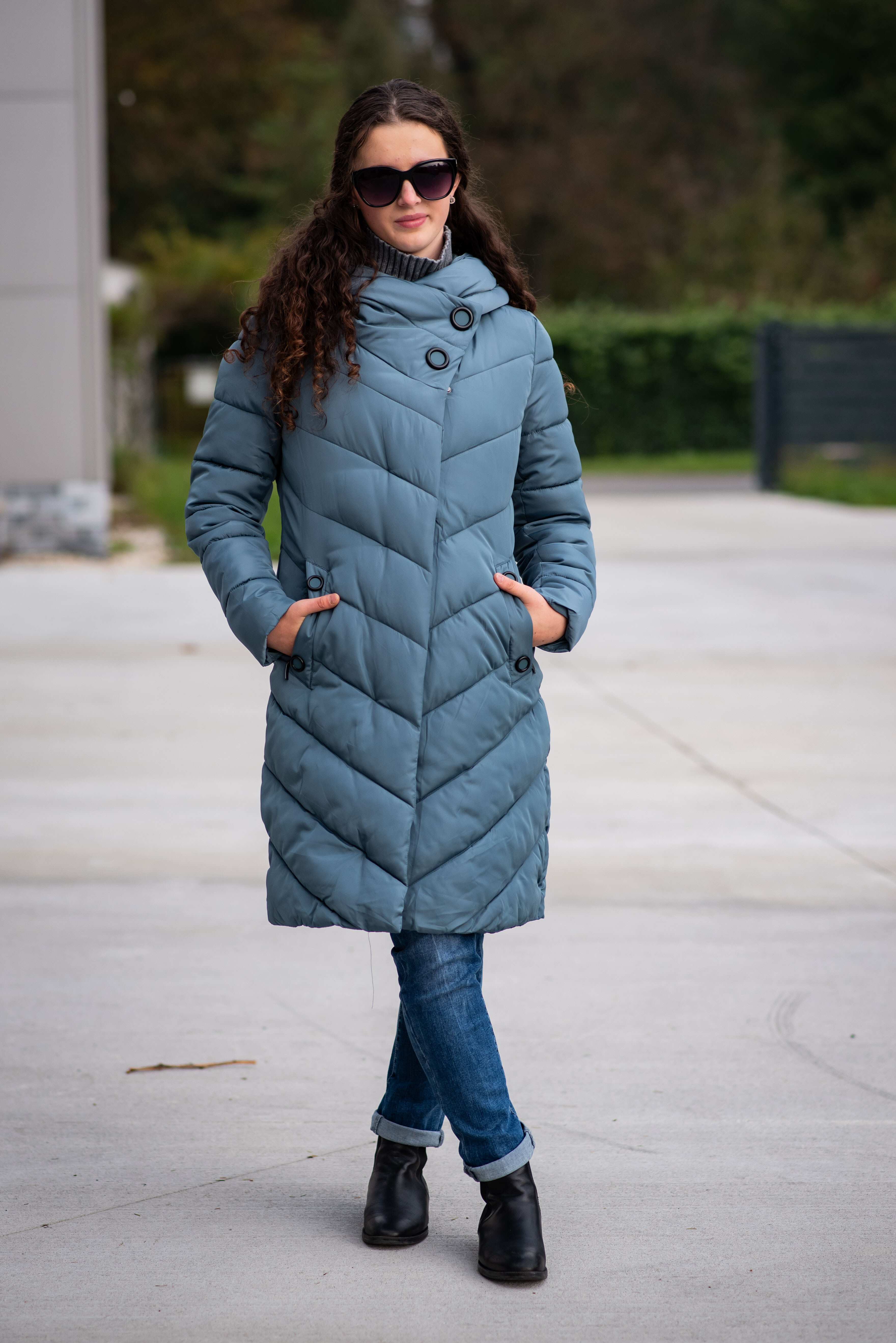 Zimní prošívaná bunda s kapucí. Dvojitý zip a druky na zapínání. Dovoz Itálie