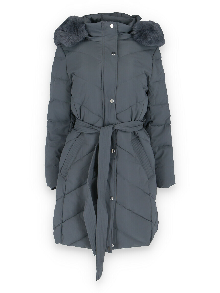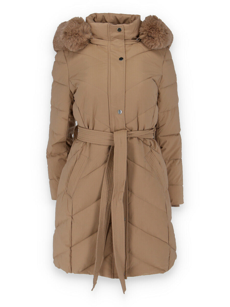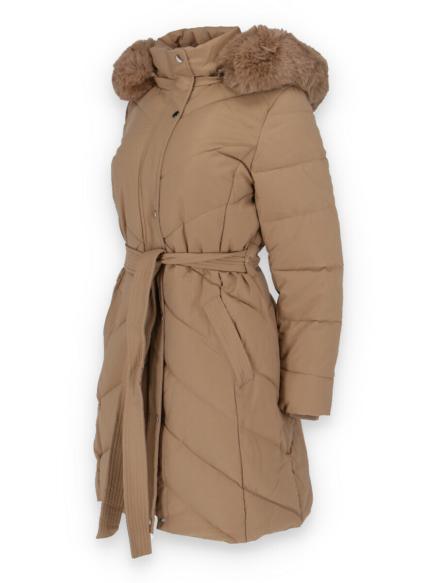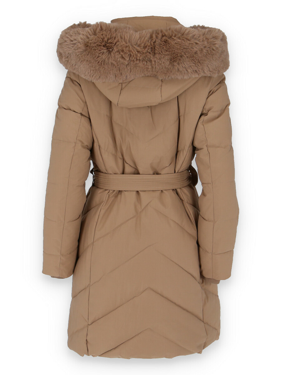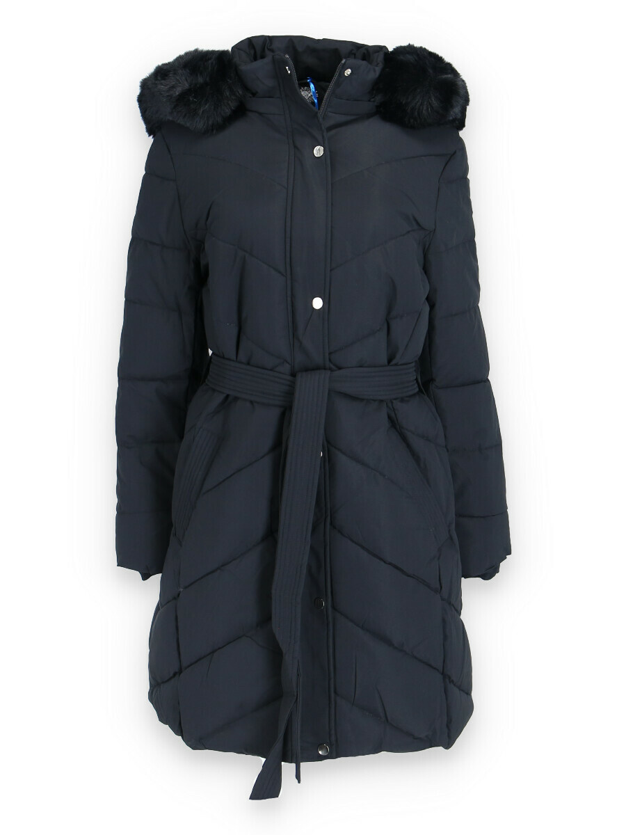 Dámská delší zimní bunda s kapucí a vnitřním kožíškem. Odnímatelná kapuce